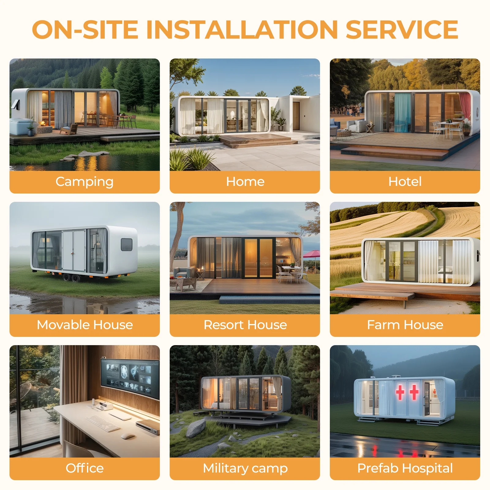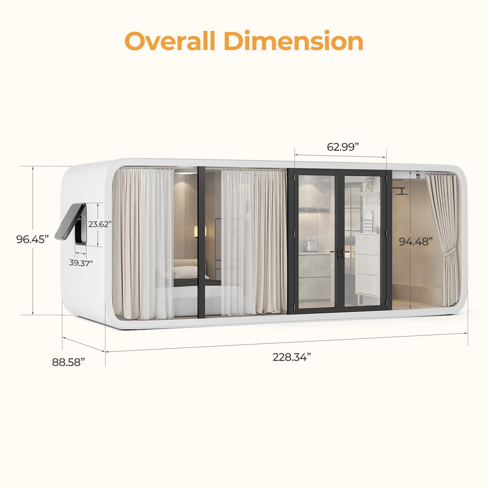 Luxury Modern Prefab Cabin - 19ft Mobile Capsule with Bedroom, Kitchen and Bathroom, Storm Resistant Prefab Cabin - 16 Typhoon and 12 Earthquake Proof Mobile Cabin for Travel and Outdoor Living
