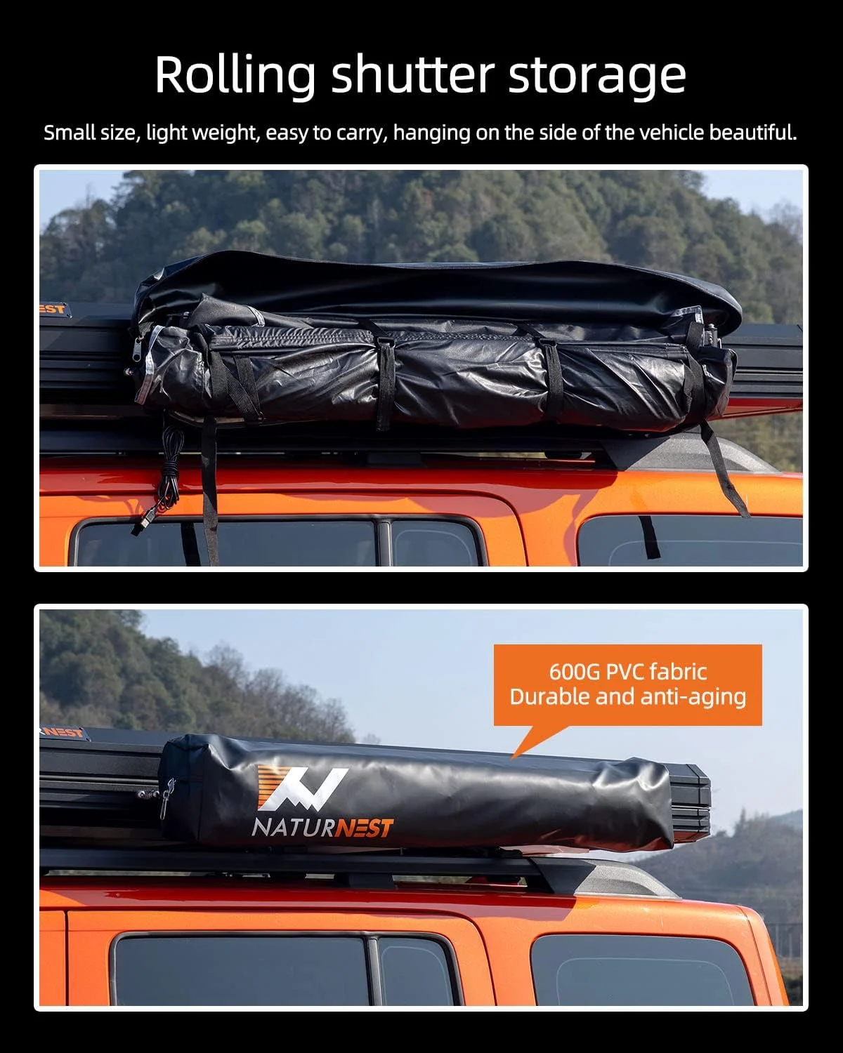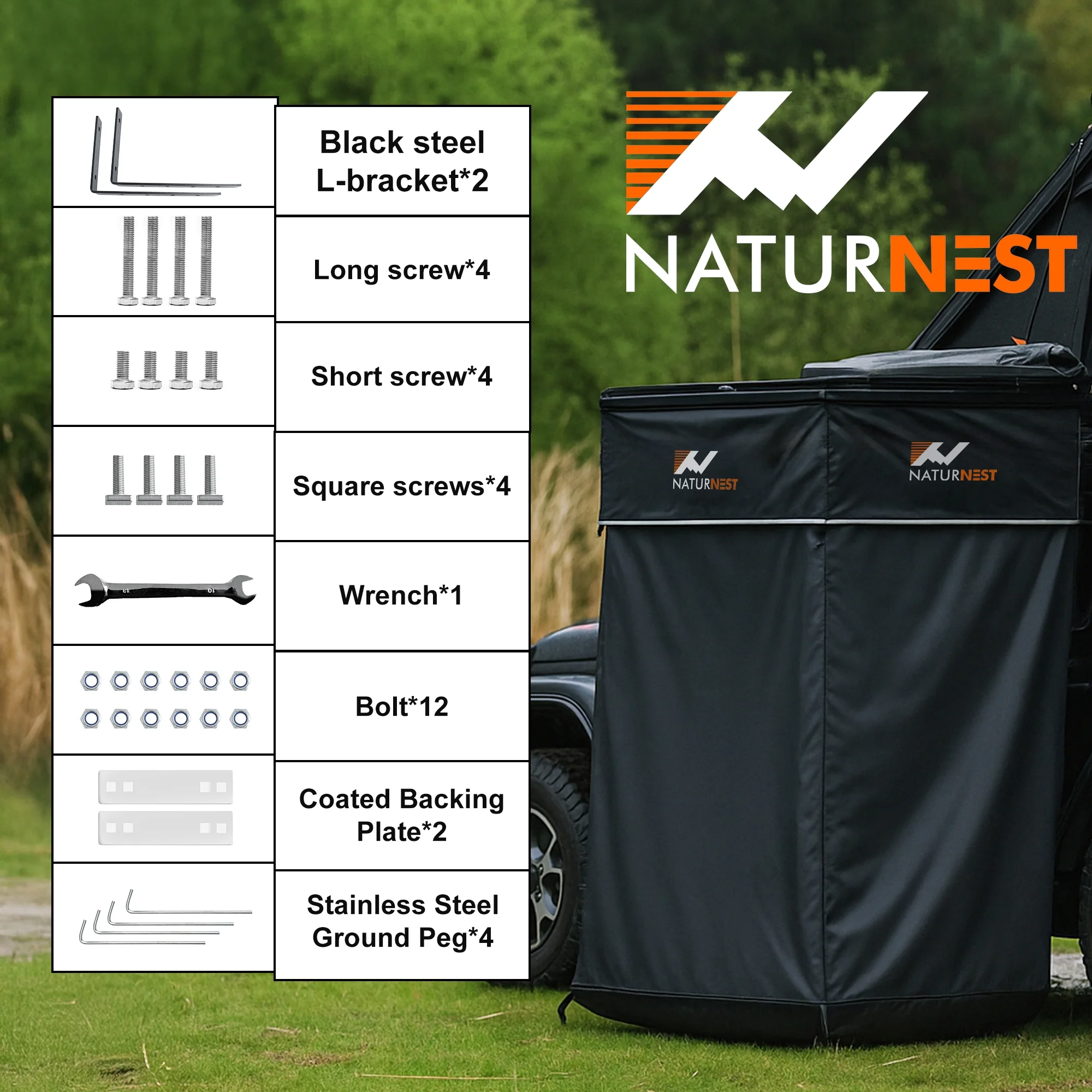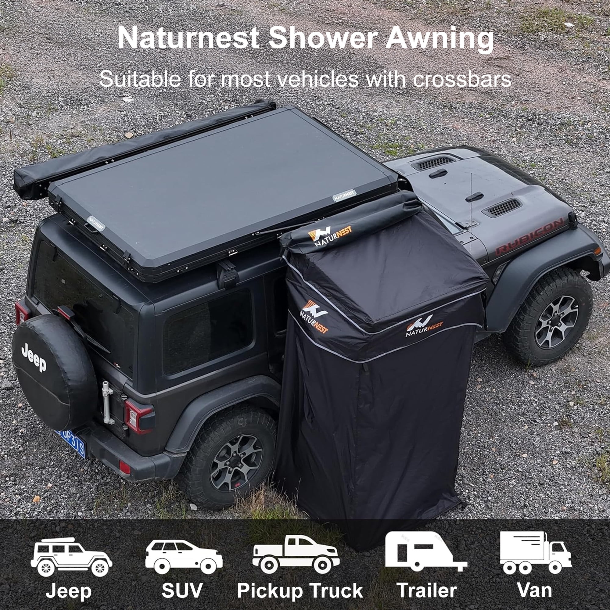 - Suitable for Most Camping Vehicles: Naturnest shower awning can be installed on most camping vehicles, such as Suv, jeep, pickup truck, trailer, van, as long as your car is equipped with top luggage crossbars.