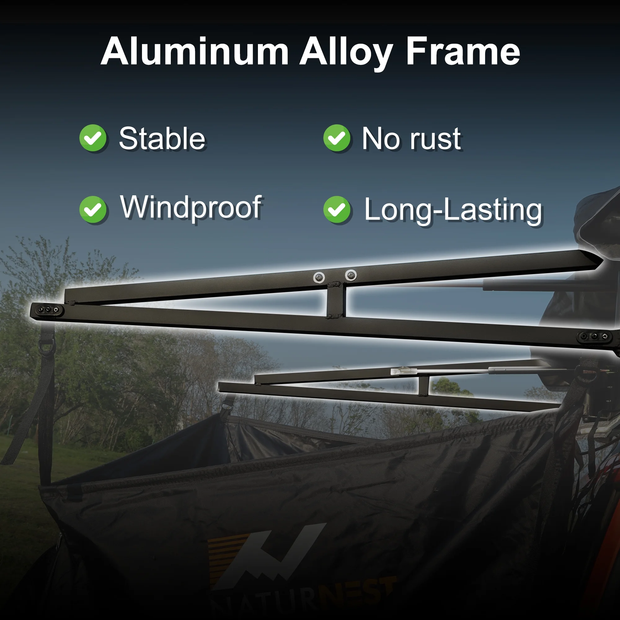 Sturdy Frame: Strong aluminum alloy frame for stability in harsh weather.