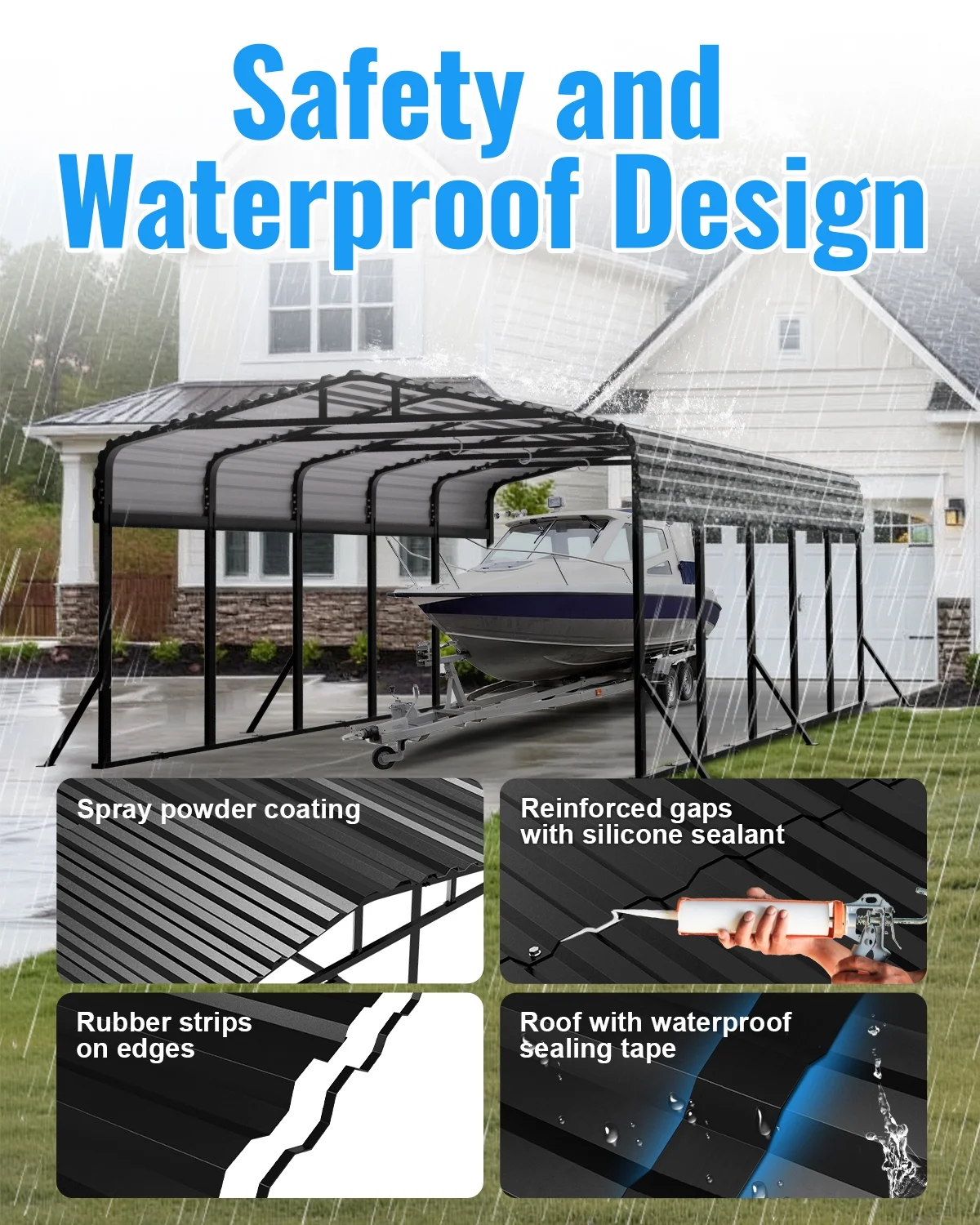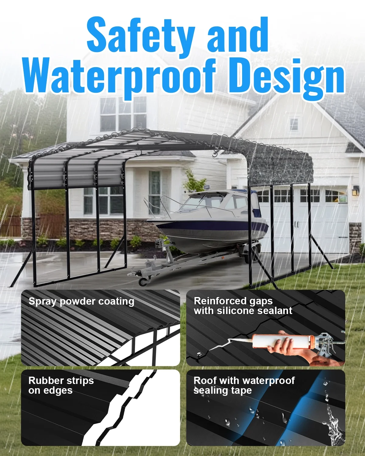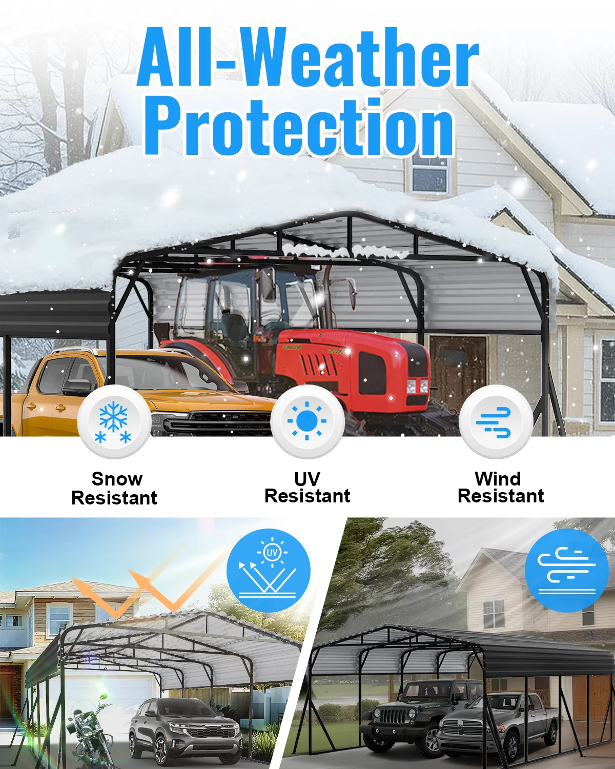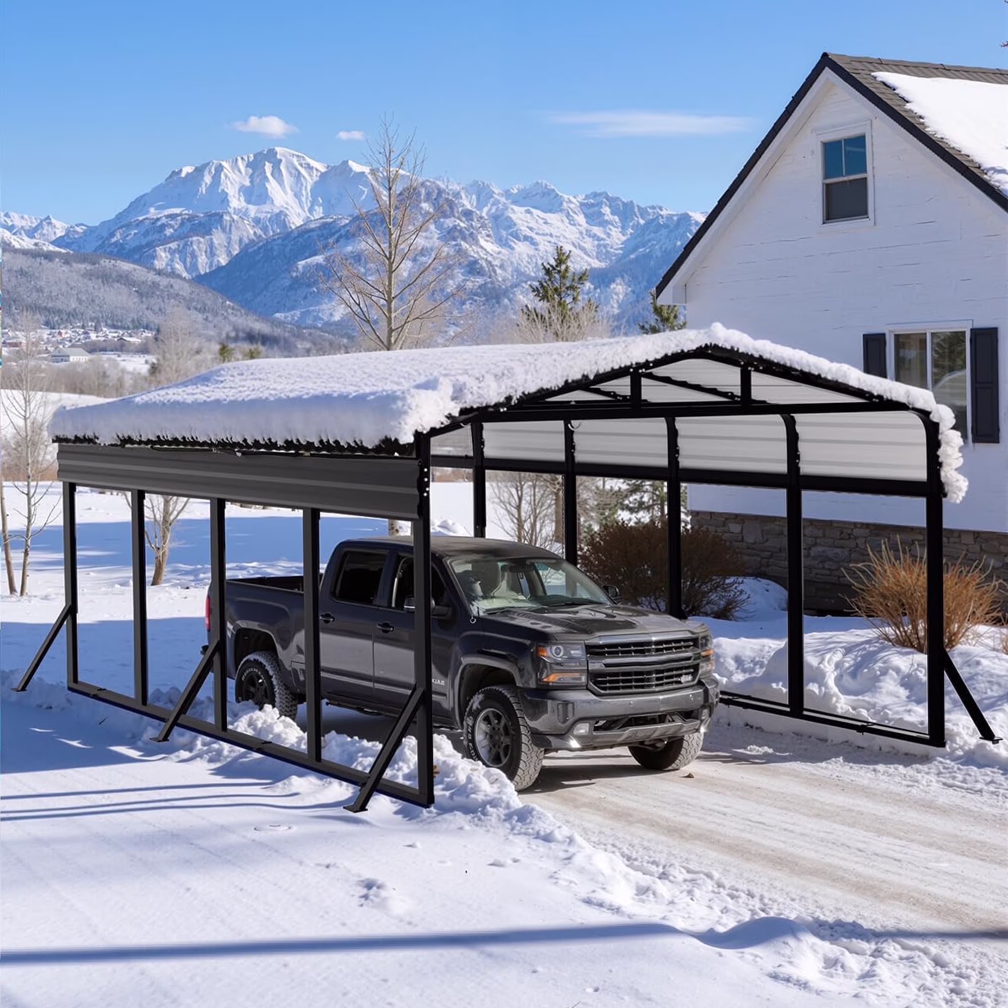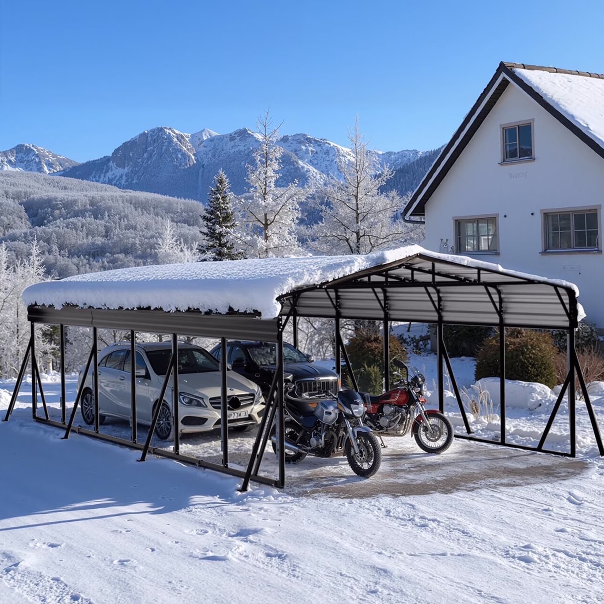 - [All-Weather Carport Durability] Built with a galvanized steel roof and powder-coated frame, this carport resists rust, UV rays, rain, and snow. The durable construction ensures your outdoor carport provides reliable coverage year-round—keeping vehicles cool in summer and preventing snow buildup in winter.