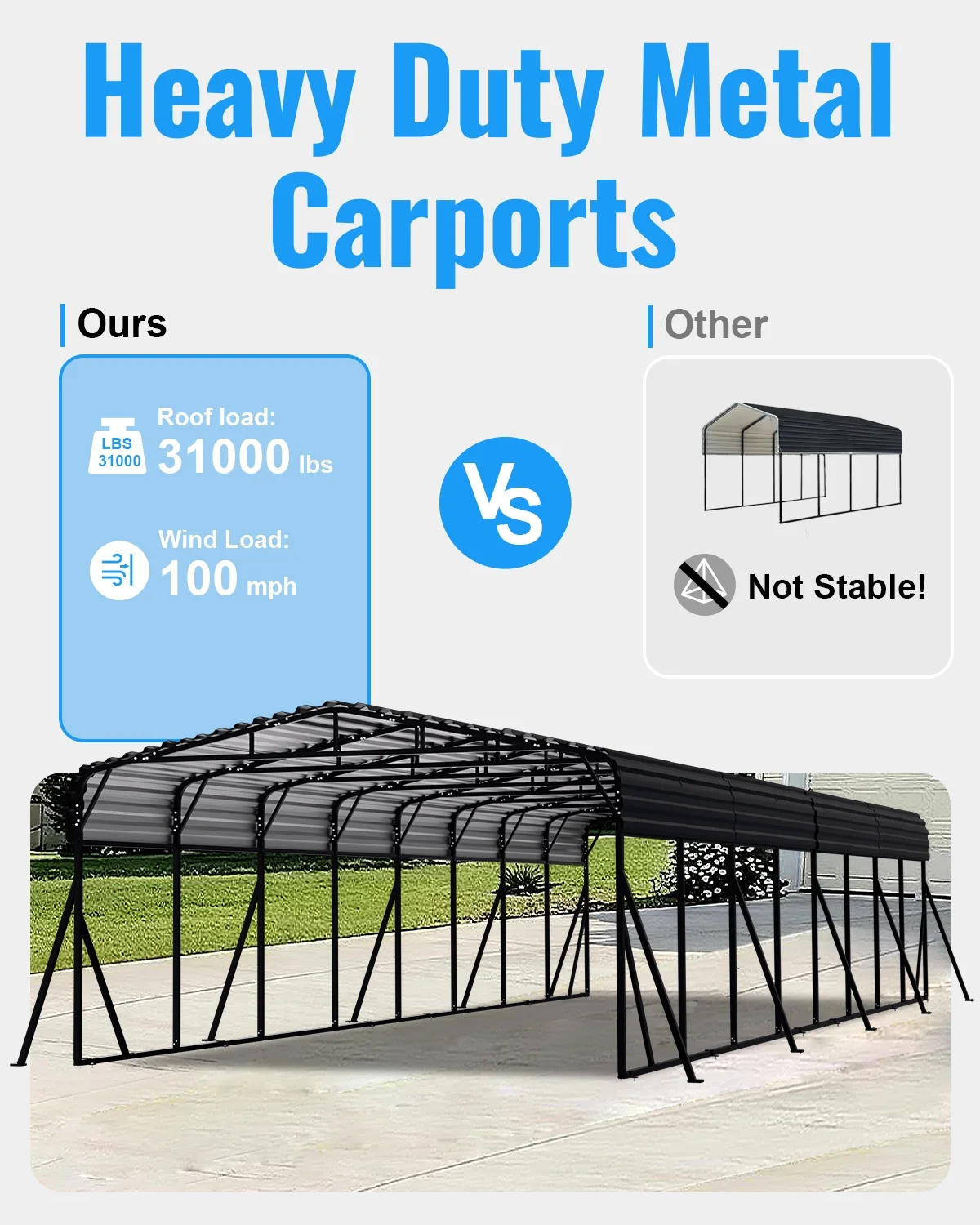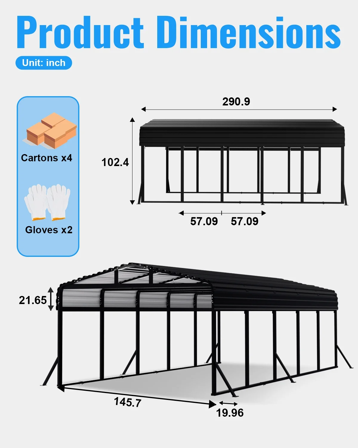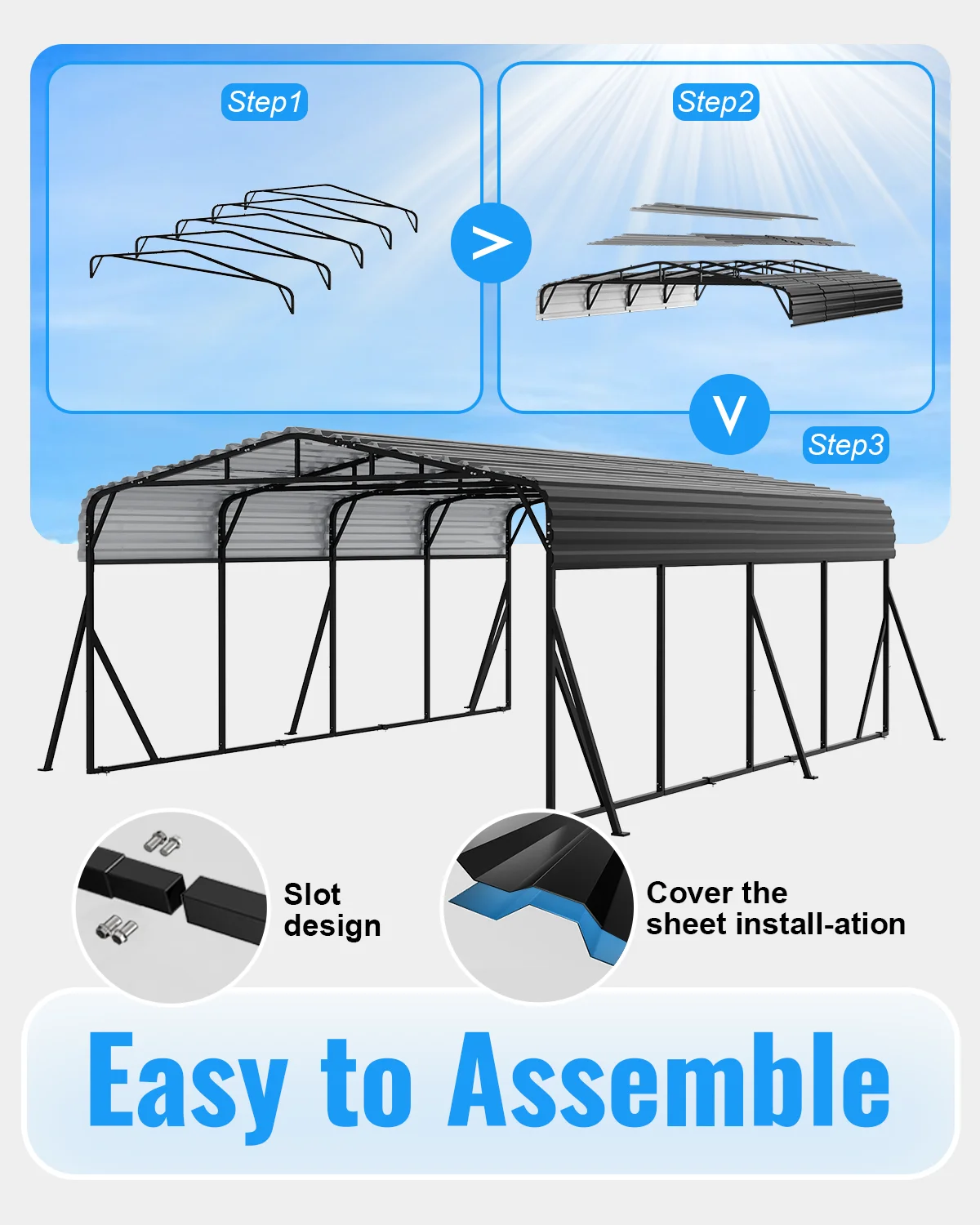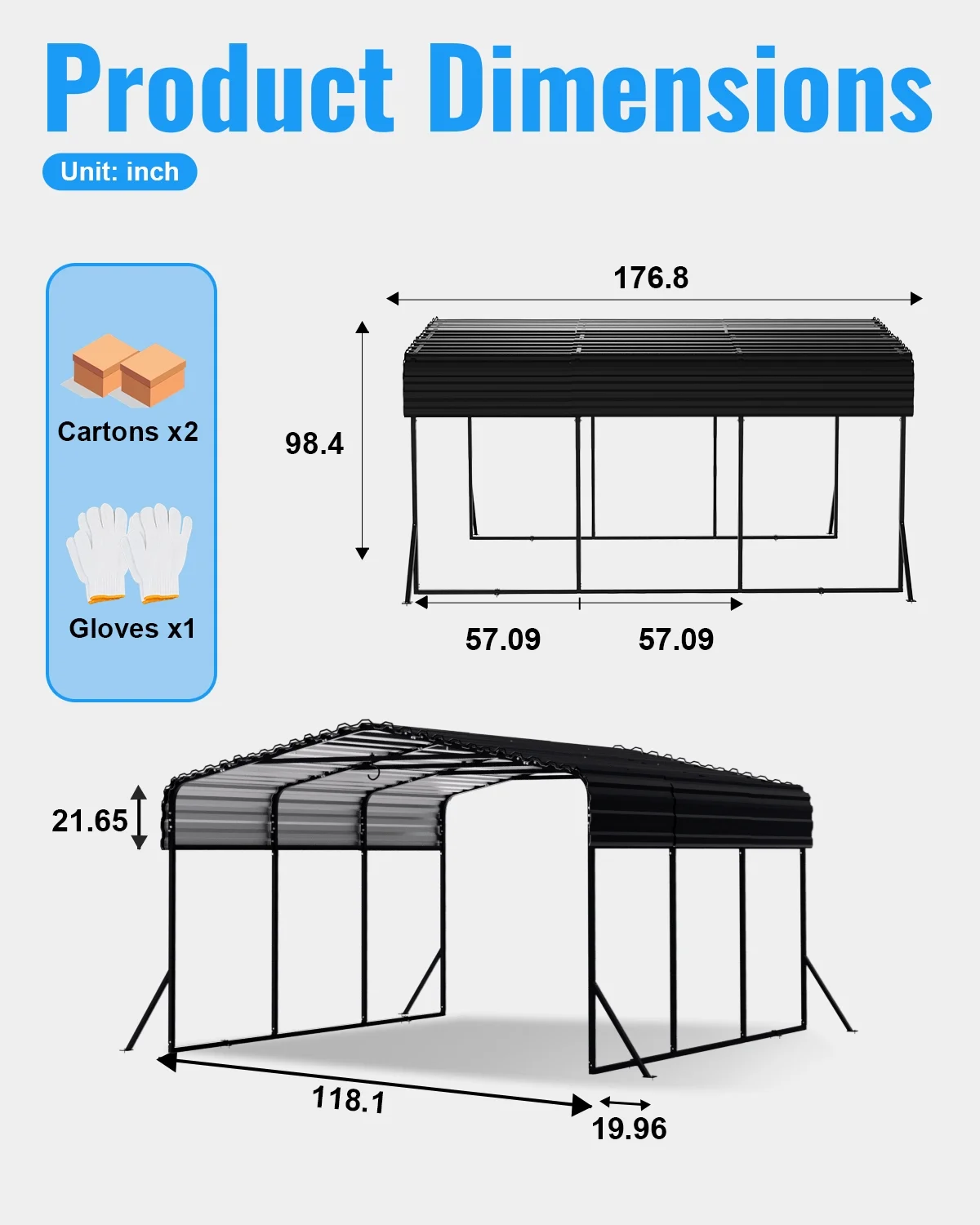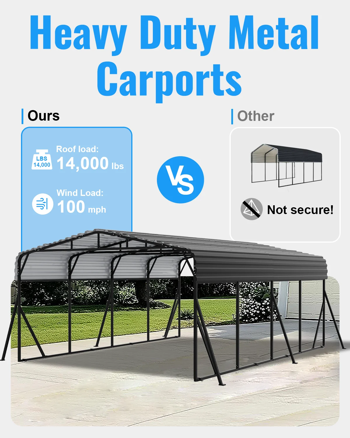 - [All-Weather Carport Durability] Built with a galvanized steel roof and powder-coated frame, this carport resists rust, UV rays, rain, and snow. The durable construction ensures your outdoor carport provides reliable coverage year-round—keeping vehicles cool in summer and preventing snow buildup in winter.