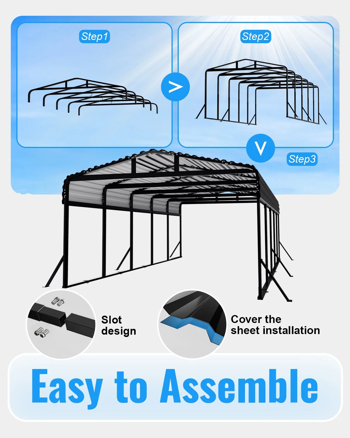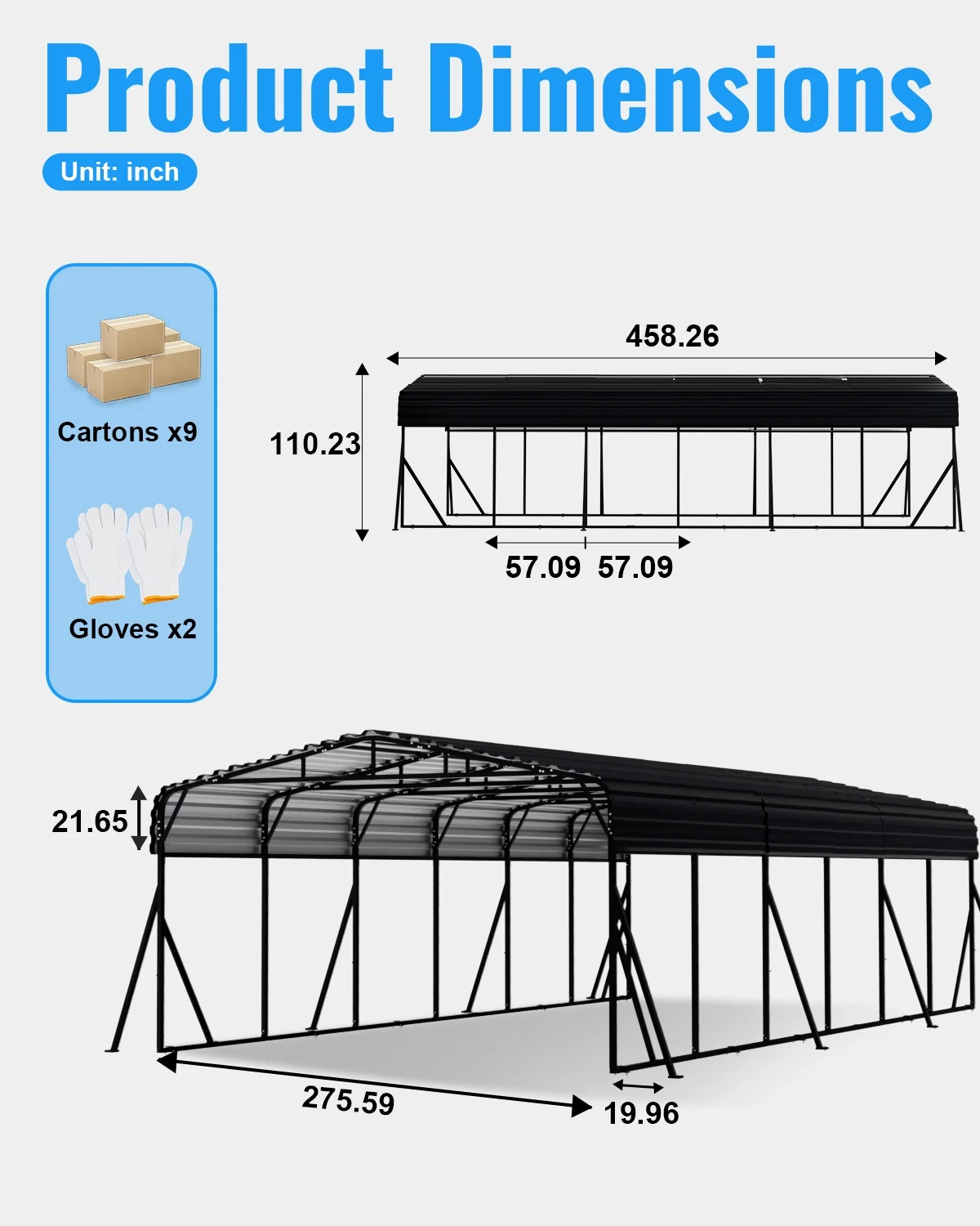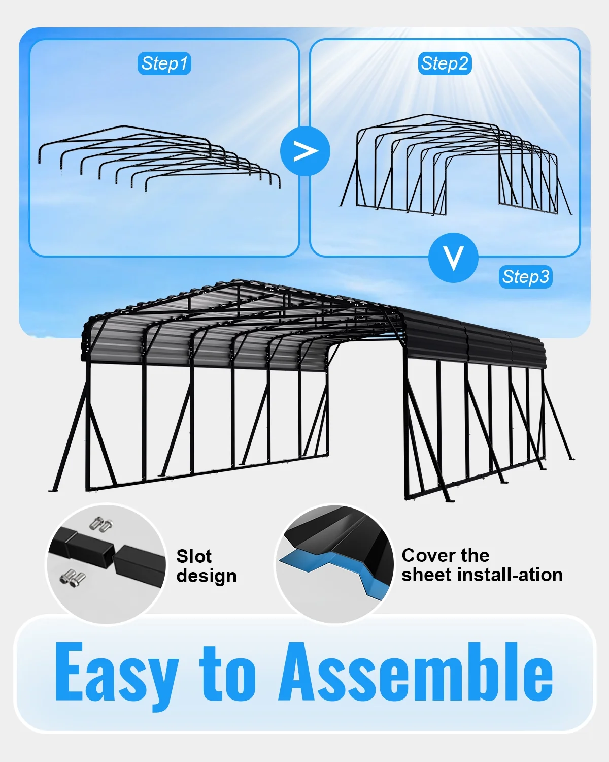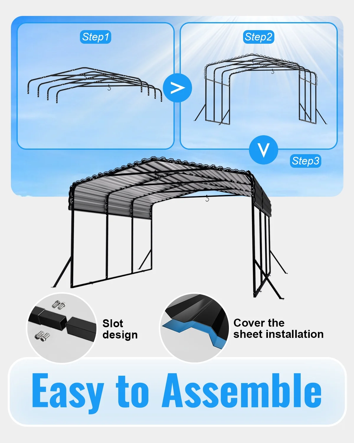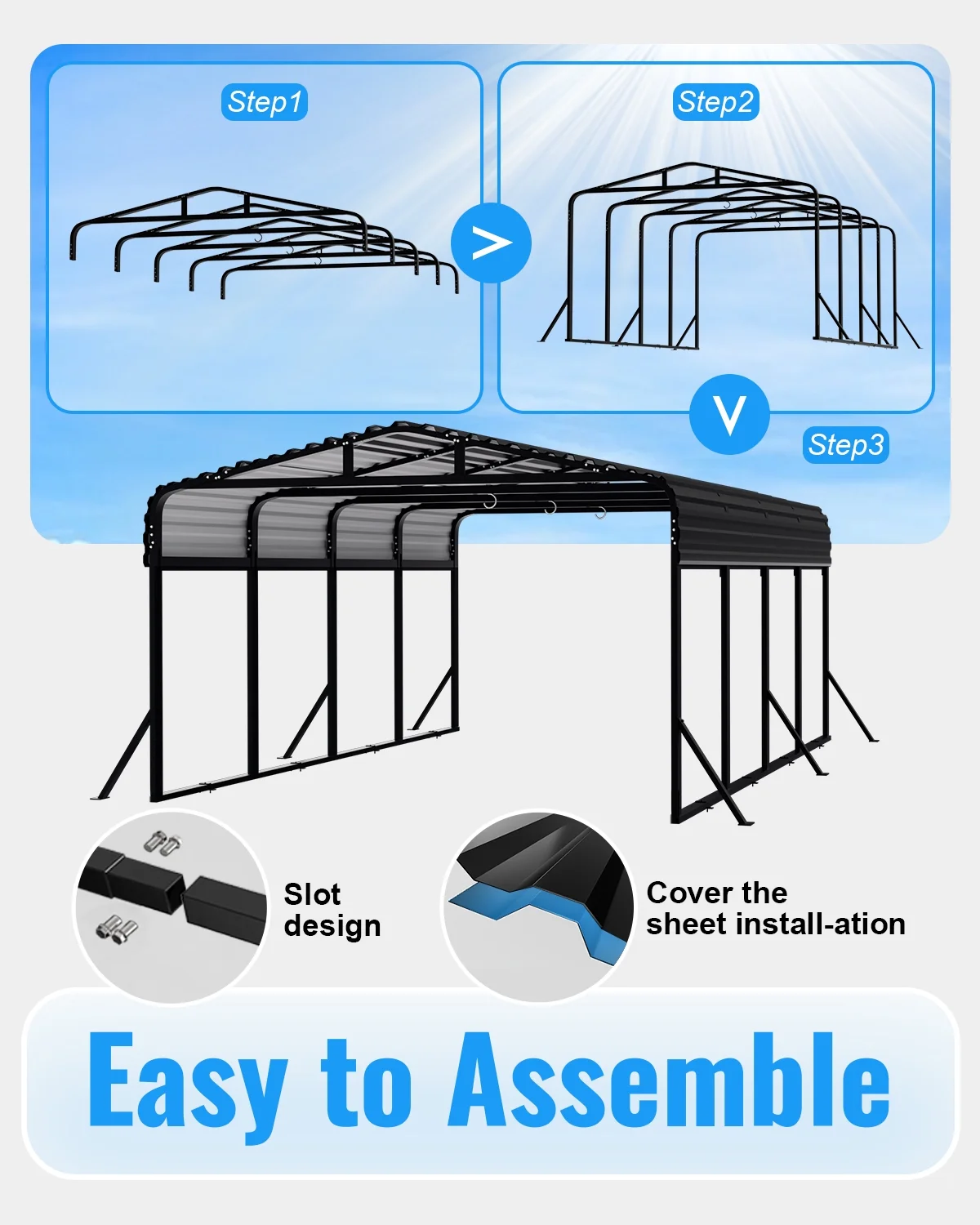 - [All-Weather Carport Durability] Built with a galvanized steel roof and powder-coated frame, this carport resists rust, UV rays, rain, and snow. The durable construction ensures your outdoor carport provides reliable coverage year-round—keeping vehicles cool in summer and preventing snow buildup in winter.