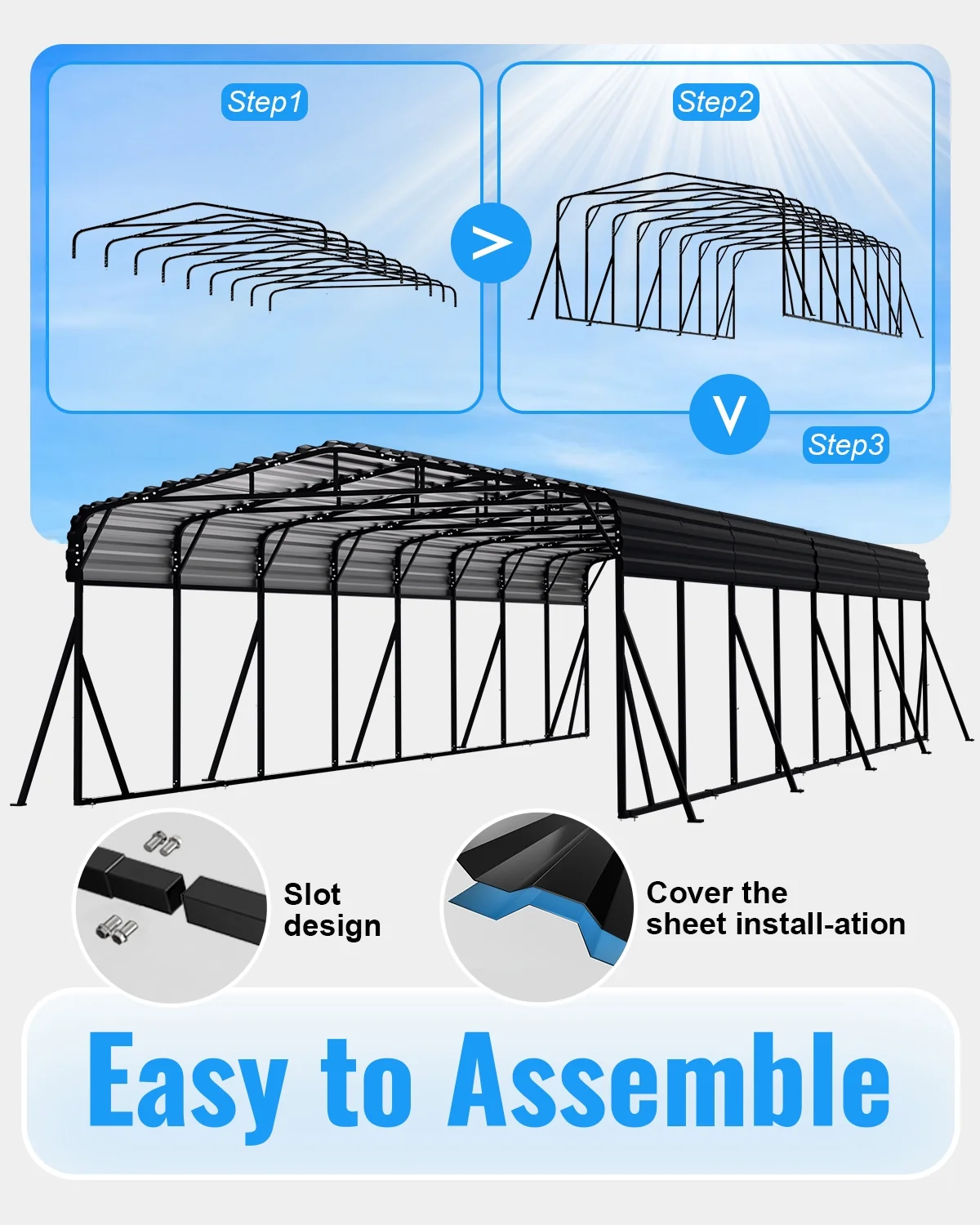 - [Spacious Carport Coverage] Offering generous space, this carport canopy easily fits full-size vehicles, SUVs, trucks, and boats. The open design makes parking and accessing large items convenient, making this carport shelter ideal for residential, farm, or commercial use.