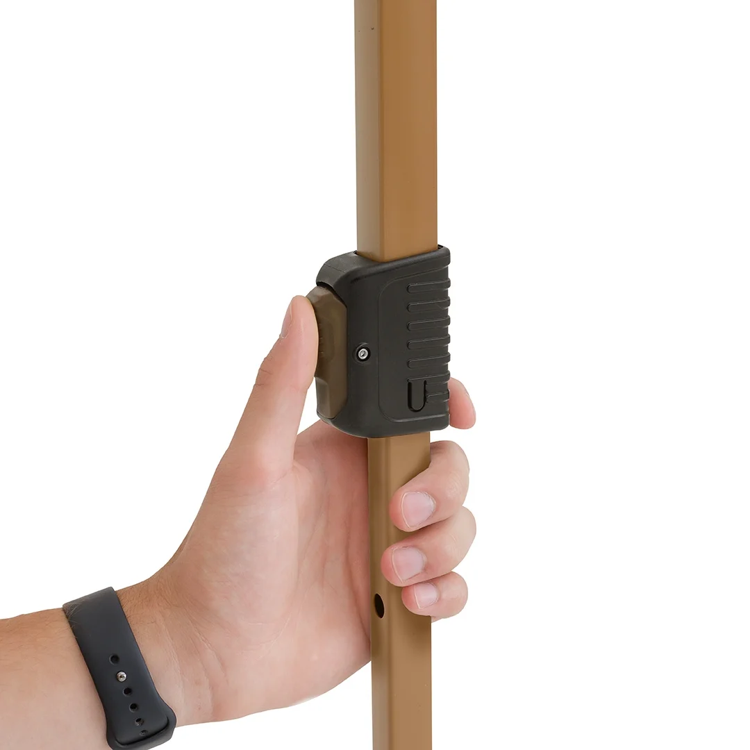 - Strong telescoping 3-position steel frame and feet for use on concrete or dirt