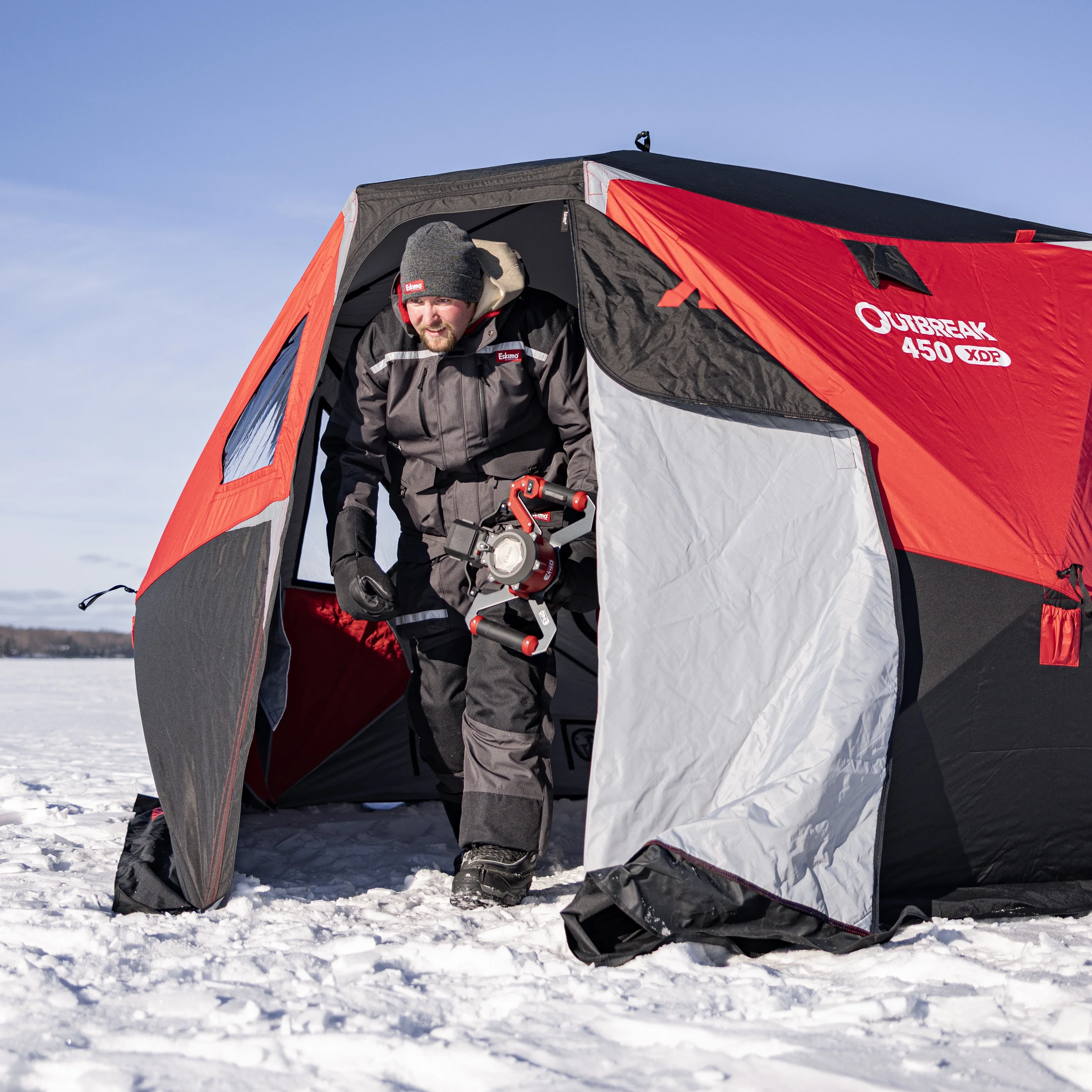 - NO-TRIP DOOR – Full panel door zips open from ice level, leaving nothing to catch a boot on or duck under when entering or exiting the shelter.