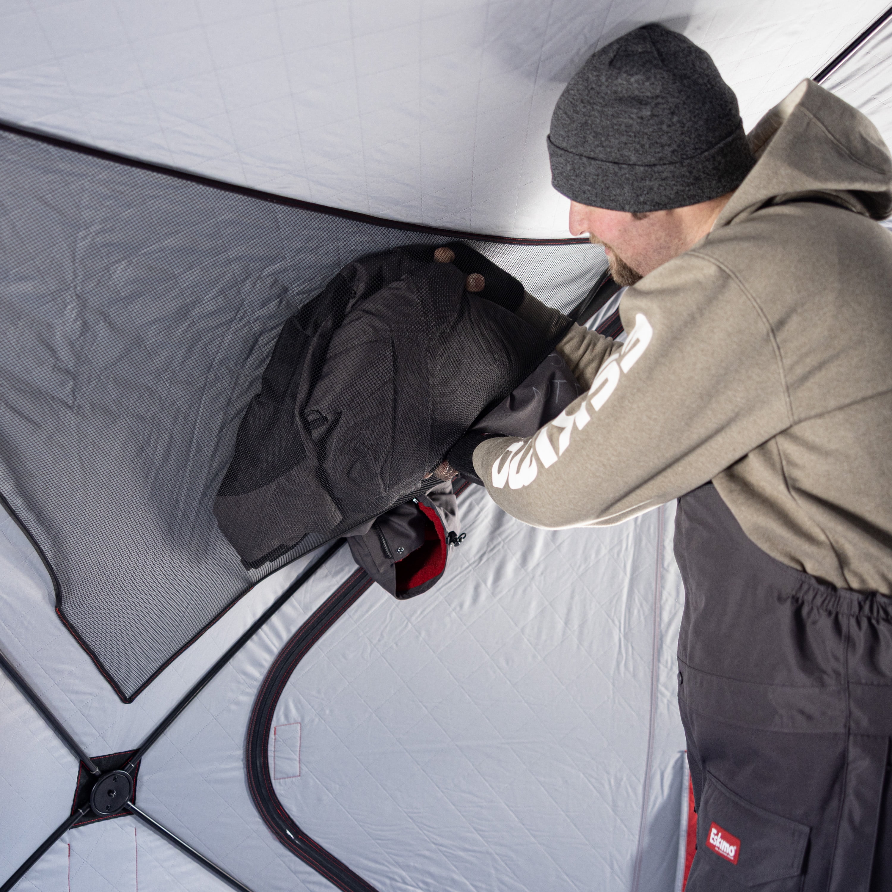 - PACKDOWN™ HUBS – Optimized hub location and pole geometry condenses the pack down length of the shelter to just 58”, so it fits into sleds and smaller vehicles.