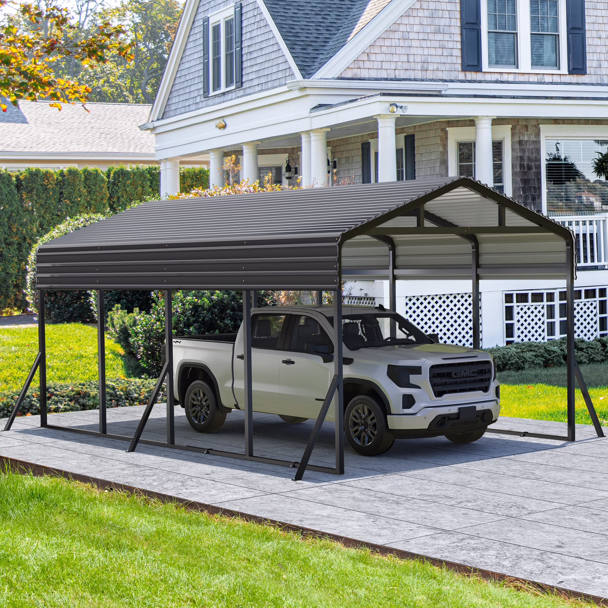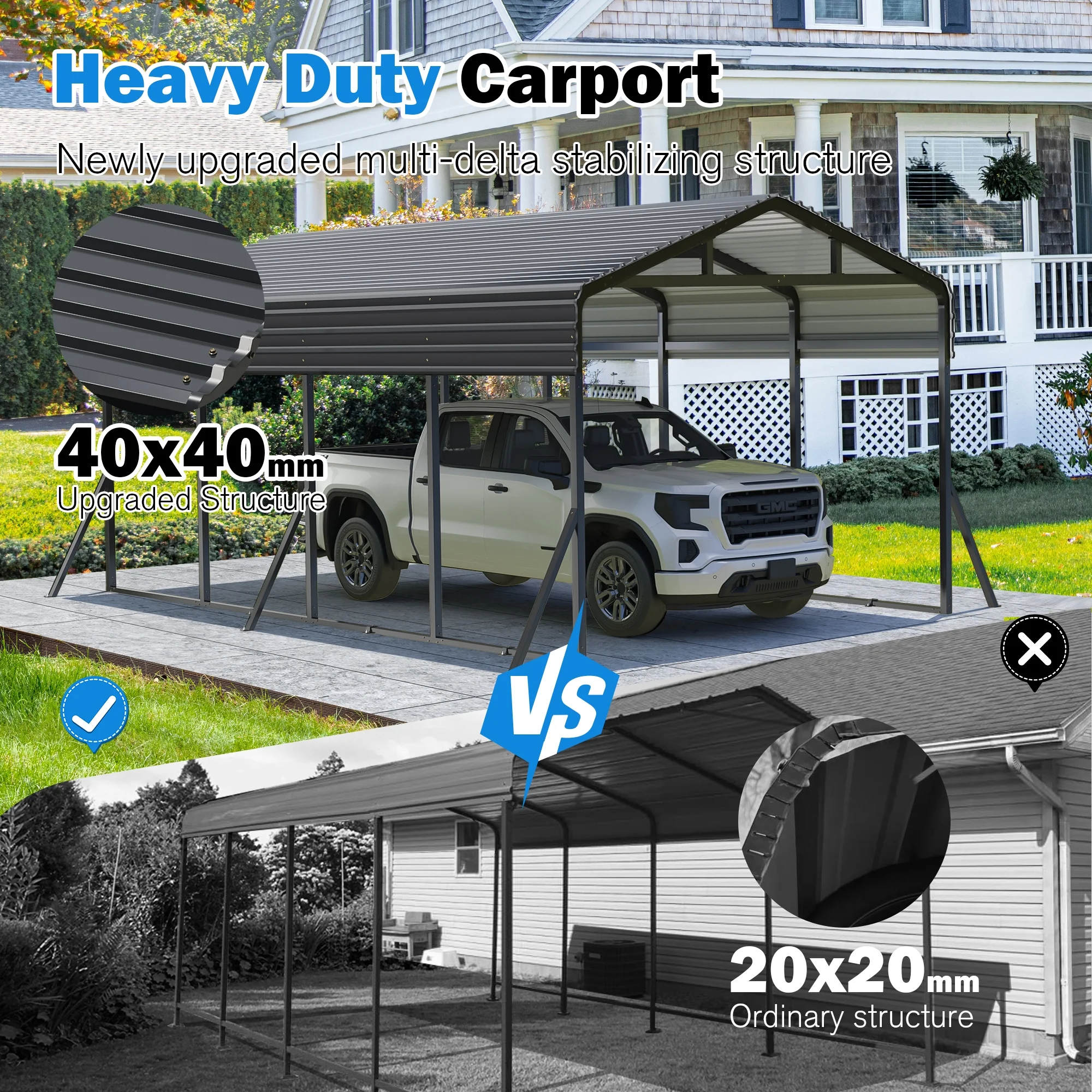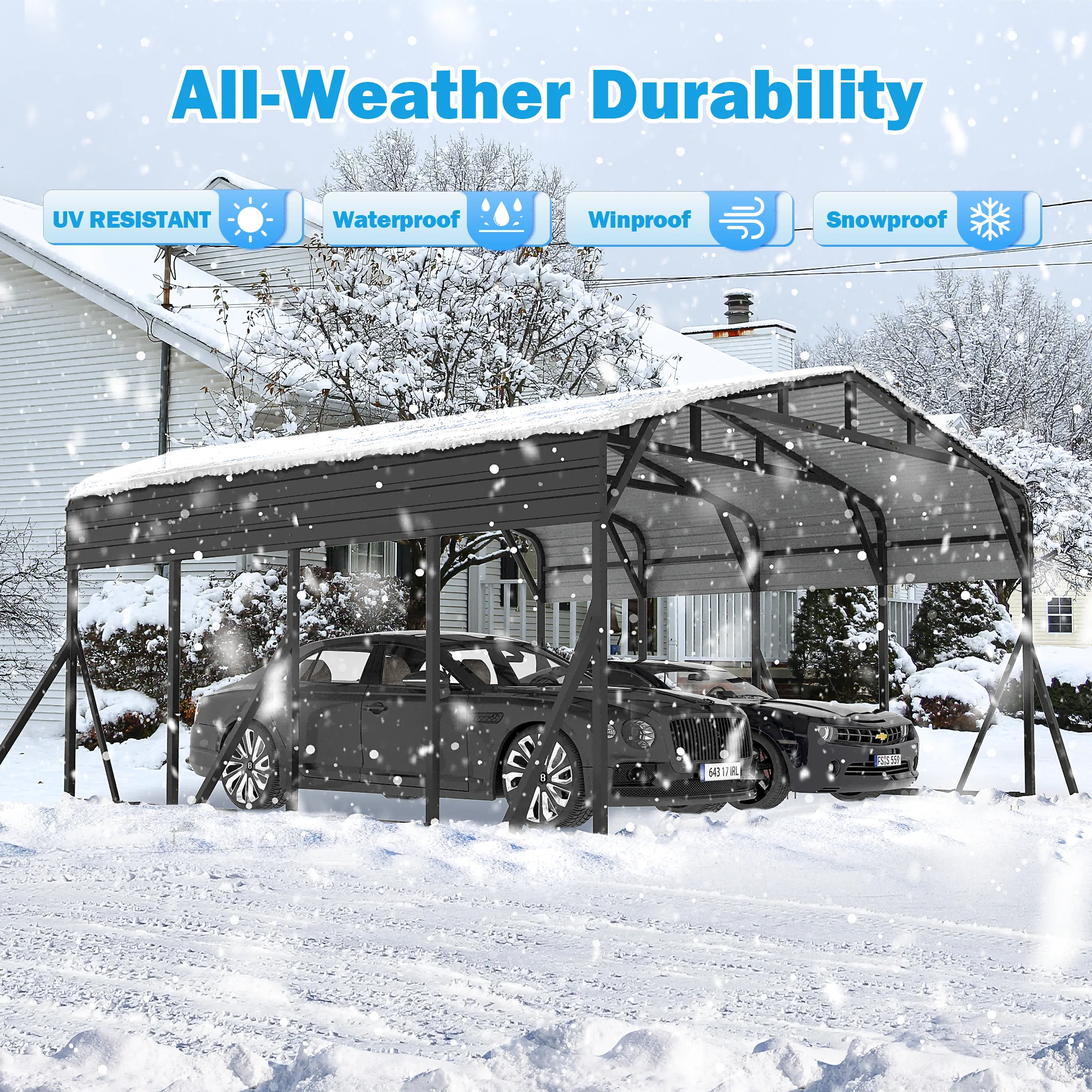 - [Durable and High Quality Material] Constructed with a robust galvanized steel framework and a high-strength color-coated steel roof, this metal carport is built to withstand extreme weather, ensuring a long-lasting service life. Waterproof sealing tape and a high-peak roof design provide superior protection from rain, wind and snow for reliable year-round shelter.
