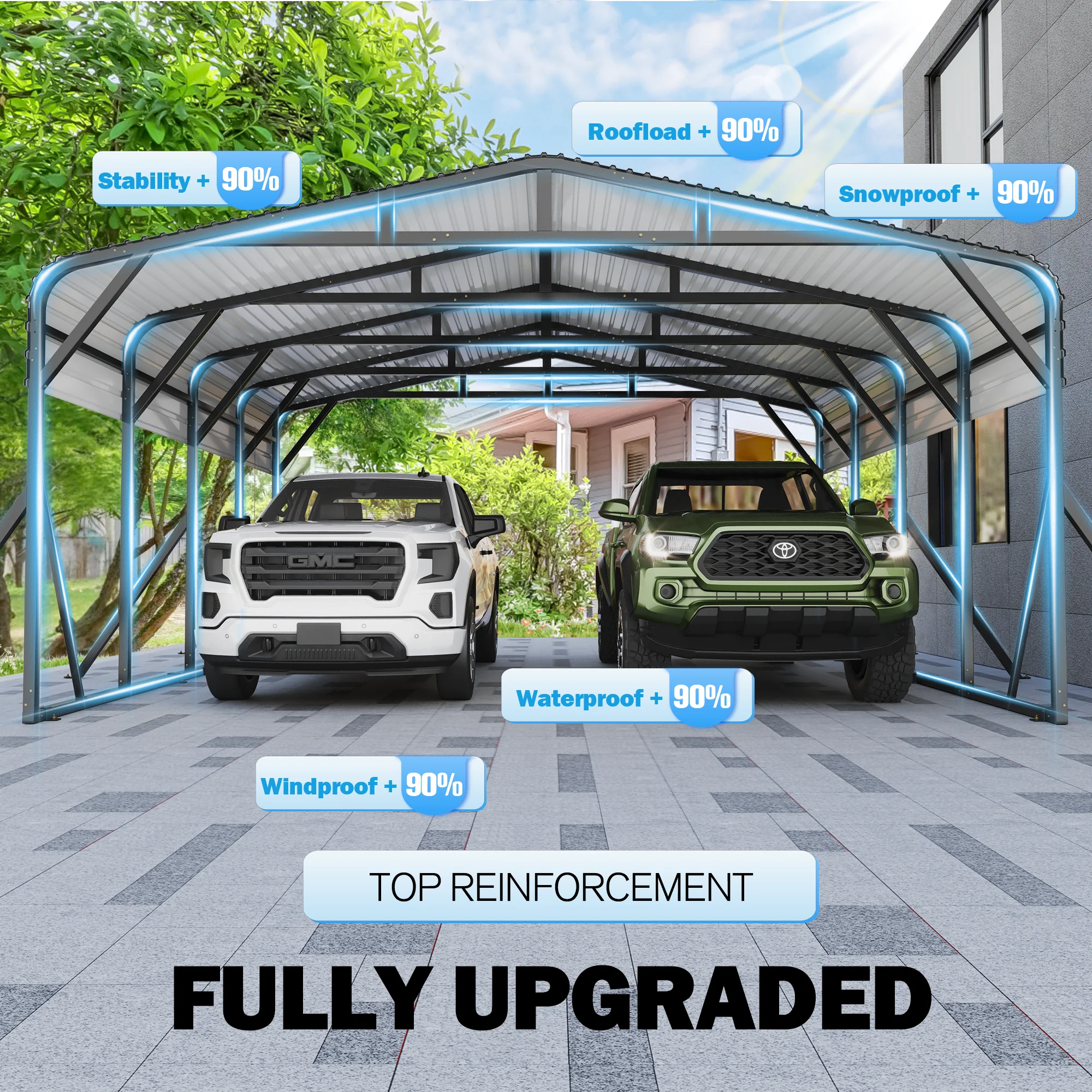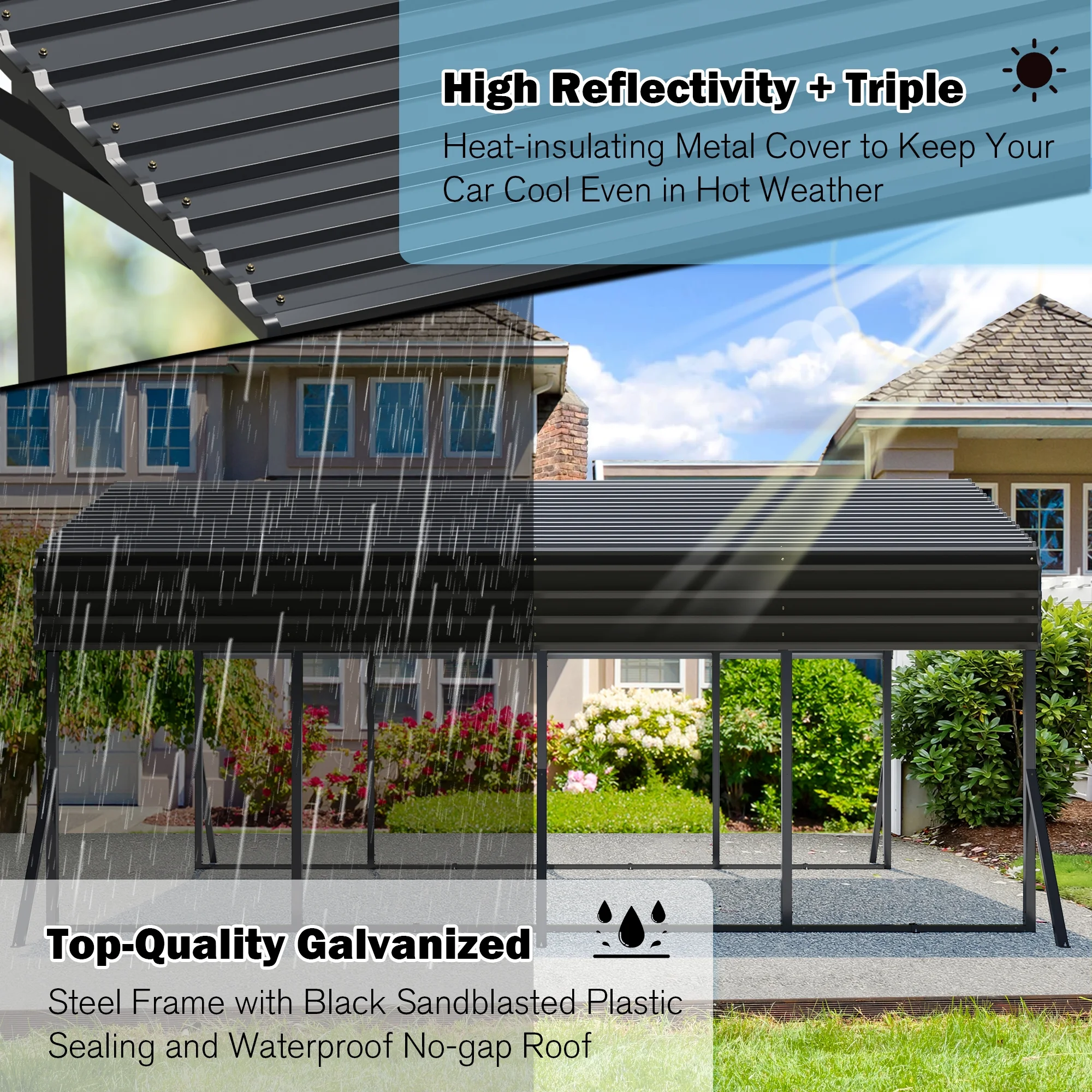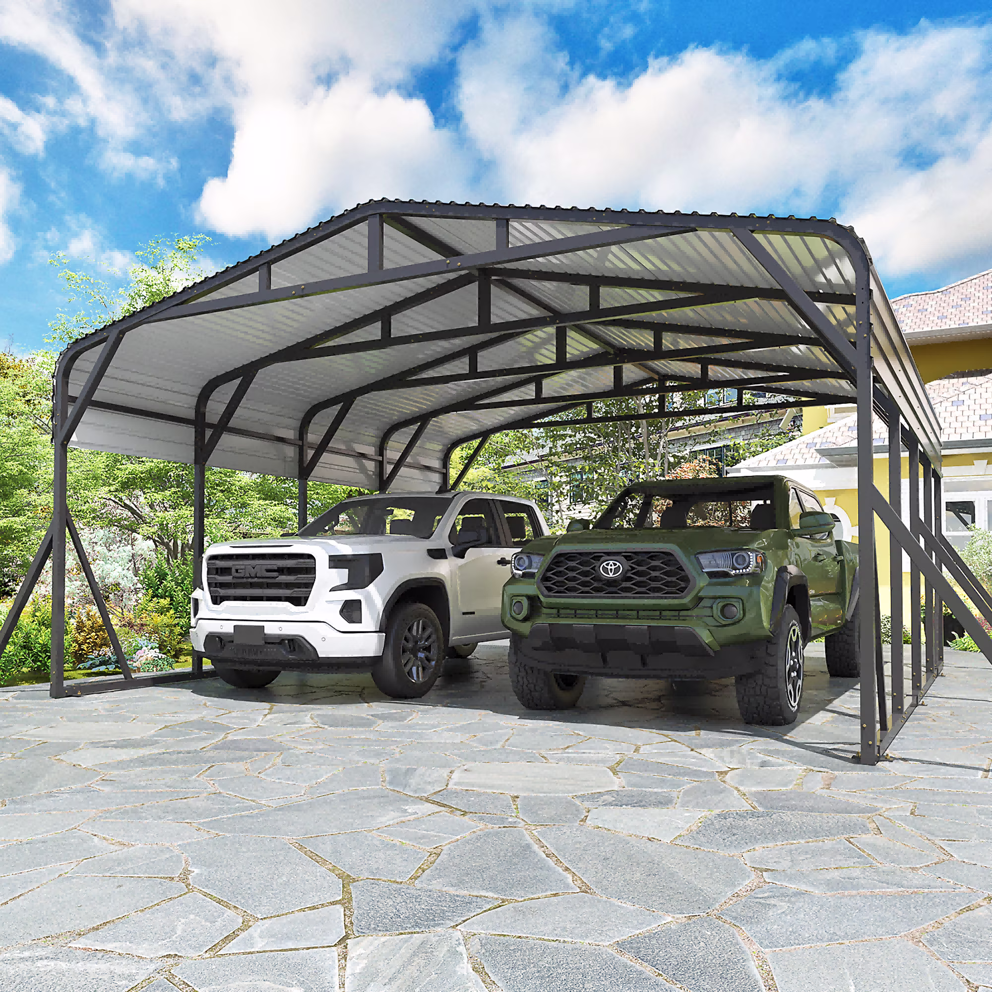 - [Durable and High Quality Material] Constructed with a robust galvanized steel framework and a high-strength color-coated steel roof, this metal carport is built to withstand extreme weather, ensuring a long-lasting service life. Waterproof sealing tape and a high-peak roof design provide superior protection from rain, wind and snow for reliable year-round shelter.