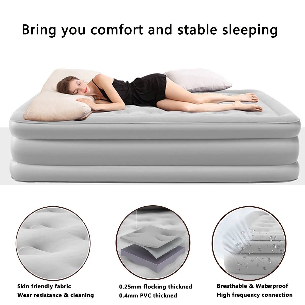 - Skin-friendly Fabric & Durable: Skin-friendly Flocking is damp-proof, comfortable, and mute, which can improve sleep quality. Durable PVC material avoids air leaks, avoids punctures, and avoids surfaces from cracking in the cold. Allows you to easily cope with harsh outdoor environments, such as wet ground, cold weather, etc. Sleep peacefully all night with the stylish, durable, and breathable bed.