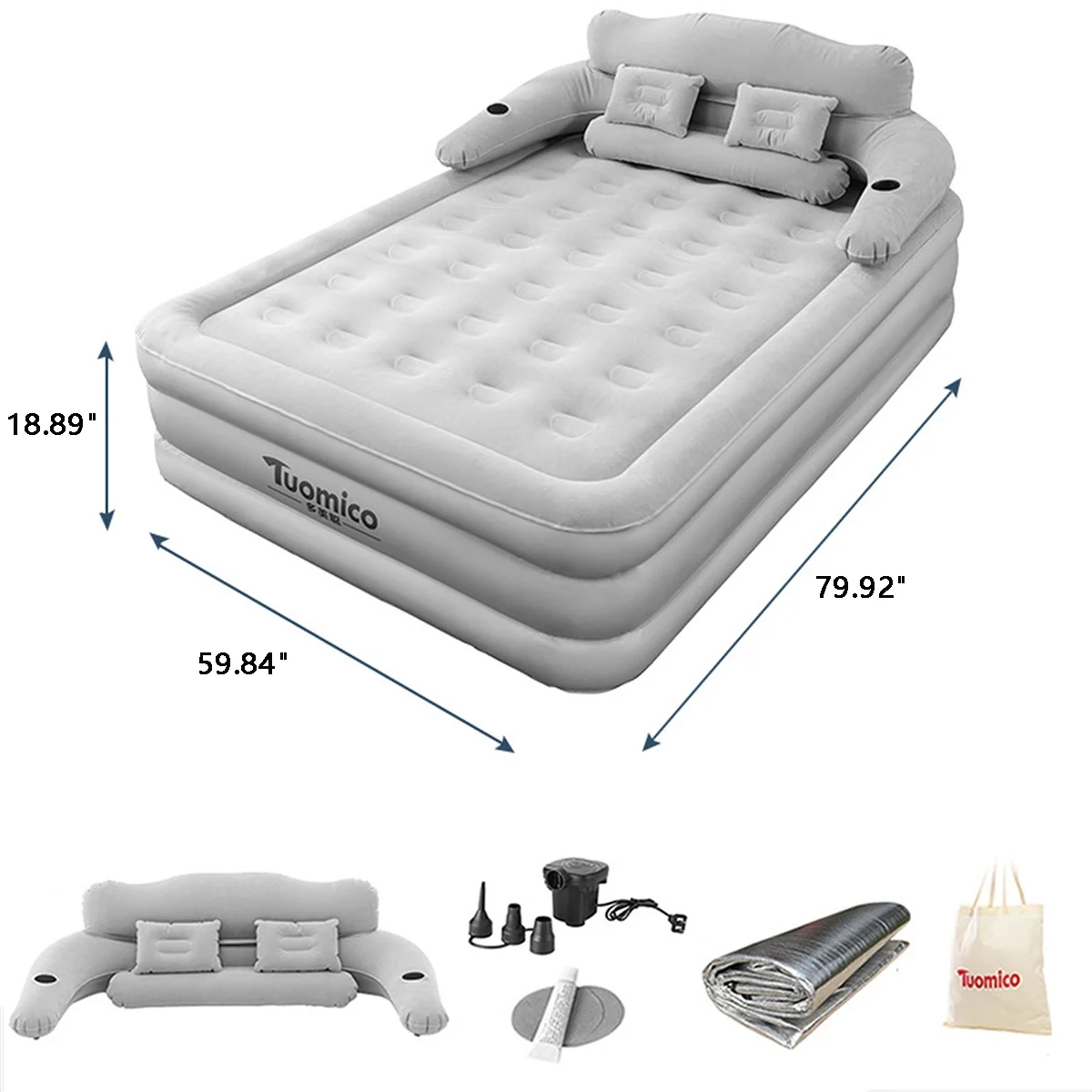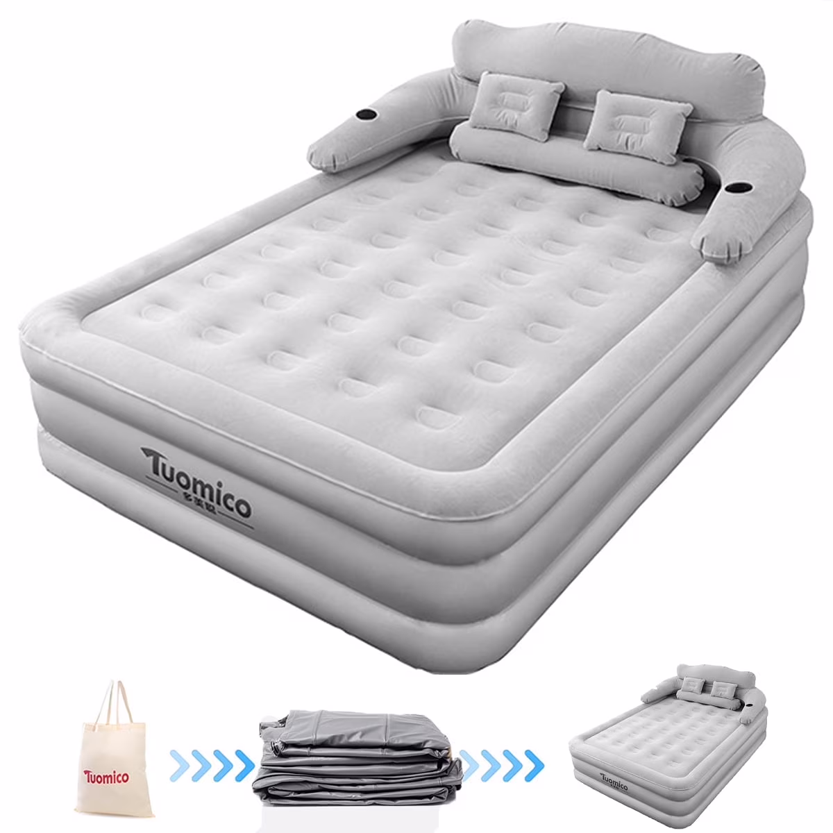 - Packing Include Set: 1*air mattress + 1*Inflatable Headboard + 2*inflatable pillow + 1*air pump+ 1*storage bag + 1*repair kit(If you have any dissatisfaction, please feel free to contact us, we have a dedicated team to serve you and give you a satisfactory answer.)