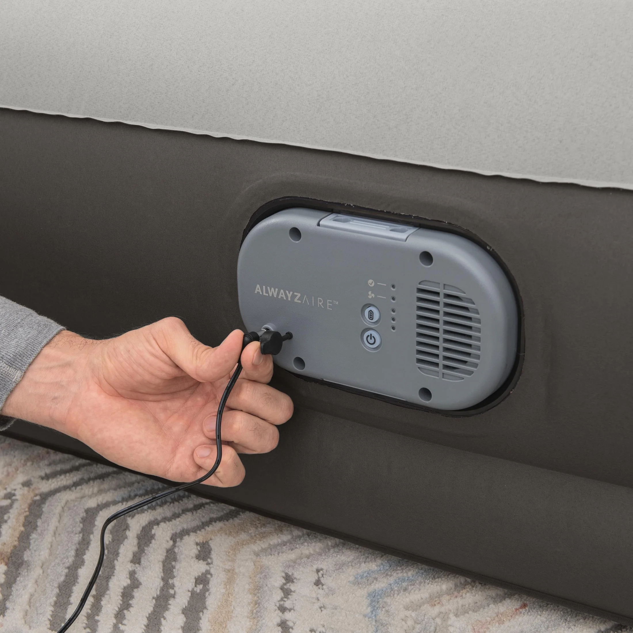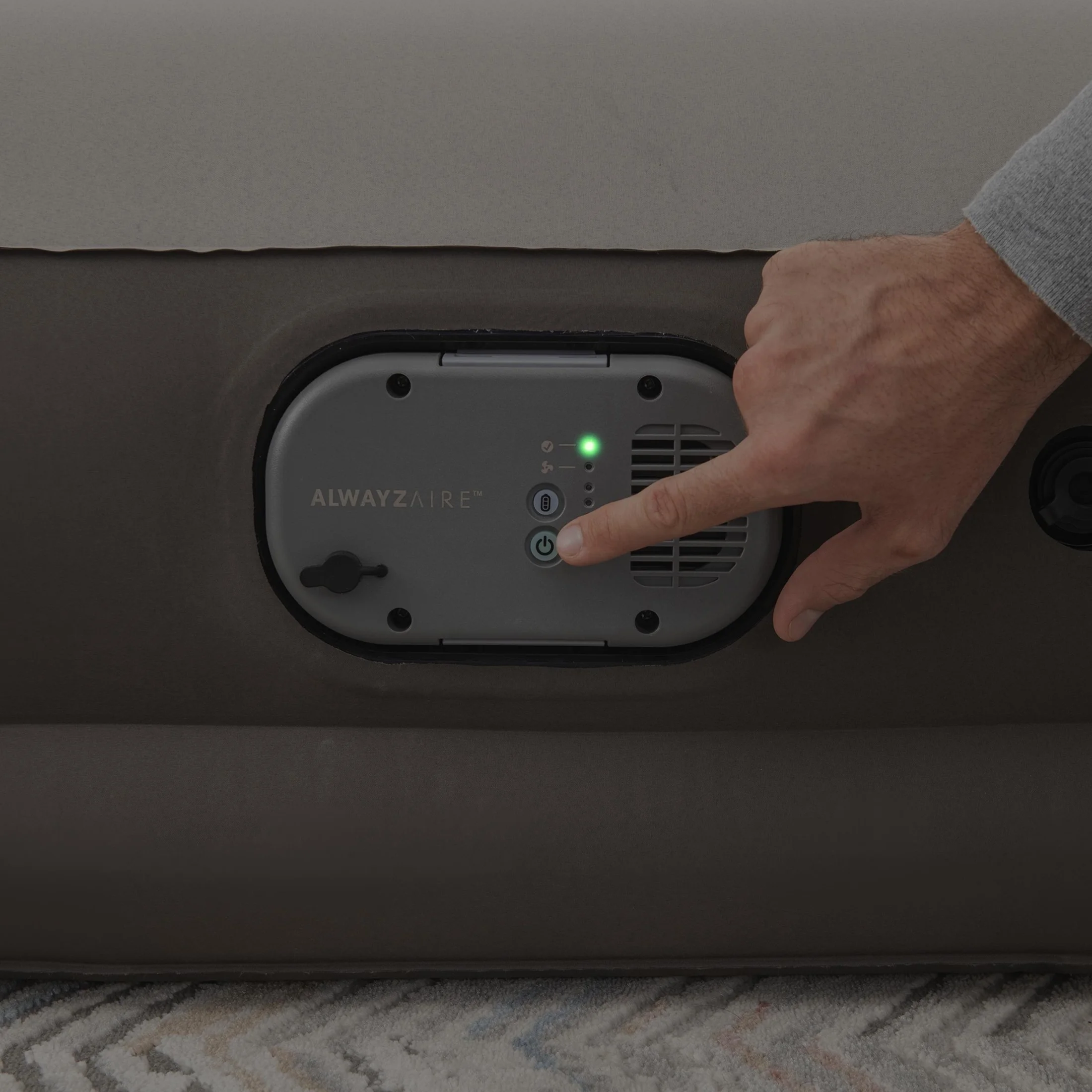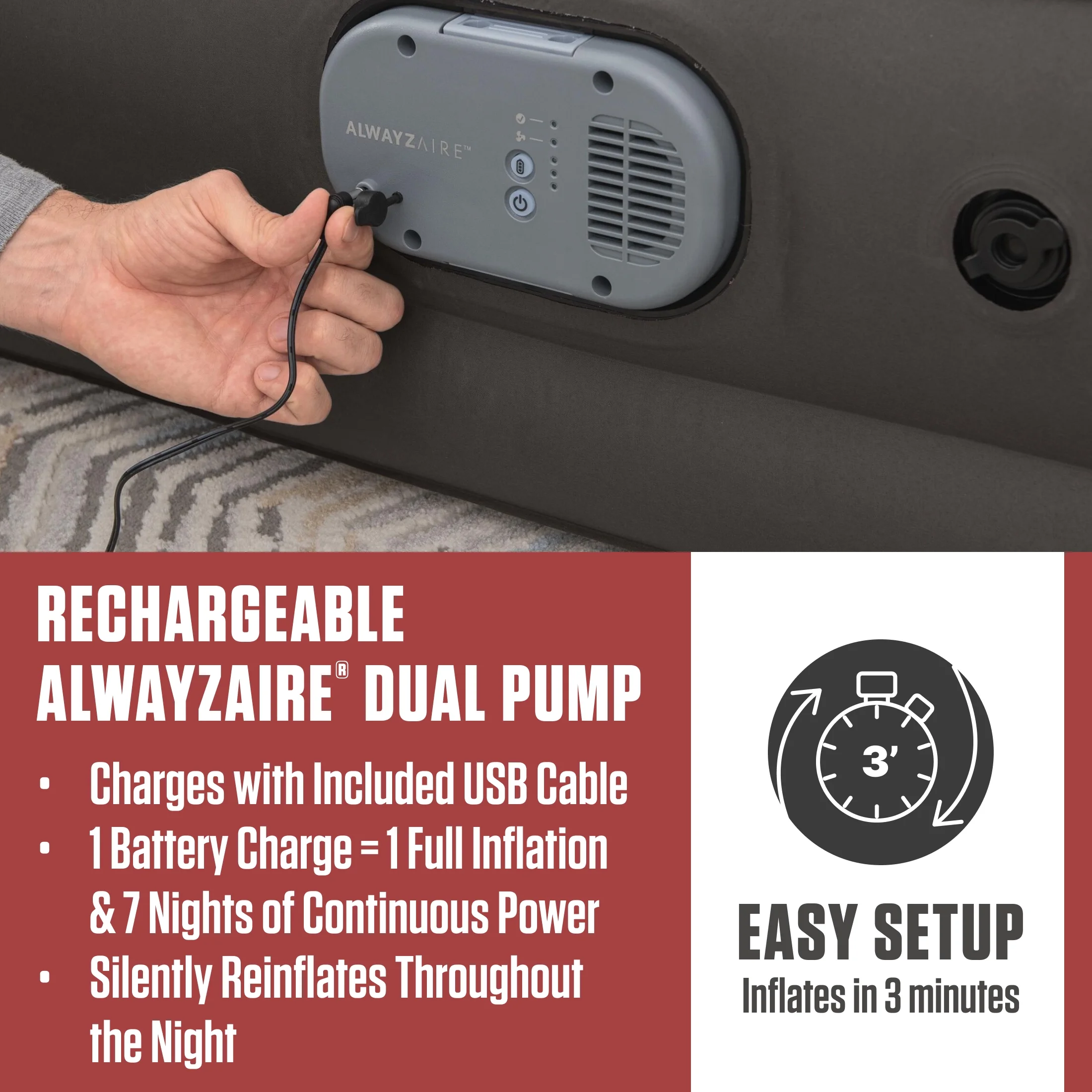 - Built-in rechargeable AlwayzAire™ dual pump inflates the bed in 3 minutes without the hassle of having to plug it in and deflates the bed instantly when removed