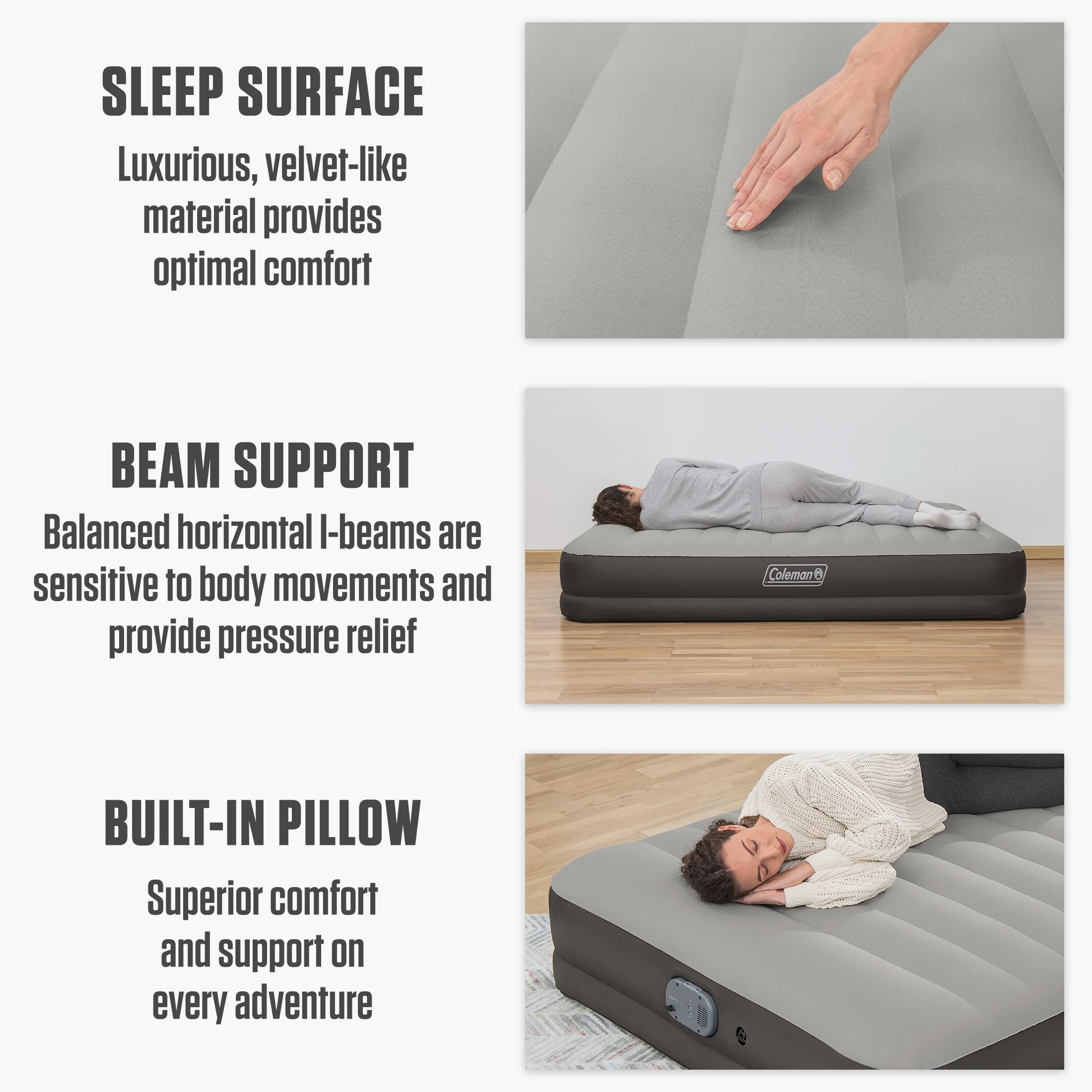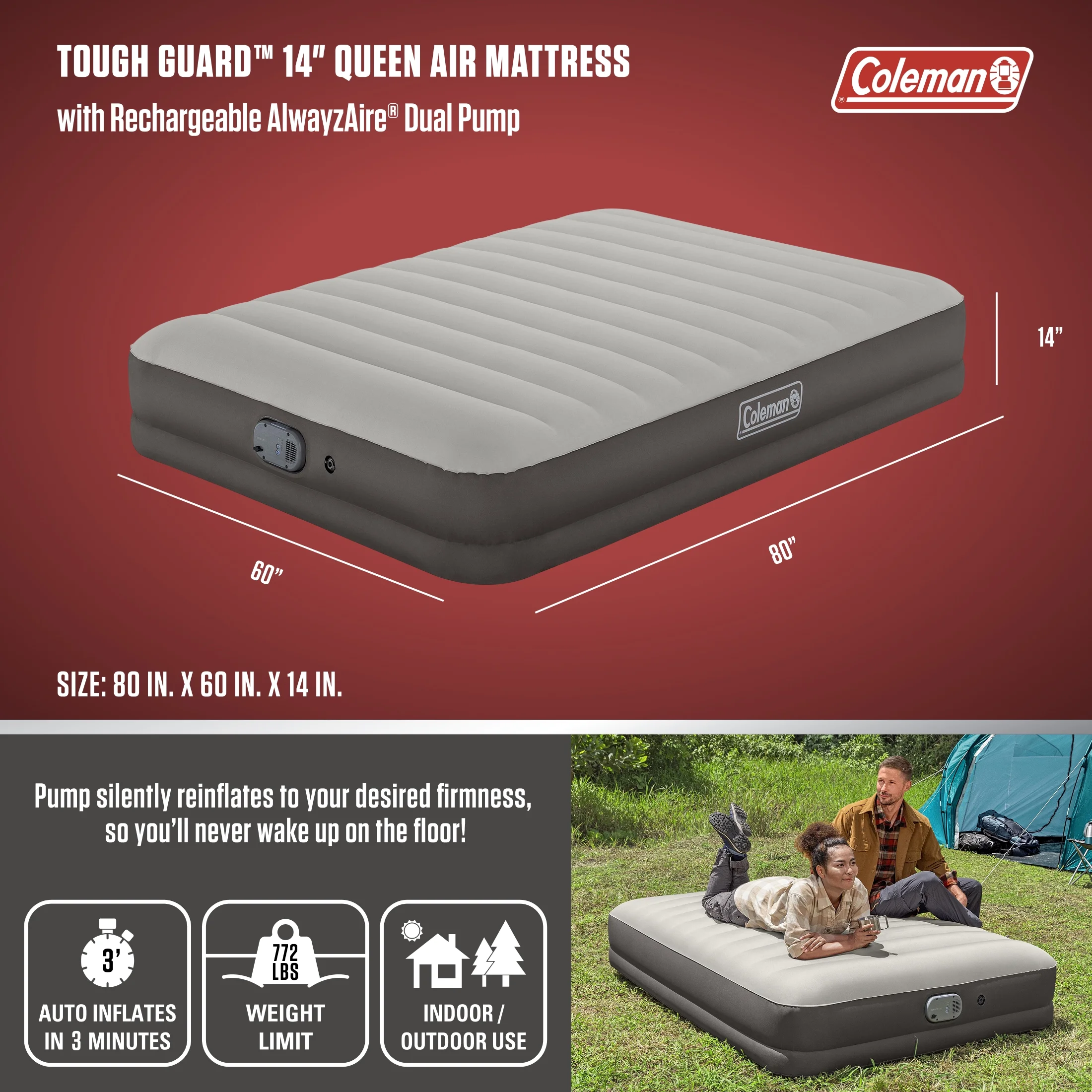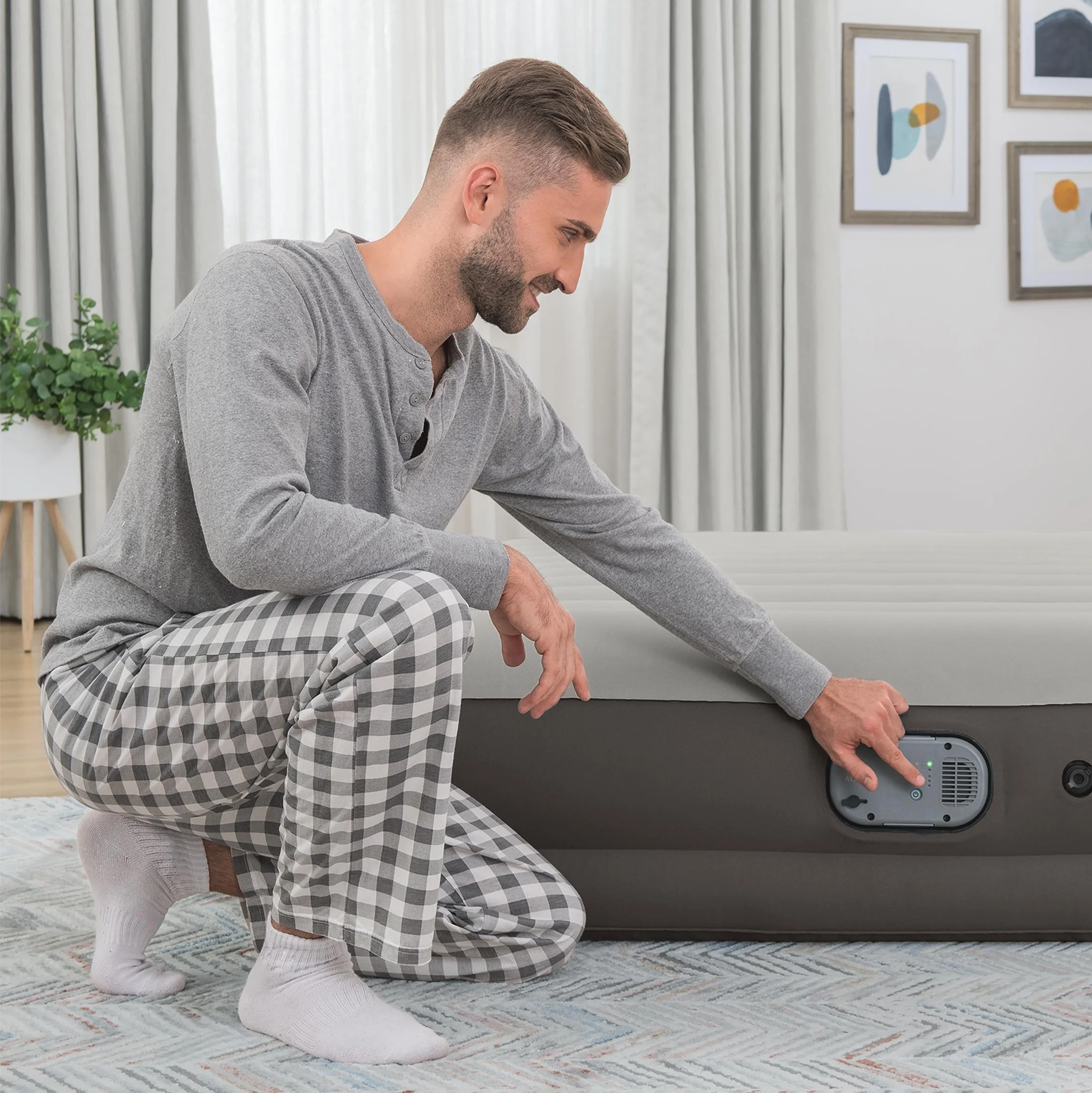 - Built-in rechargeable AlwayzAire™ dual pump inflates the bed in 3 minutes without the hassle of having to plug it in and deflates the bed instantly when removed