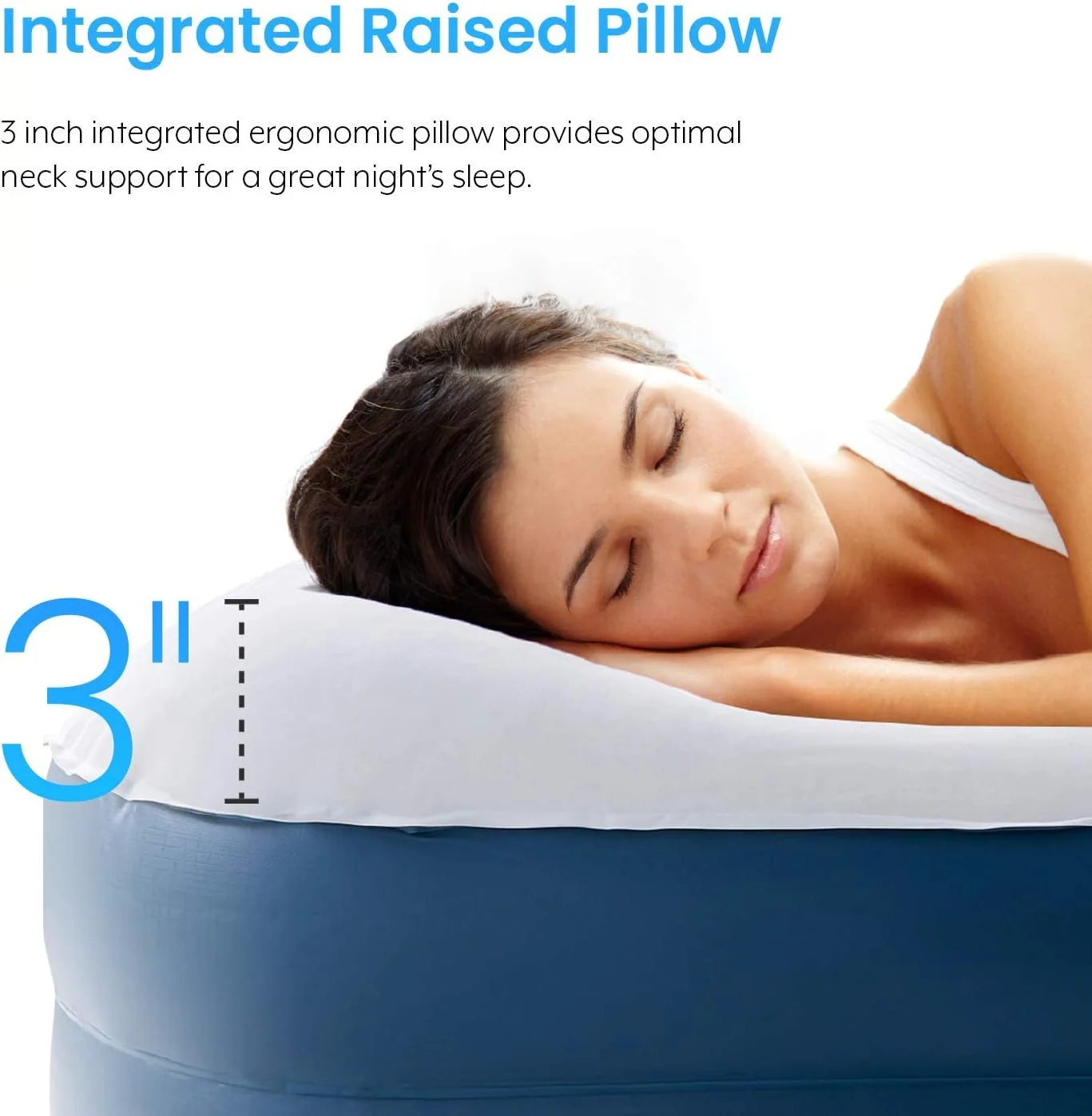 - BUILT-IN PILLOW - 3-inch raised pillow for enhanced neck support and spinal alignment, increasing height to 18inches