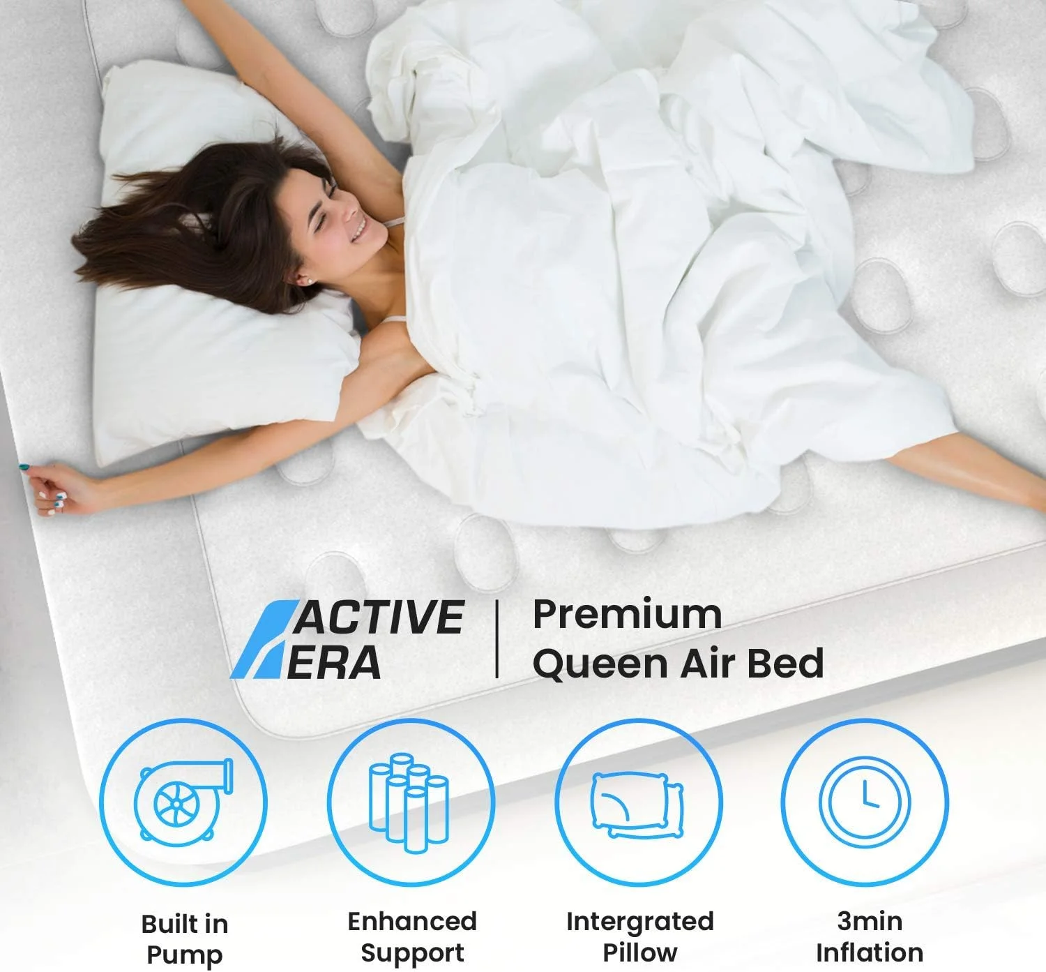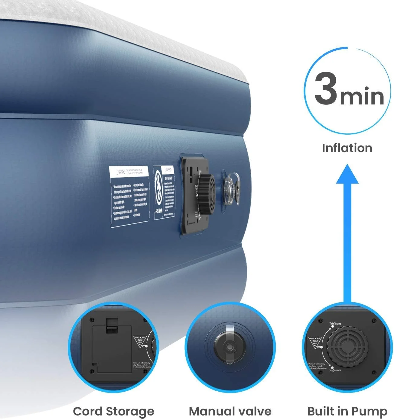 - FAST INFLATION - Electric pump inflates bed to full firmness in under 3 minutes