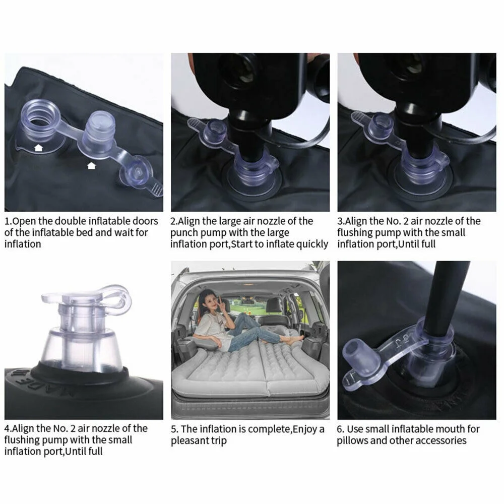 ● the Firmness Can Be Adjusted According to Your Needs. to Inflate the Mattress, You Only Need to Plug the Pump into the Cigarette Lighter Socket of the Car, and Then Pump Air into the Mattress Through the Nozzle.