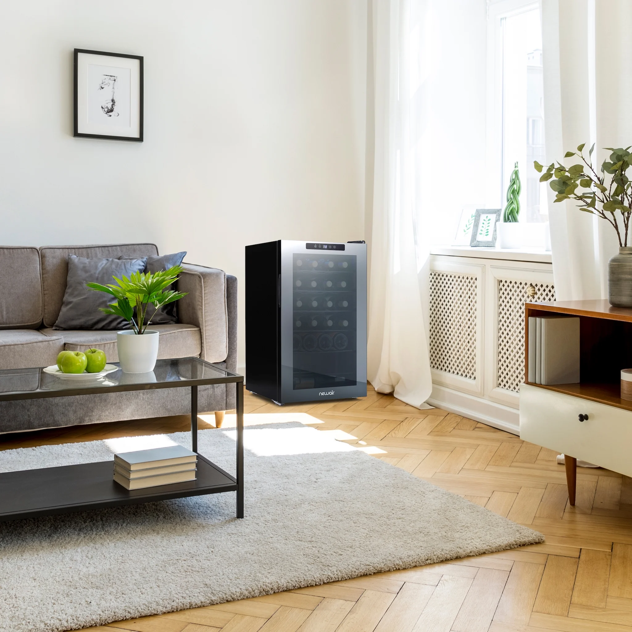 Newair Shadow Series Wine Cooler Refrigerator 24 Bottle, Freestanding Mirrored Wine Fridge with Double - Layer Tempered Glass Door & Compressor Cooling for Reds, Whites, and Sparkling Wine