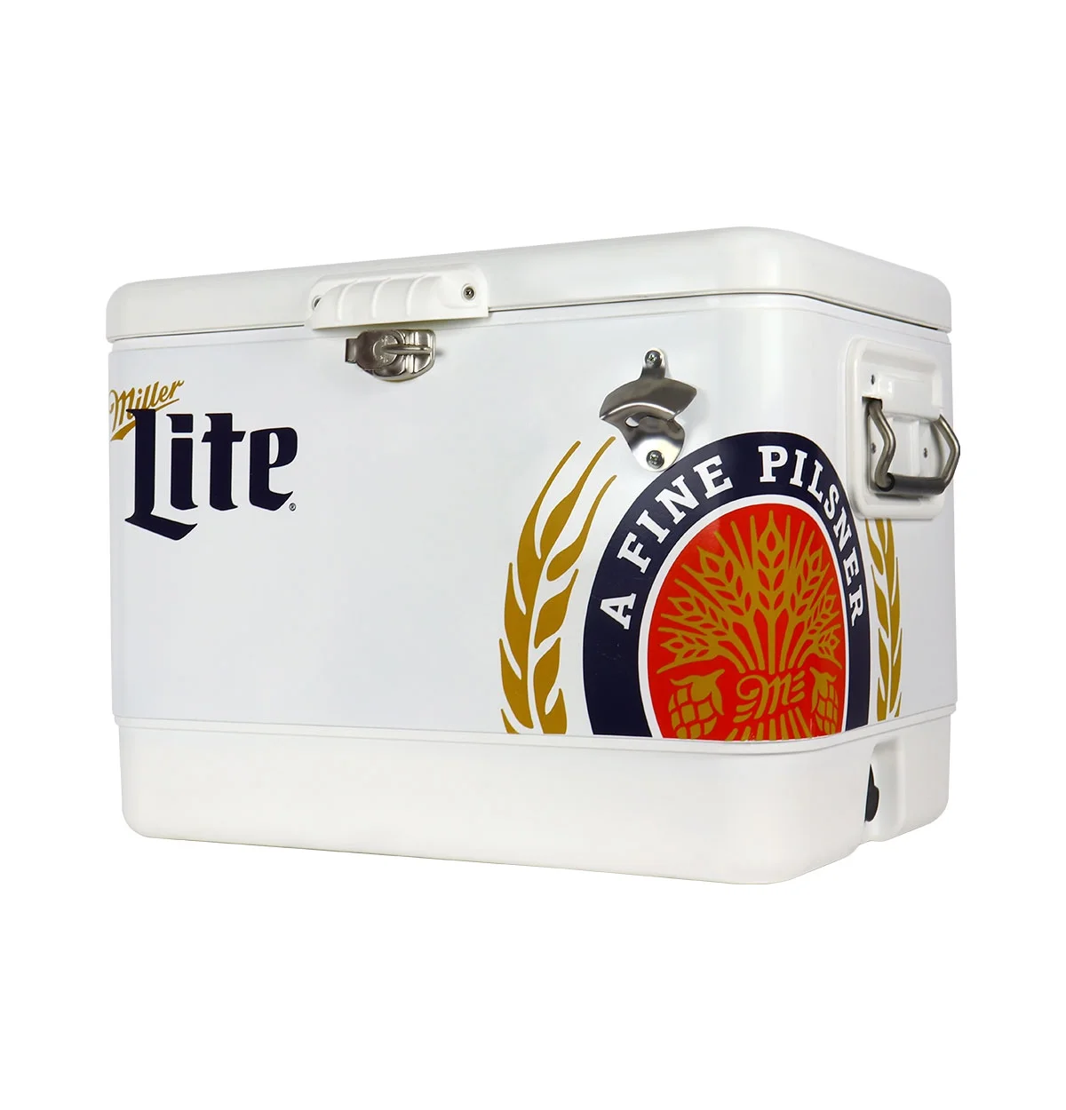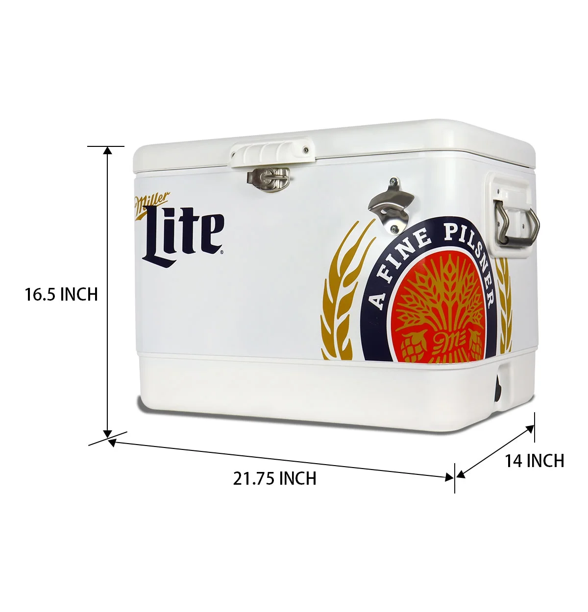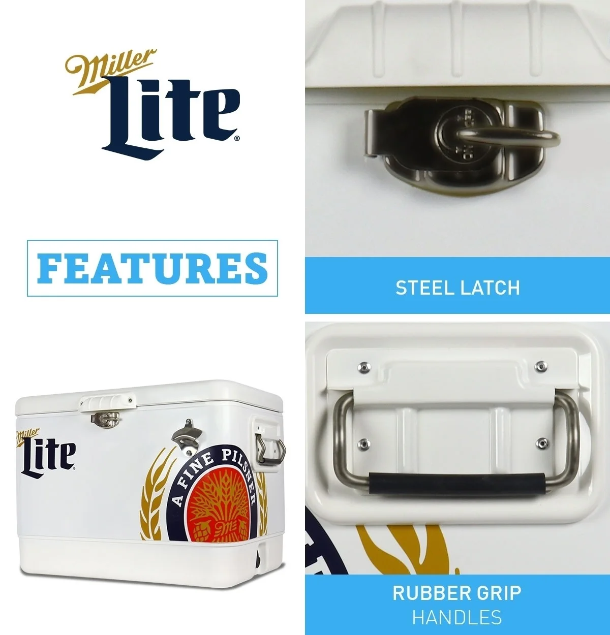 - Built-In Bottle Opener: Miller Lite branded cooler features a bottle opener conveniently attached to the outside so you don’t have to scramble or search when you want a cold one