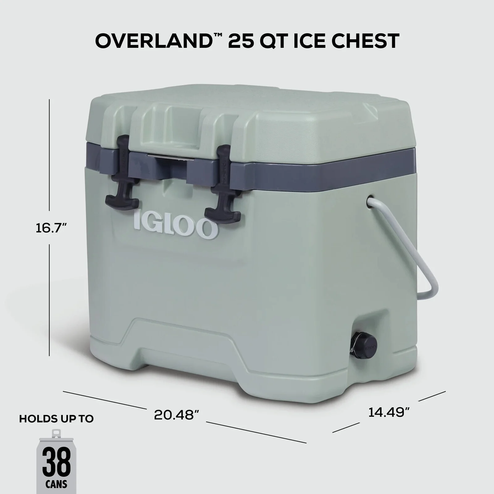 When the outdoors beckon, Igloo Overland is ready. From superior ice retention to little features that go a long way, Igloo built the compact, adventure-ready Overland 25-Quart Bail Handle Cooler to see you through your journey outdoors — all while keeping your provisions fresh. The Overland cooler won't let you down. With extra-thick 1.5-inch foam-insulated walls and an insulated lid, you'll get dependable, long-lasting ice retention, so your essential food and drinks stay chilled. The lid shuts securely using the durable rubberized latches — which seals the cooler, so things won't spill out. In addition, the built in locking plate allows you to lock your cooler for added security. Igloo also crafted Overland with convenient features, like a bottle opener, UV inhibitors that'll help prevent sun damage and a threaded, tethered drain plug to make emptying any melted ice at the end of your trip practically effortless.