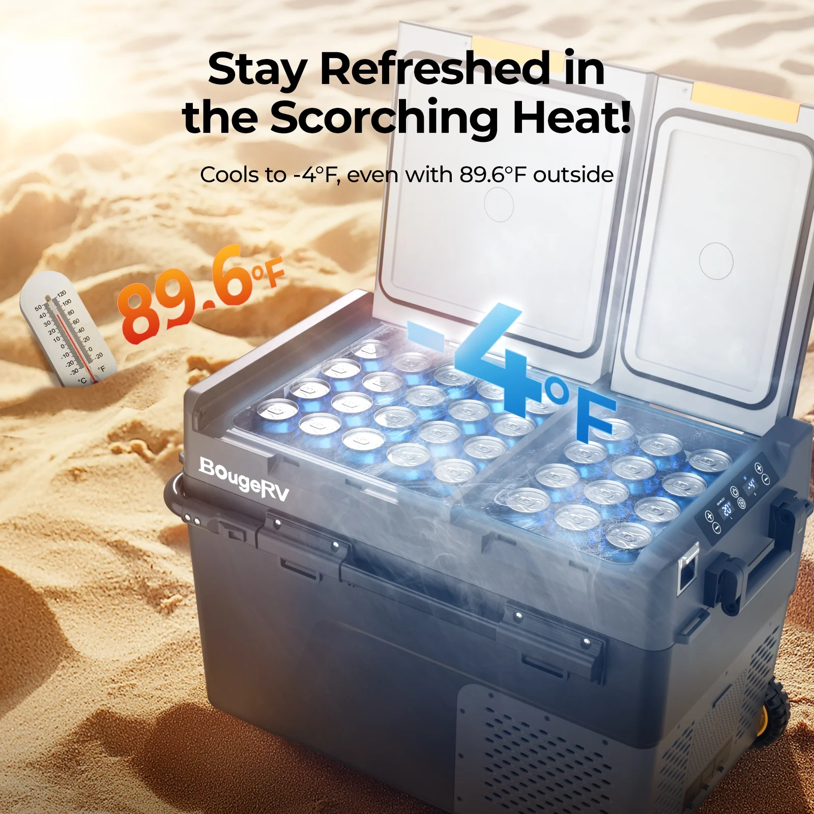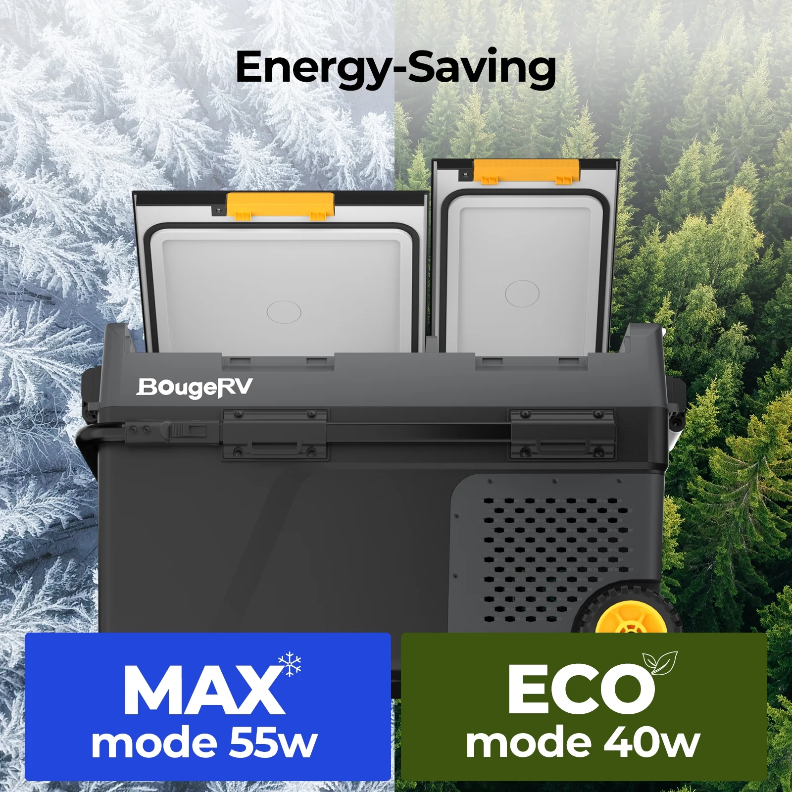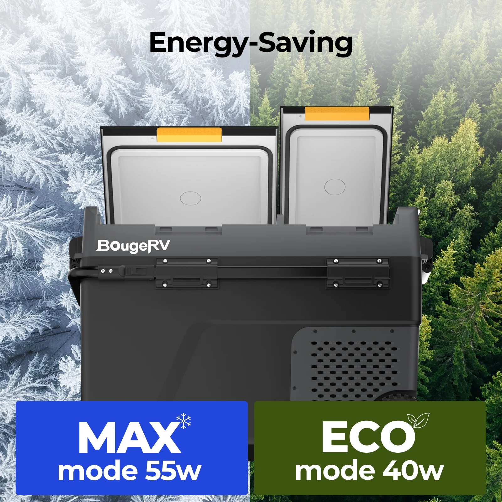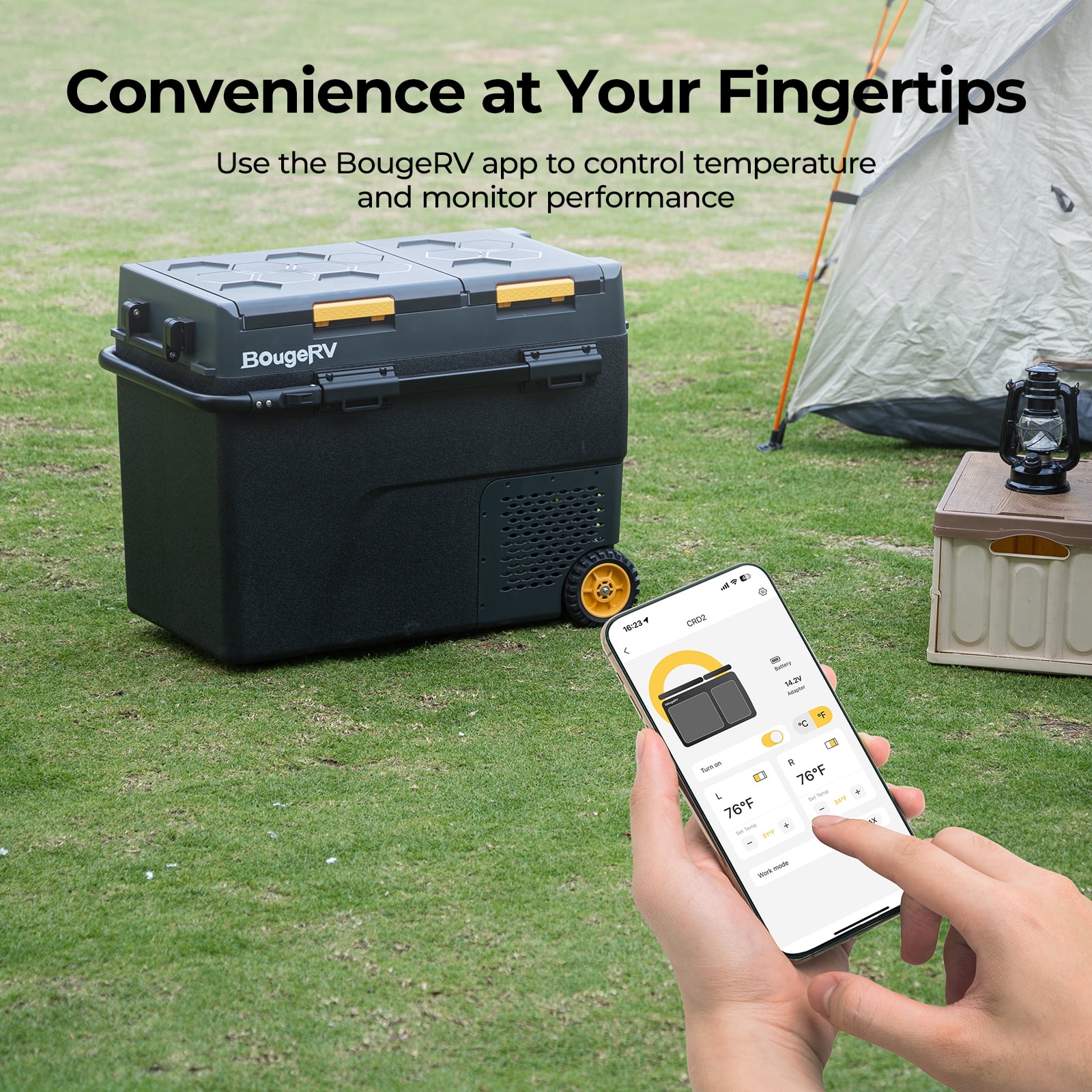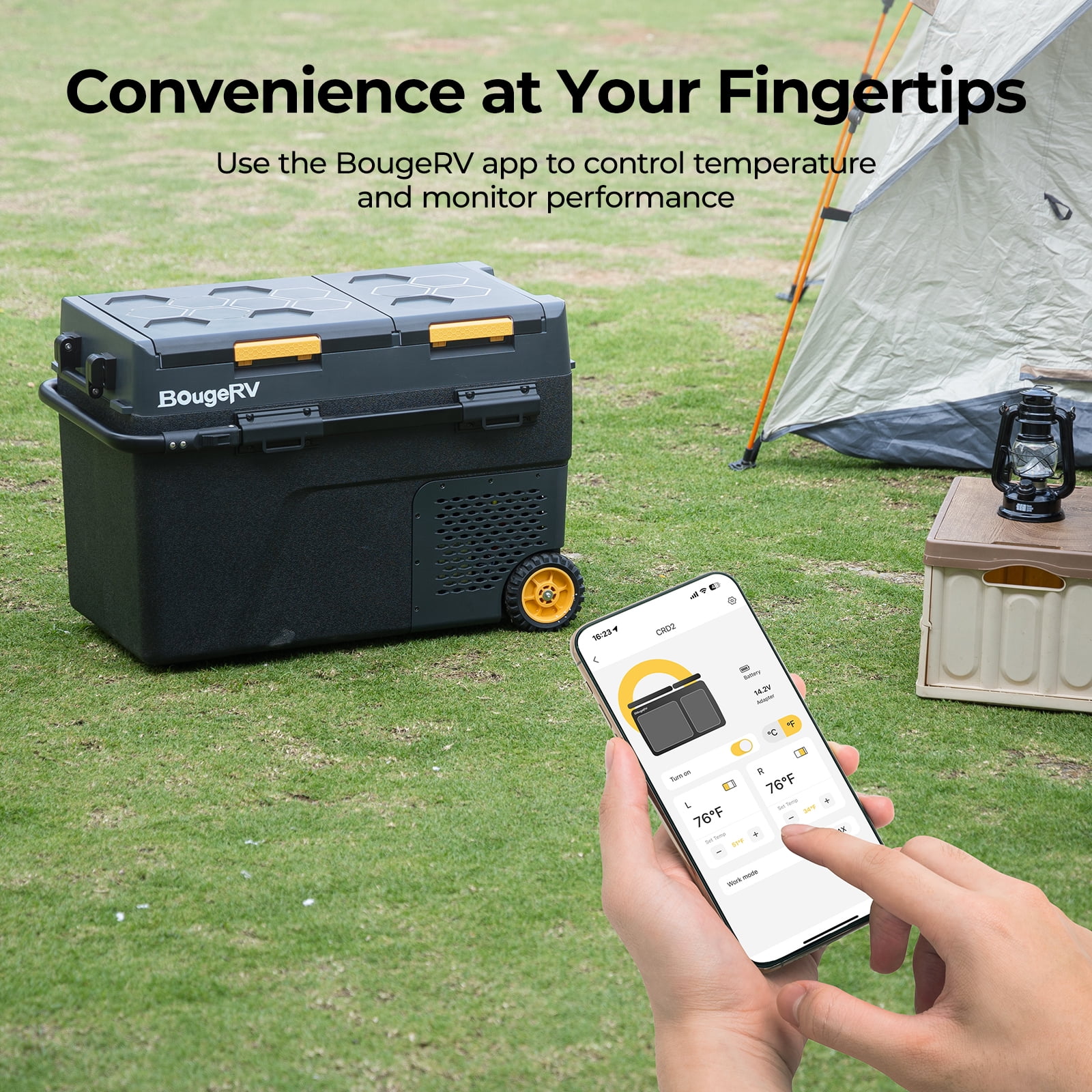 You can control the temperature, set the mode, and turn on/off this dual-zone car fridge conveniently and accurately via the mobile APP. You can check the temperature and the status of the device at any time. Control two compartments separately according to different needs. The temperature range of both zones is -4℉ to 68℉.
