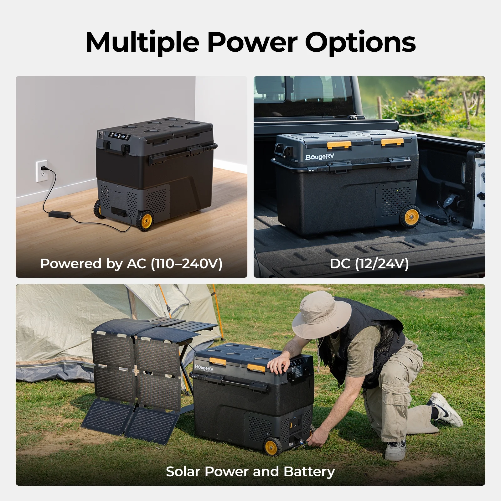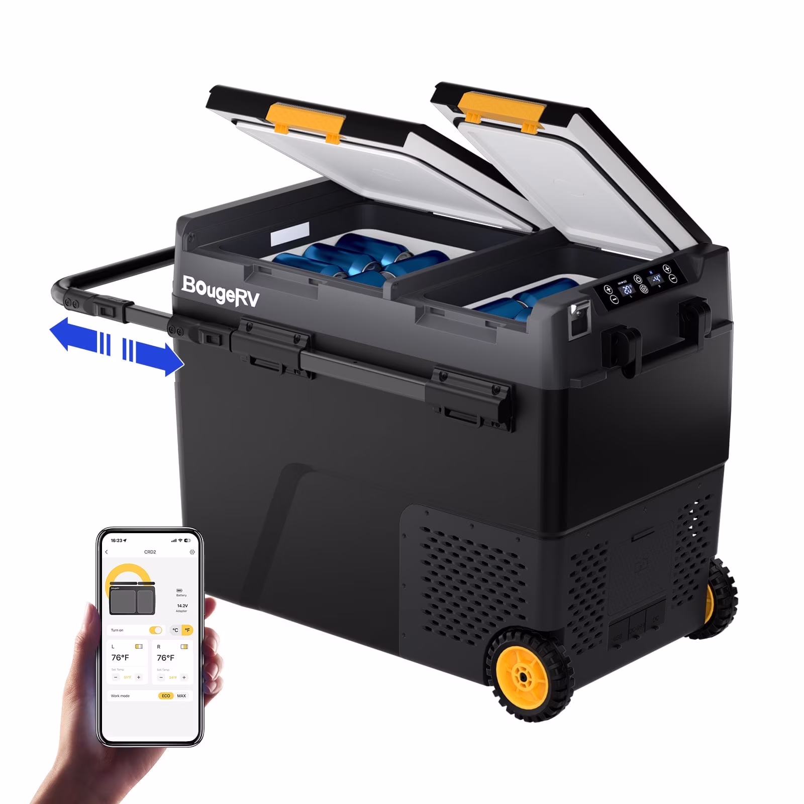 Bougerv Car Refrigerator 61QT Dual Zone, 12 Volt Portable Freezer Fridge with Wheels, APP Control Compressor Refrigerator 12V/24V DC for RV Truck Vehicle Boat Outdoor Travel Camping Trip Use