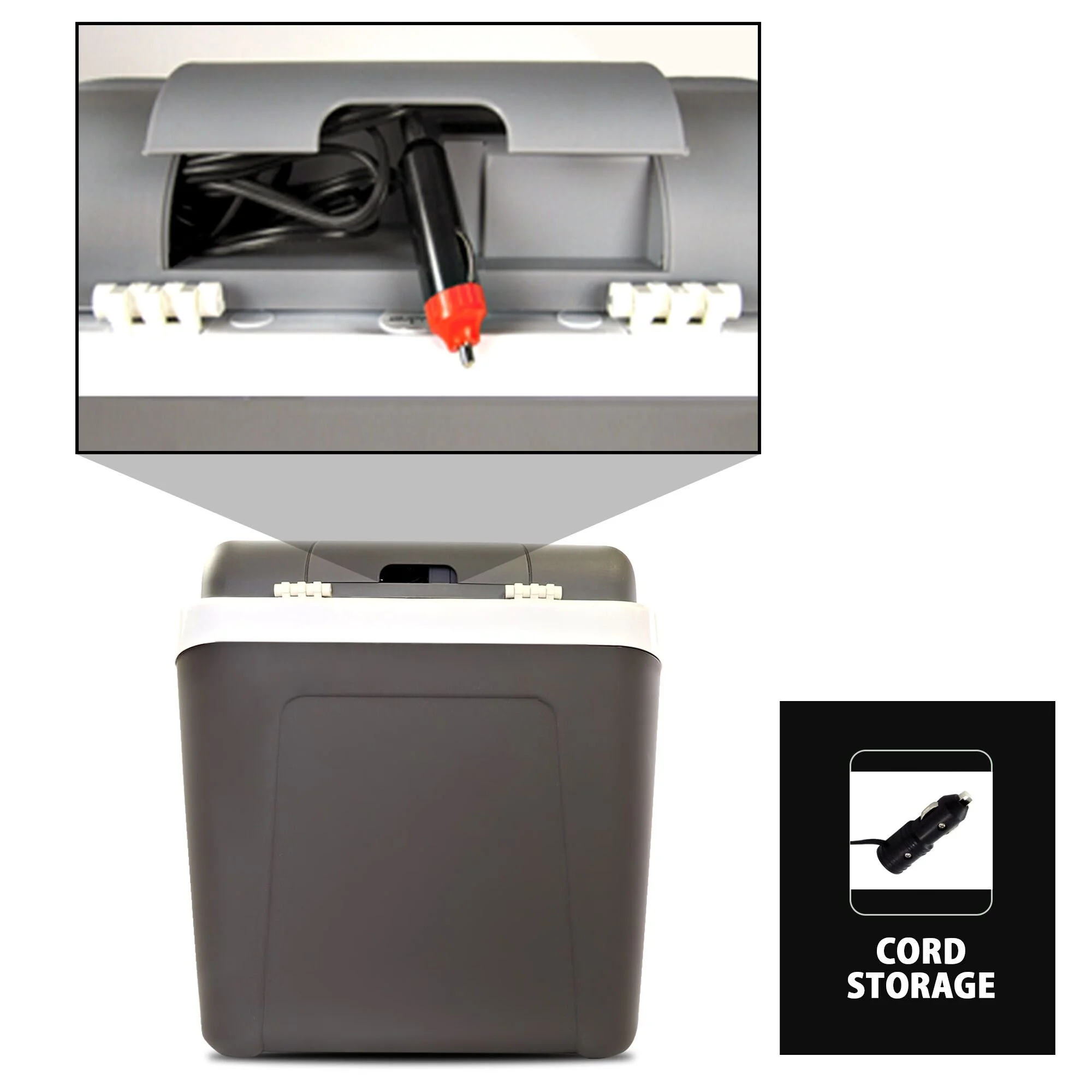 - Portable Design: Compact footprint with a durable handle that locks into place and built-in cord storage compartment for easy transport. Versatile Use: Ideal for day trips, picnics, and festivals, keeping drinks cold and transporting perishable items safely.