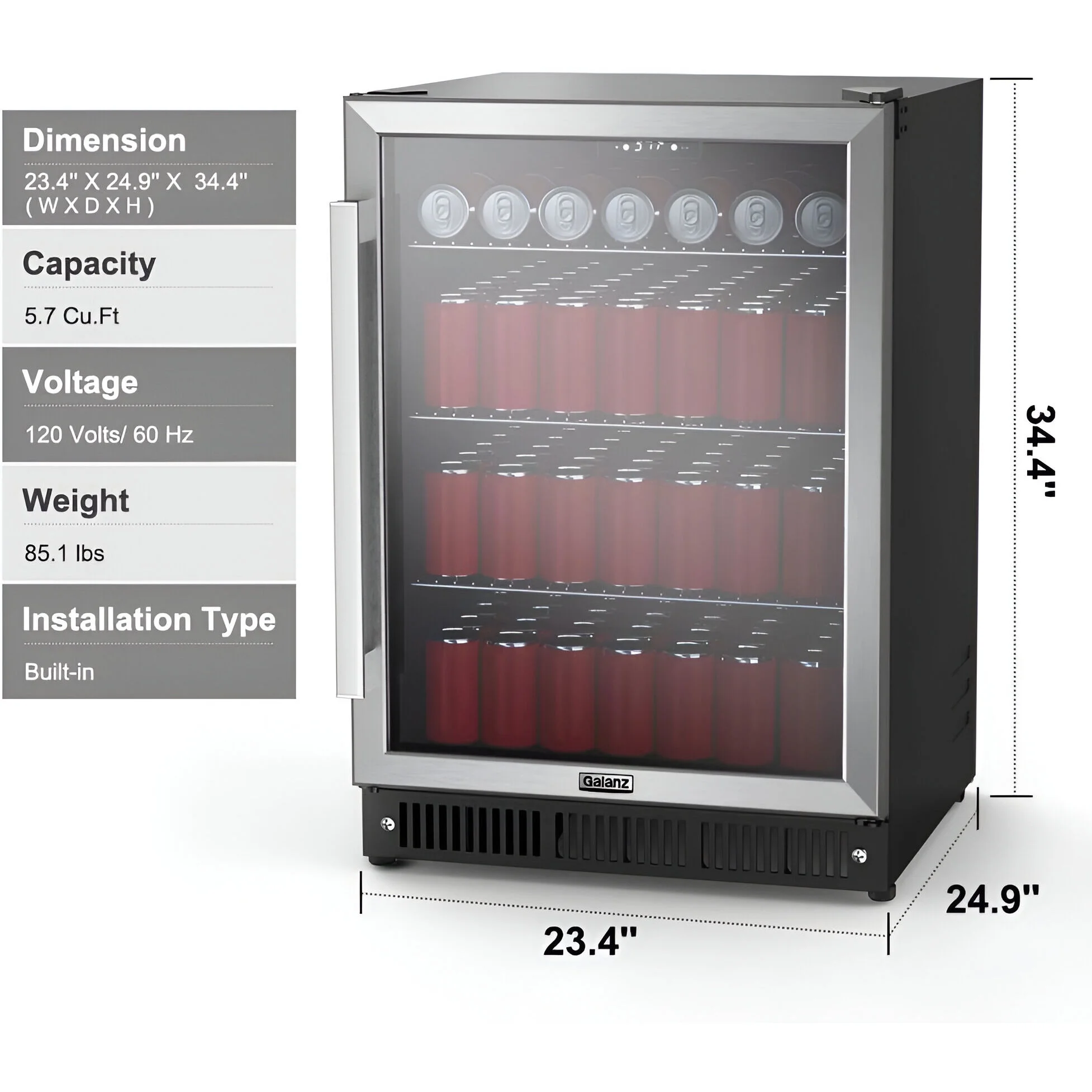 - 167-can built-in beverage cooler