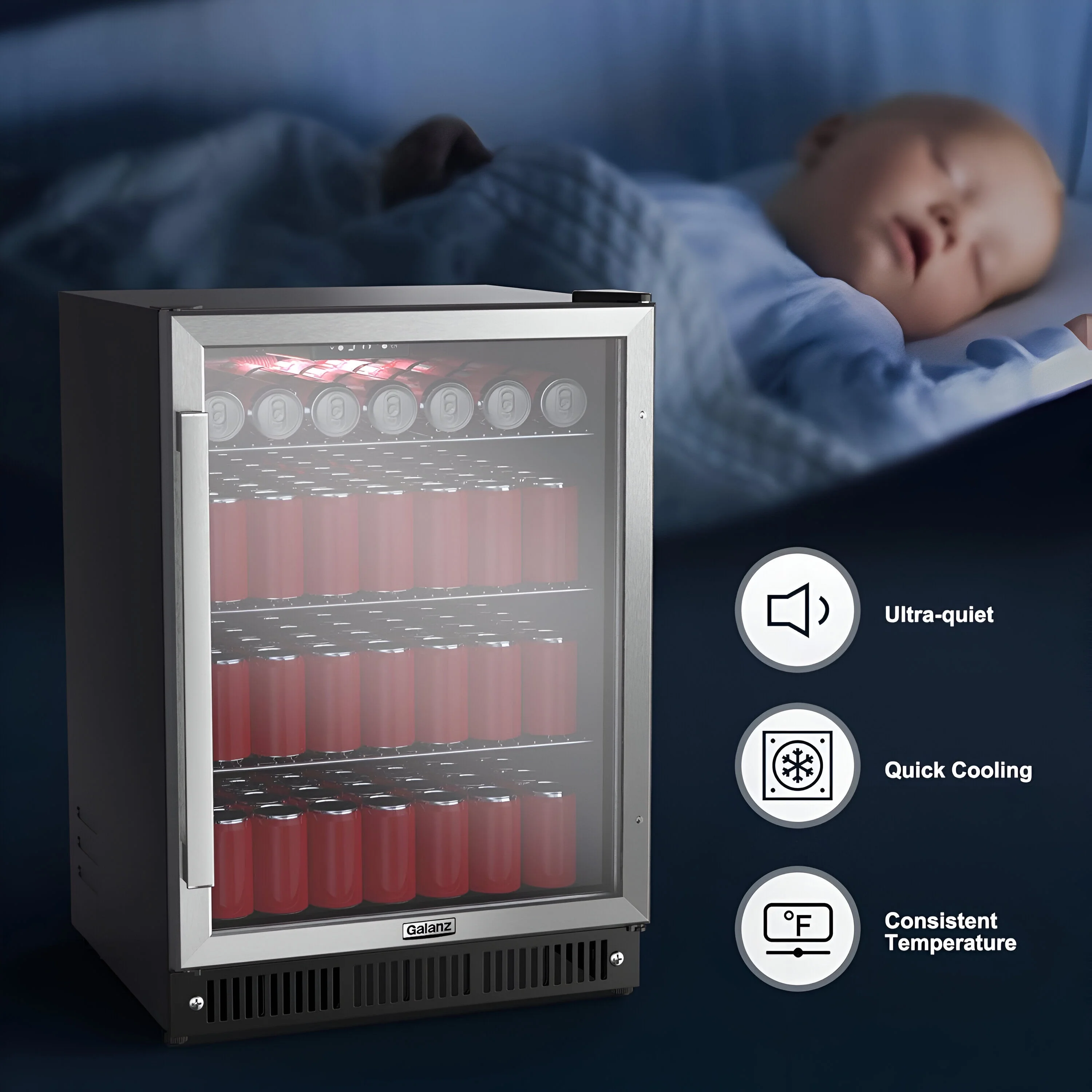 - Insulated glass door maintains consistent temperatures