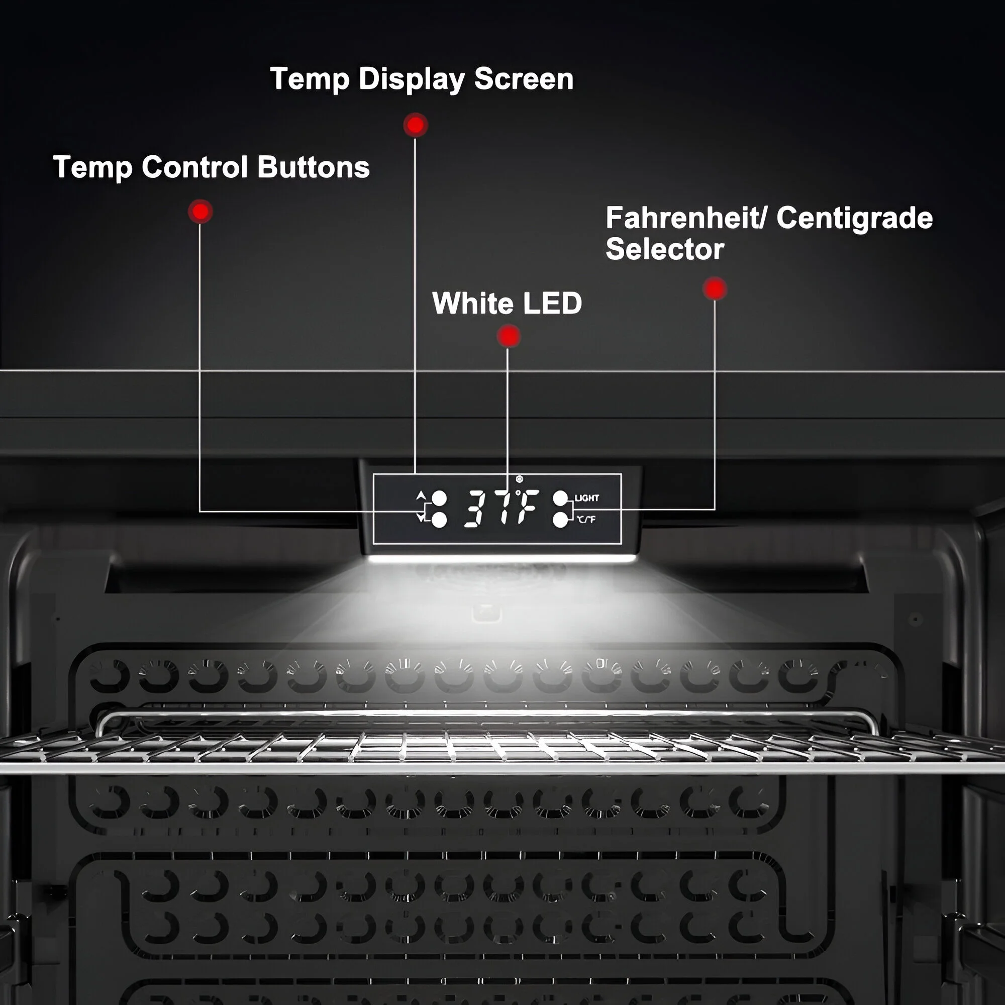 - Digital temperature controls allow you to adjust between 37F and 64F