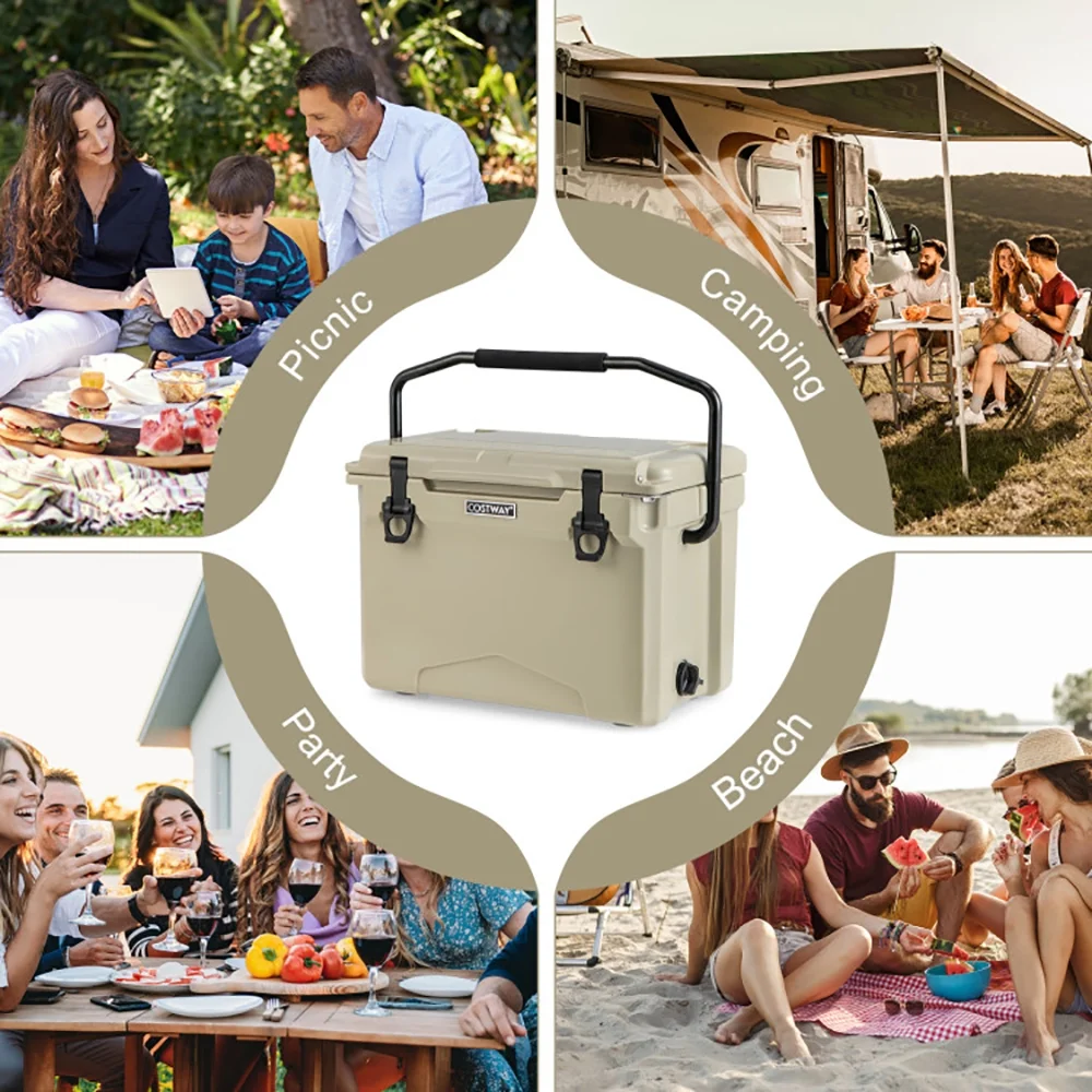 - Easy Movement and Drainage: Equipped with a smooth aluminum handle, the hard camping cooler allows you to easily move it anywhere you desire. And the soft and anti-slip foam offers a comfortable grip. Additionally, the quick drainage system ensures fast draining and cleanup for easy use.