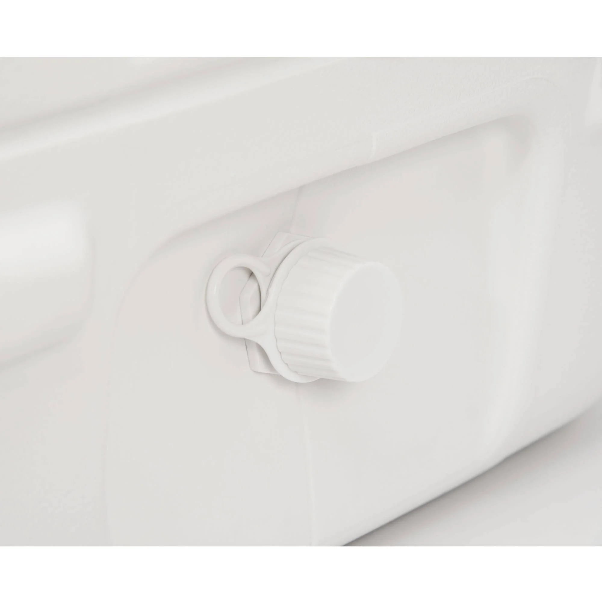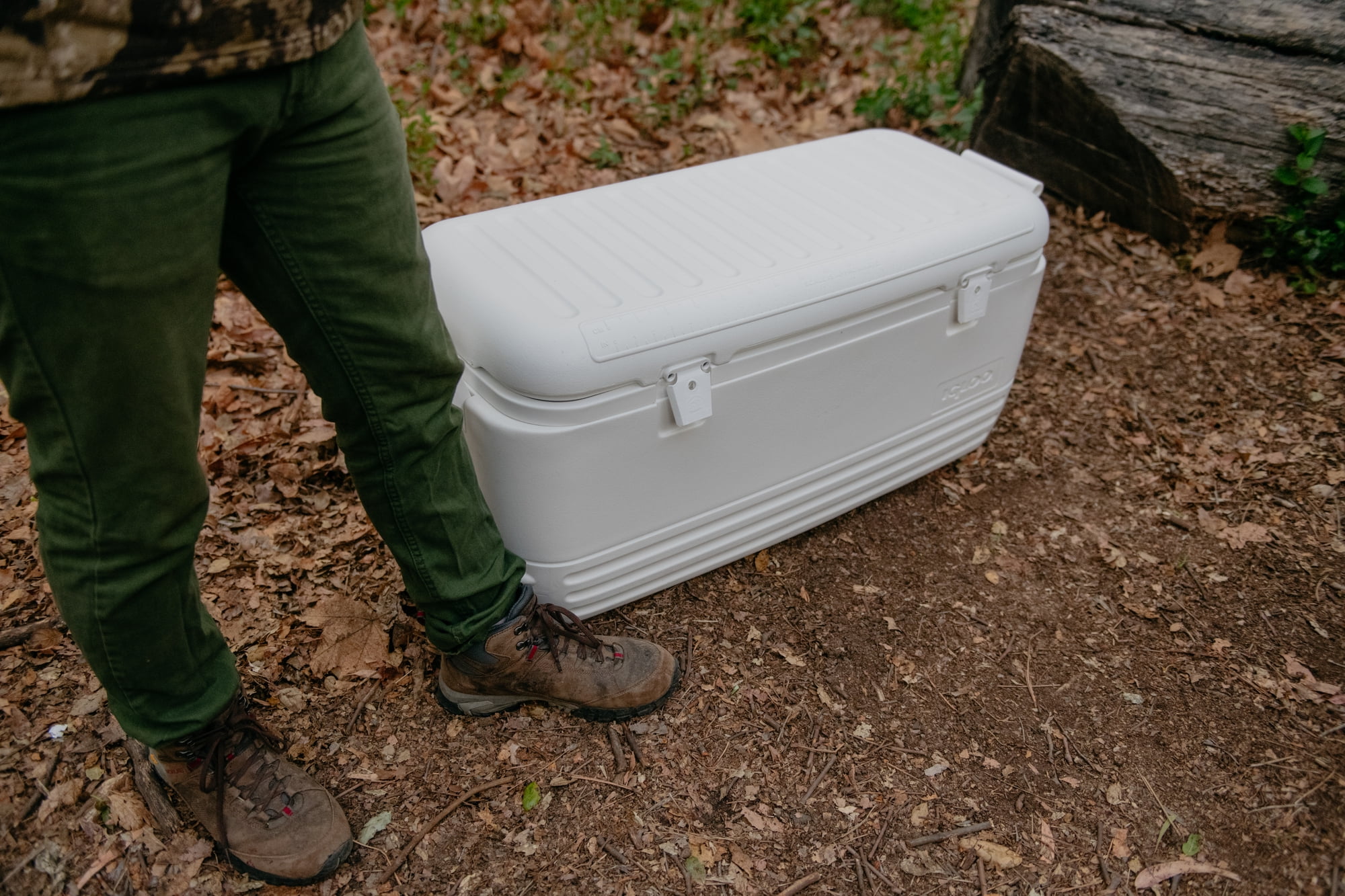 From the industry leader in extended cooling performance, comes this Igloo Polar Cooler in white. Its Ultratherm insulation in the body and lid provides maximum cooling, so your drinks will stay at the right temperature while it holds ice for up to five days. This Igloo 120-Quart cooler is ideal for camping, extended trips, going to the beach, all day fun at the ballpark or backyard parties. It features dual, snap-fit latches that are child-safe to secure the lid tightly and a tie-down loop offers additional security. There's a liner that protects the interior of this Igloo Polar Cooler from odors and staining. A threaded drain plug makes it easy to fill it up with water by simply attaching a garden hose. The lid guard even has UV inhibitors to protect from damage caused by the sun. All together, it can hold up to 188 -2 oz cans. This camping gear from Igloo is just what you need to stay hydrated and refreshed while having a wonderful time outdoors.