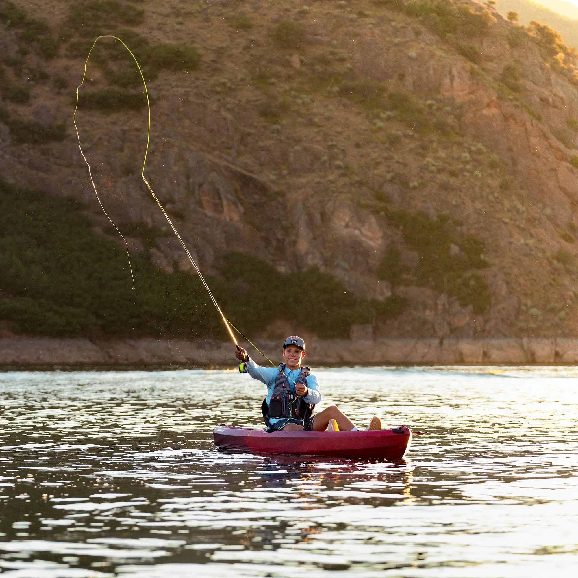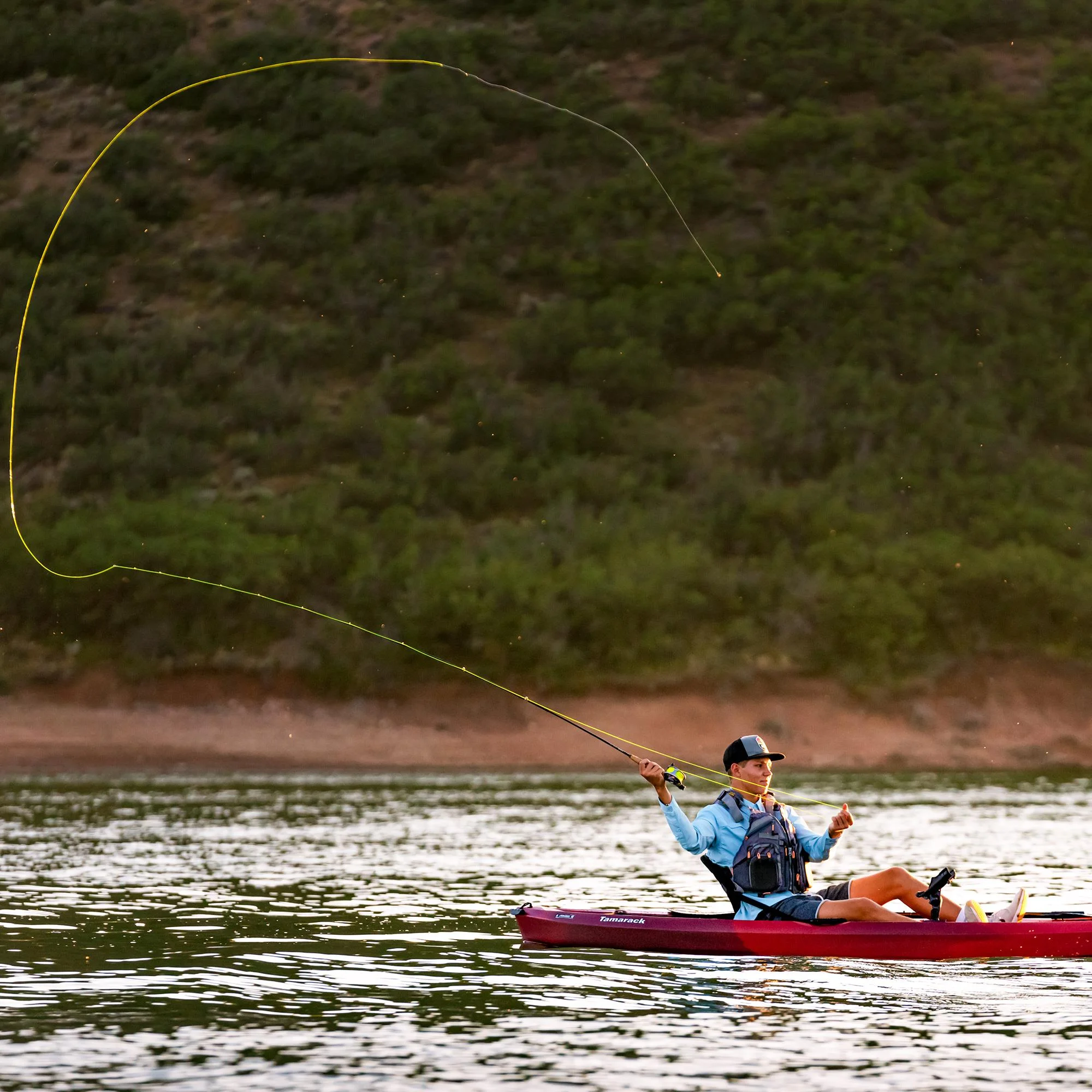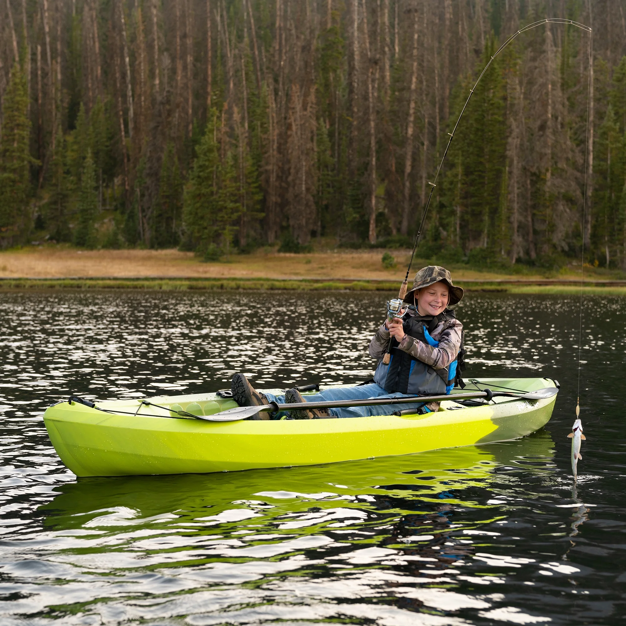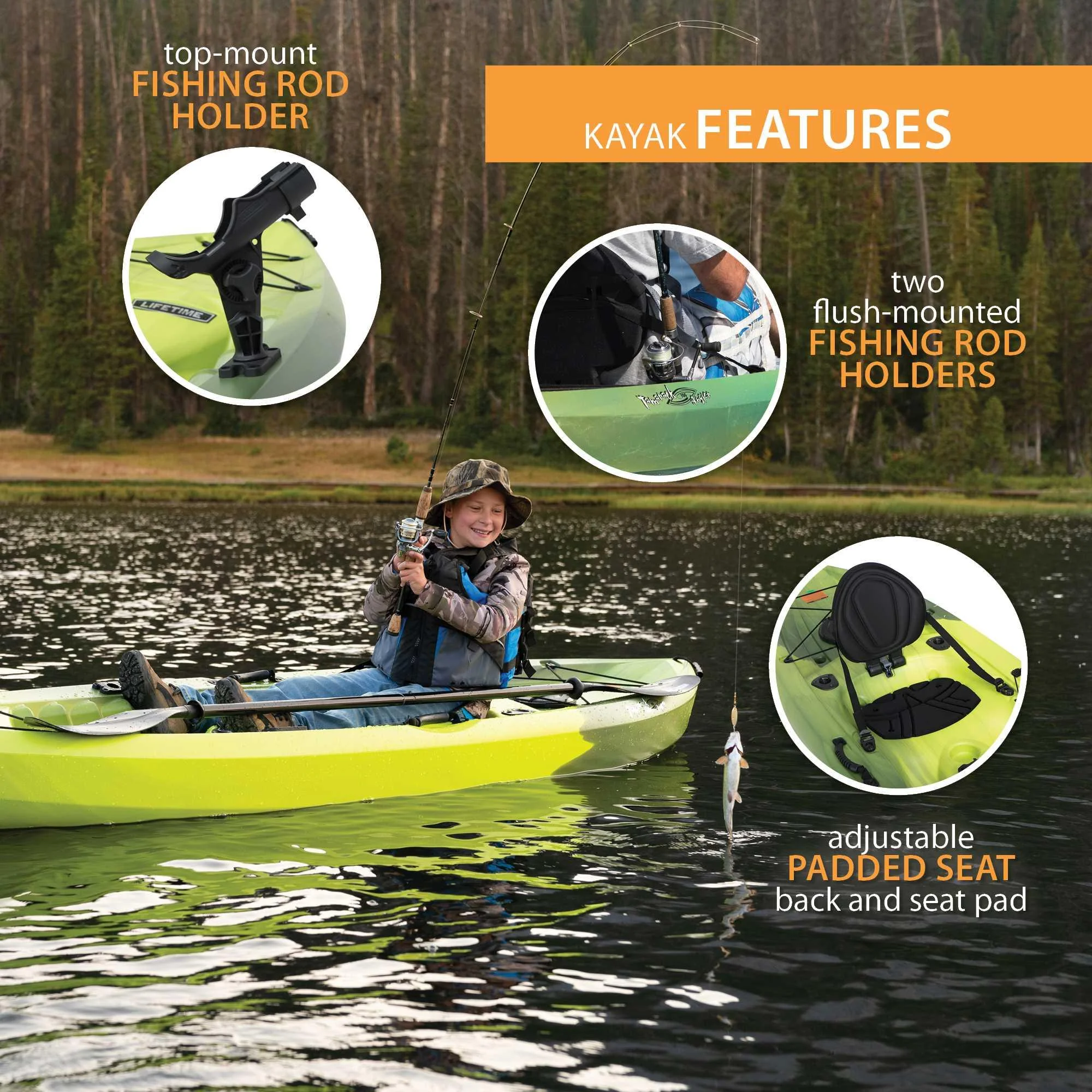 Take some time to relax on the water with family and friends. The Lifetime Tamarack™ Angler is a sit-on-top fishing kayak that has a comfortable padded seat and backrest for long fishing adventures. Designed for extreme safety and stability, the Tamarack™ Angler has a stable flat bottom with deep tracking channels and stability chine rails. The kayak features durable construction that is UV-protected, and impact resistant. With fishing rod holders, shock cord straps, multiple footrest positions, and a storage hatch, this kayak has plenty of extras to enhance your paddling and fishing experience.