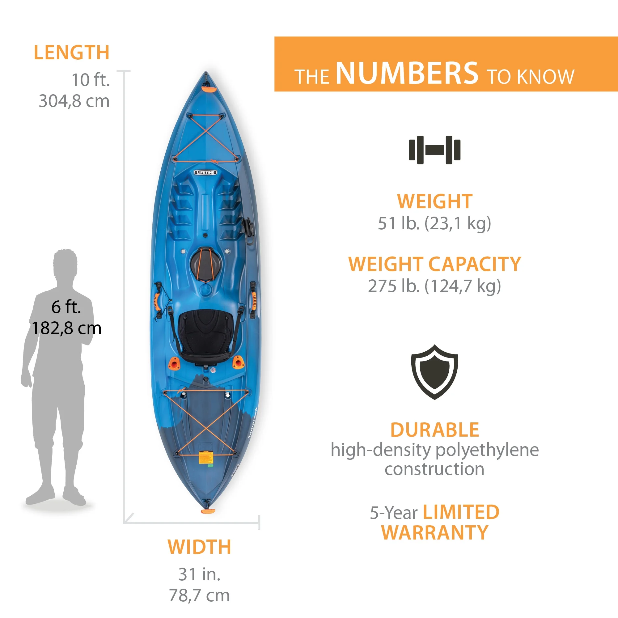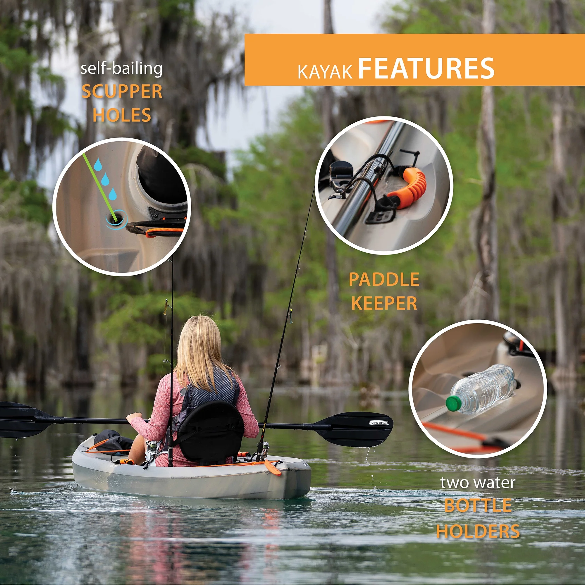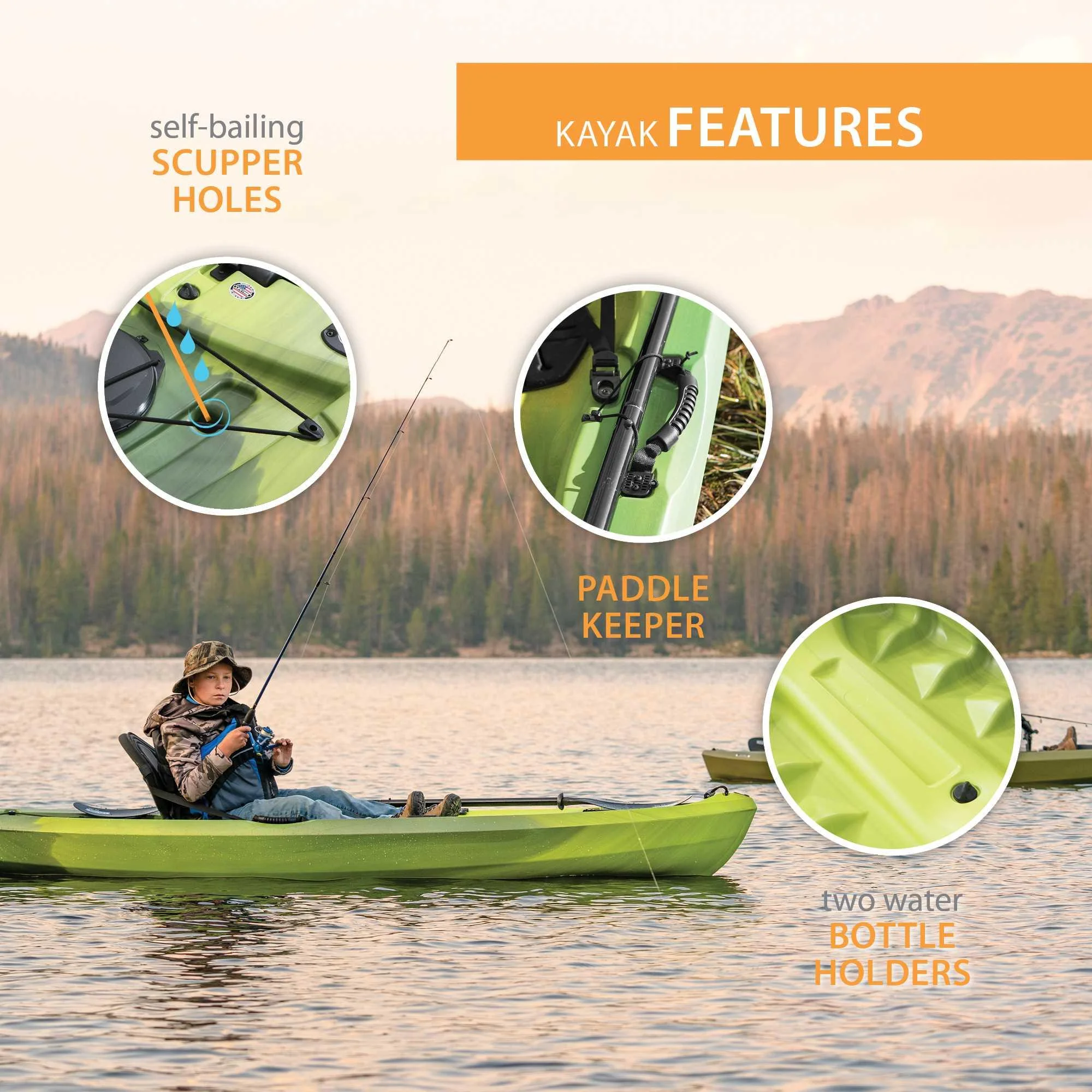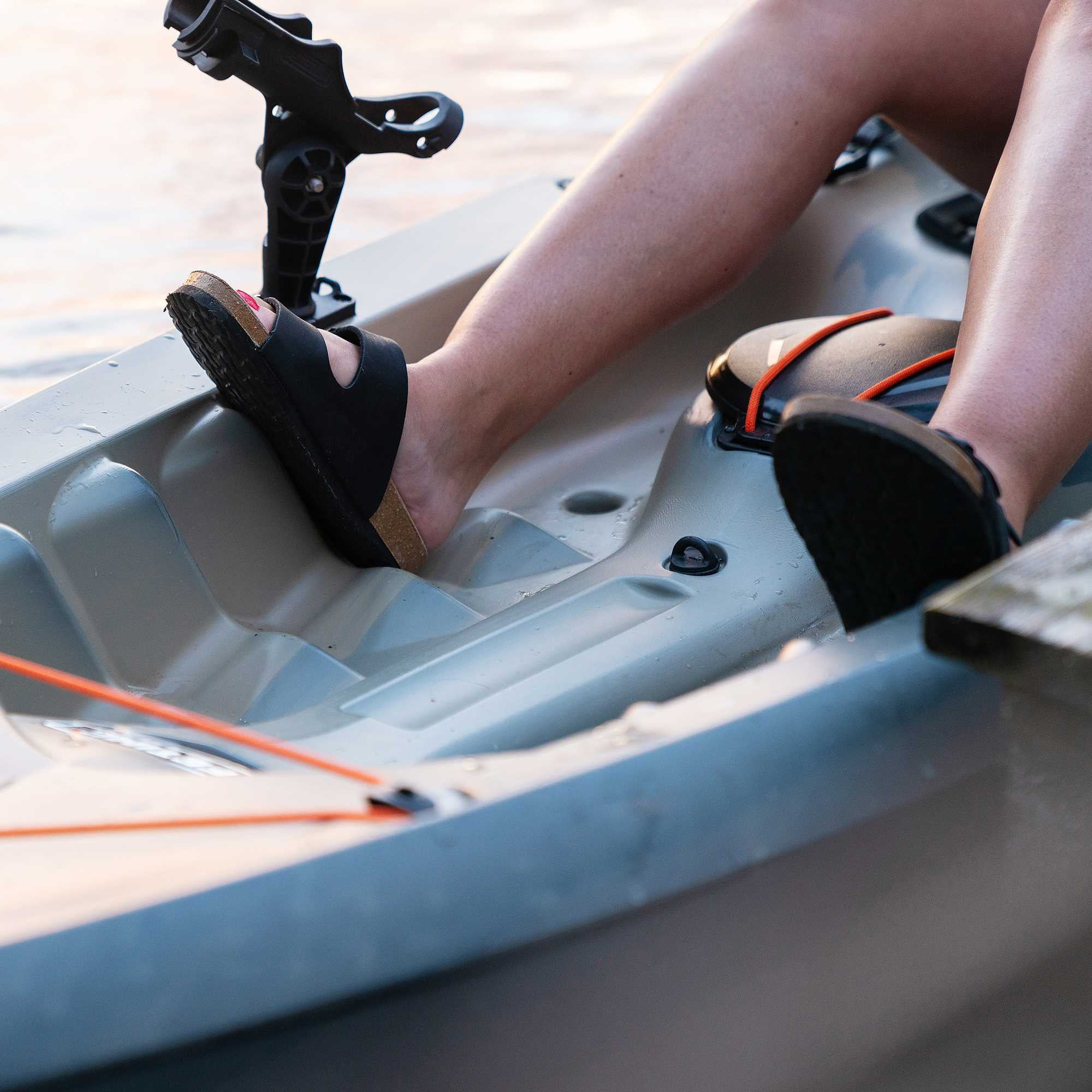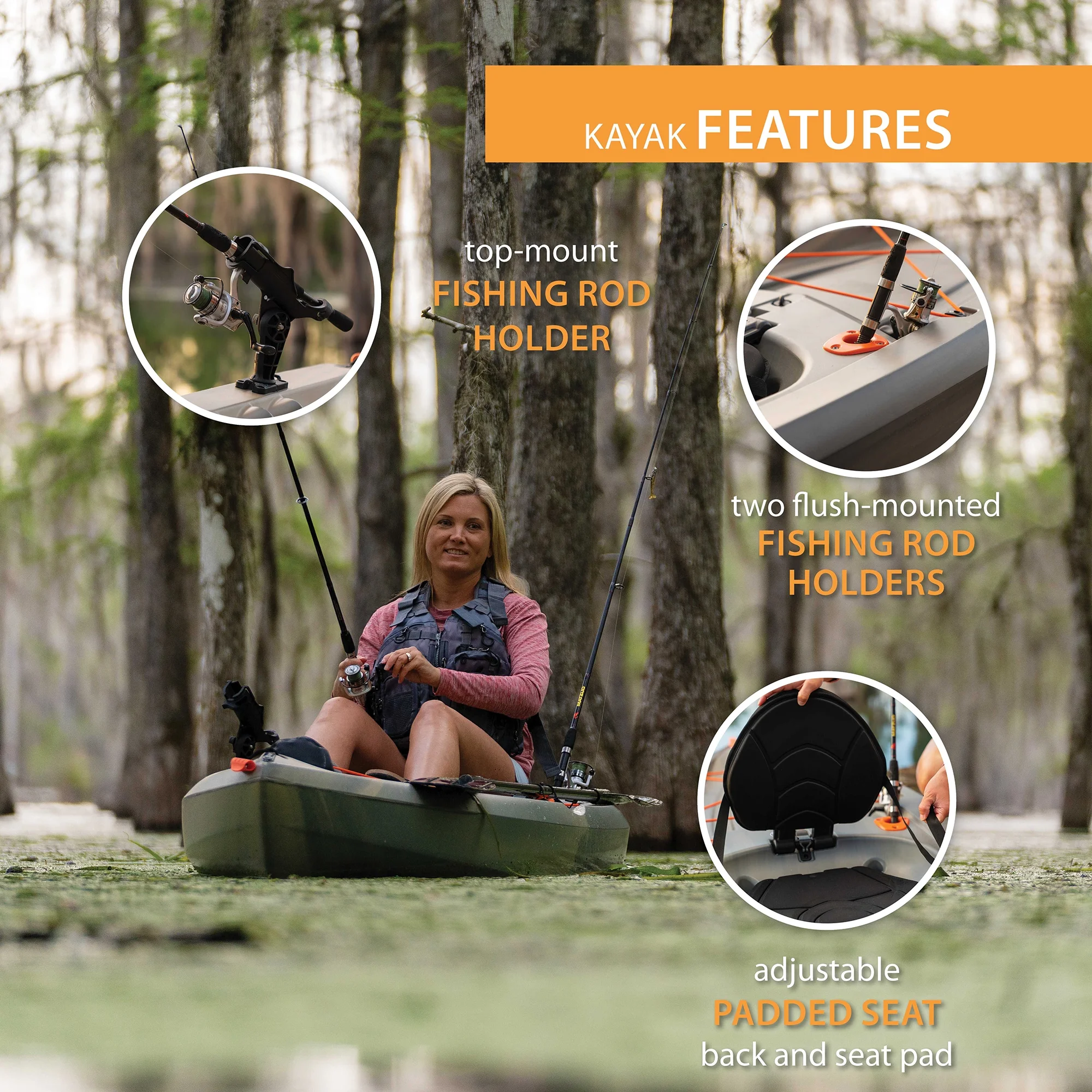 Take some time to relax on the water with family and friends. The Lifetime Tamarack™ Angler is a sit-on-top fishing kayak that has a comfortable padded seat and backrest for long fishing adventures. Designed for extreme safety and stability, the Tamarack™ Angler has a stable flat bottom with deep tracking channels and stability chine rails. The kayak features durable construction that is UV-protected, and impact resistant. With fishing rod holders, shock cord straps, multiple footrest positions, and a storage hatch, this kayak has plenty of extras to enhance your paddling and fishing experience.