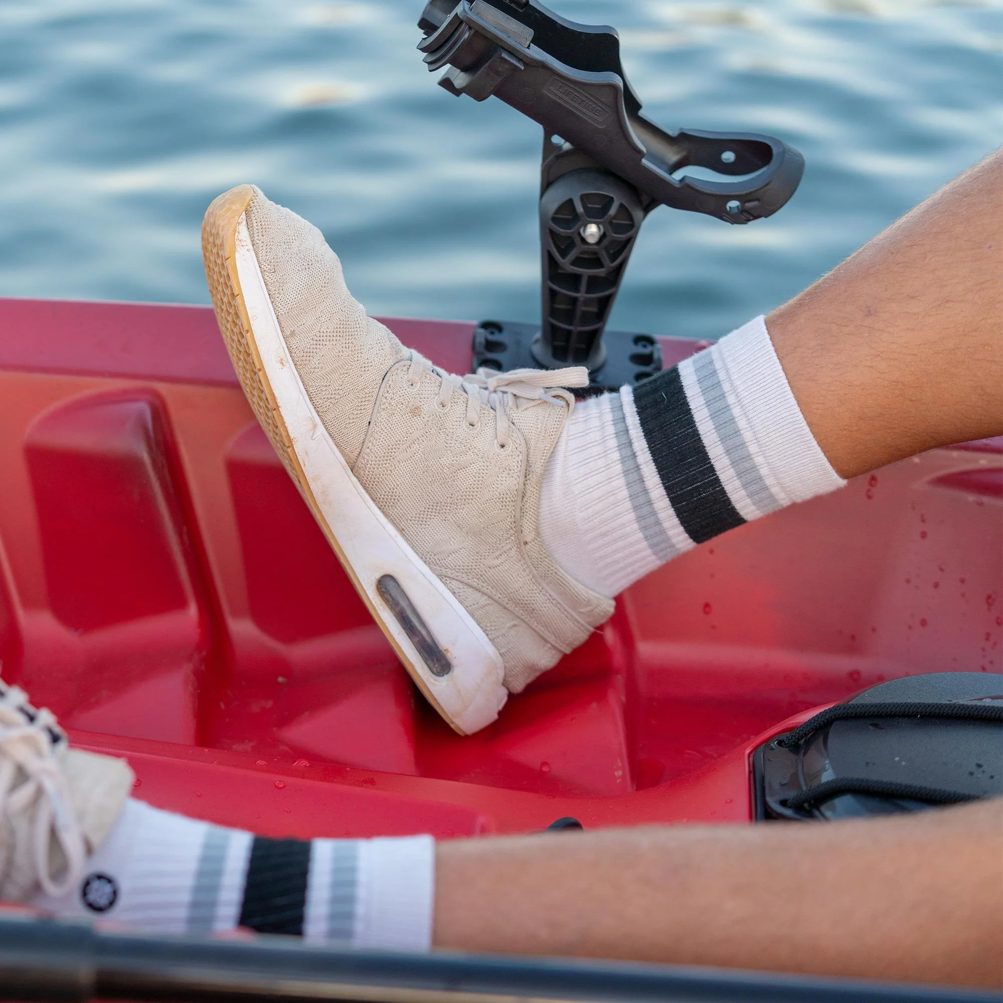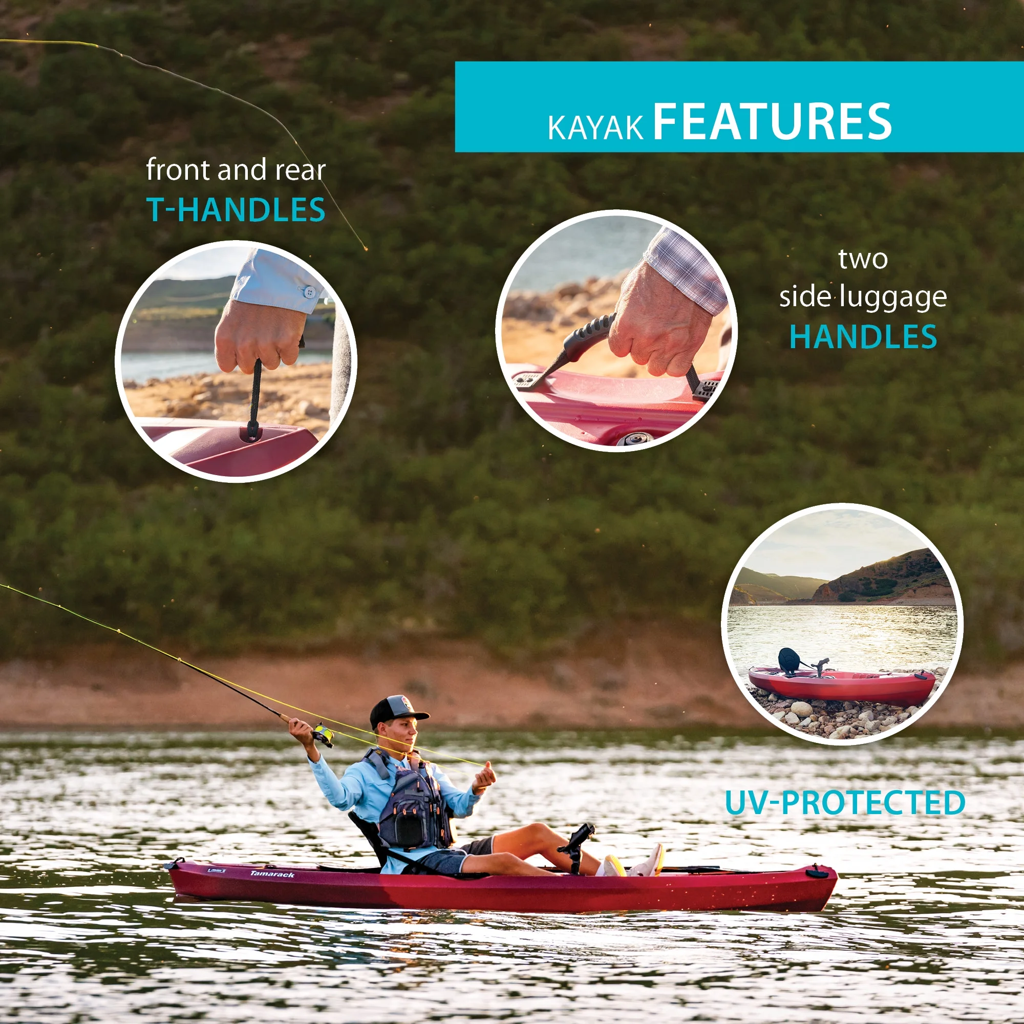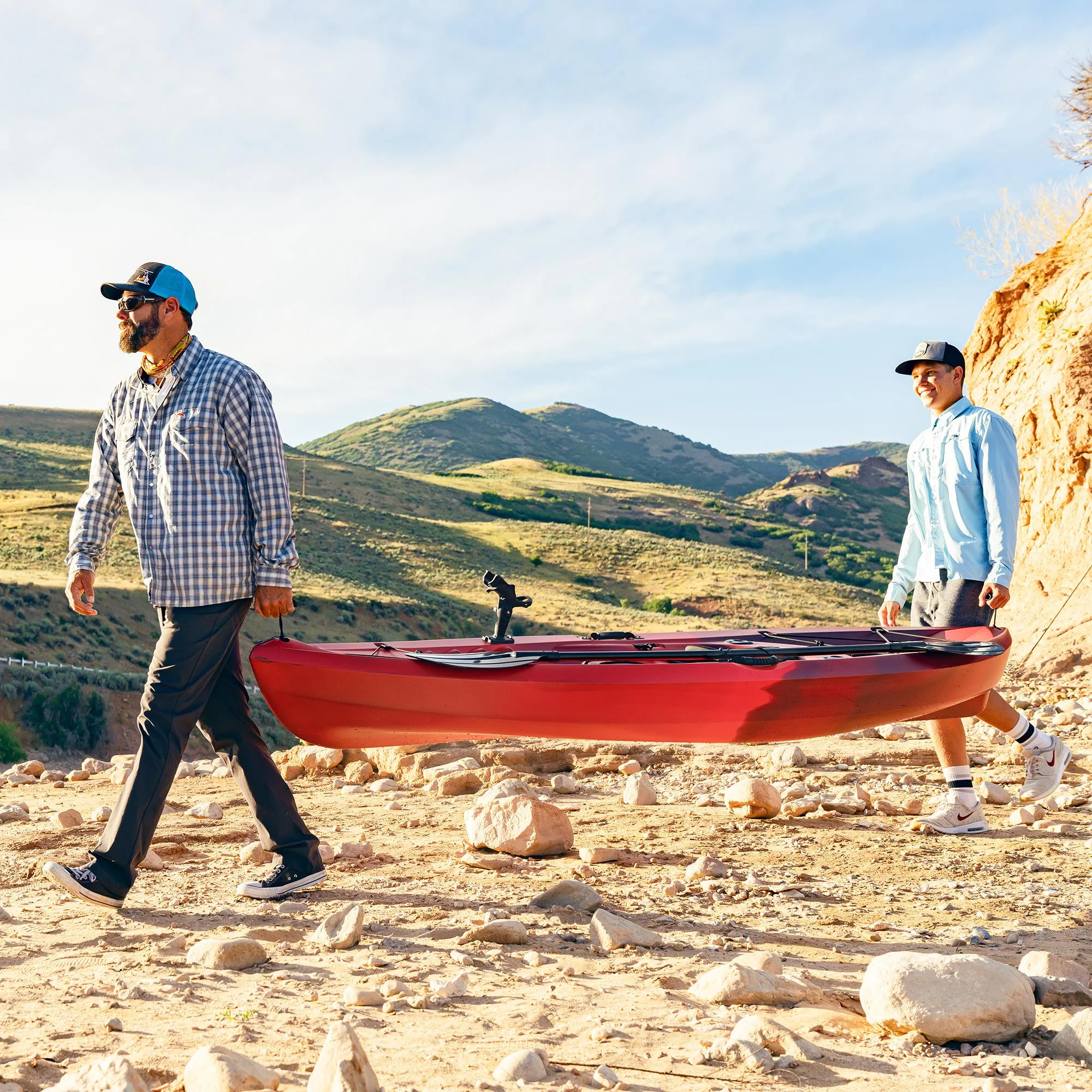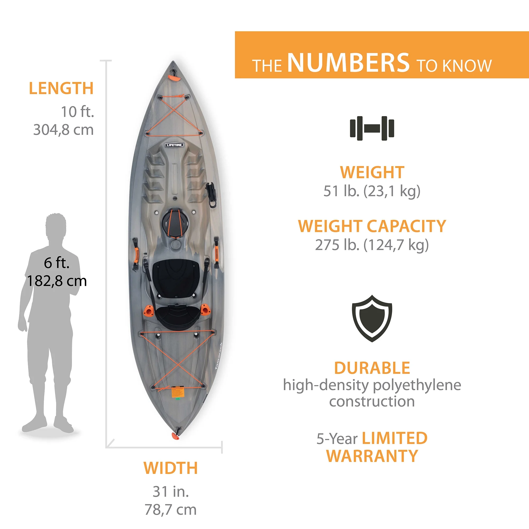 Take some time to relax on the water with family and friends. The Lifetime Tamarack™ Angler is a sit-on-top fishing kayak that has a comfortable padded seat and backrest for long fishing adventures. Designed for extreme safety and stability, the Tamarack™ Angler has a stable flat bottom with deep tracking channels and stability chine rails. The kayak features durable construction that is UV-protected, and impact resistant. With fishing rod holders, shock cord straps, multiple footrest positions, and a storage hatch, this kayak has plenty of extras to enhance your paddling and fishing experience.