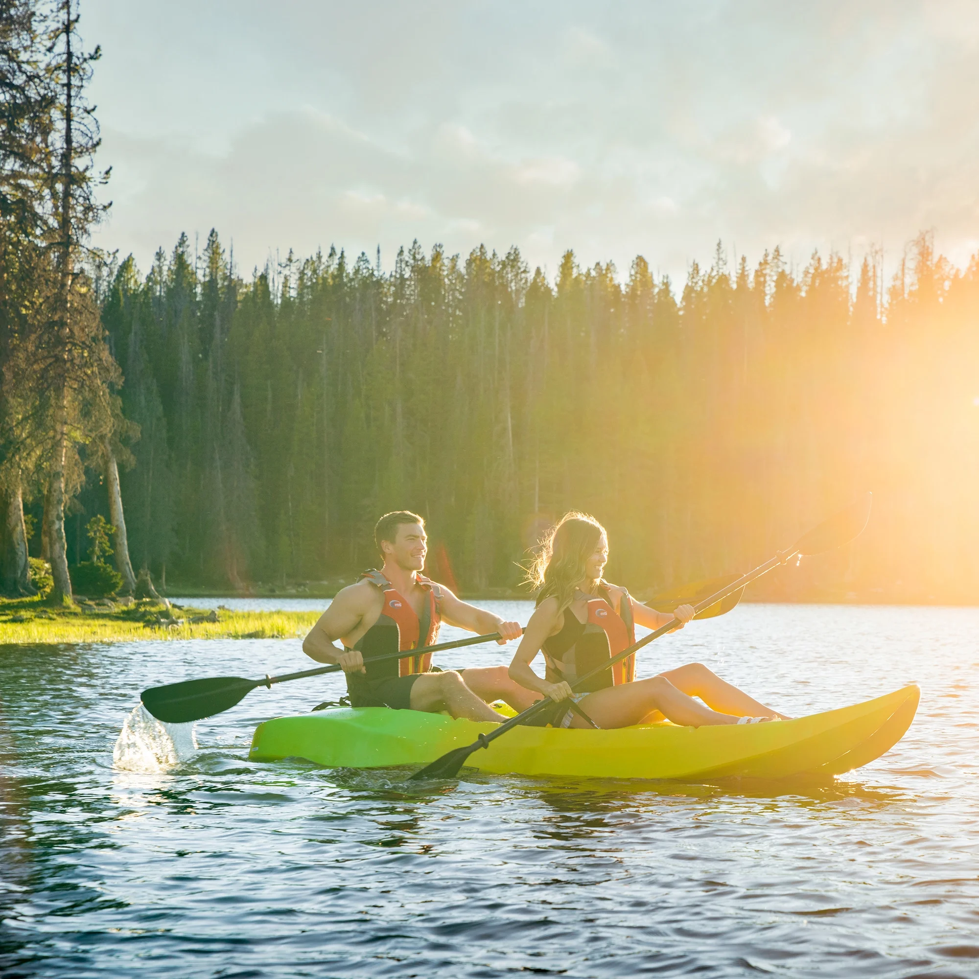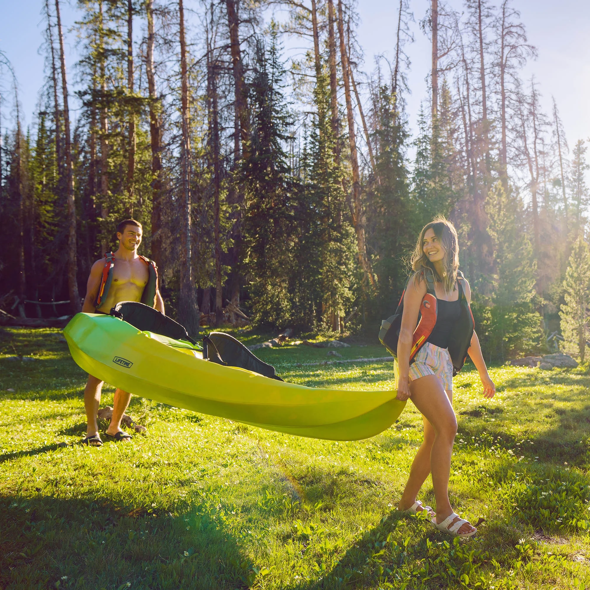 A recreational kayak is your getaway to the great outdoors. The Lifetime manta tandem kayak is the perfect kayak for two to enjoy a calm ocean bay, tranquil lake, or slow-moving river. The kayak is designed for ultimate stability making it great for teaching beginning paddlers. With two adjustable backrests and multiple footrest positions, you can optimize your comfort when on the water. The front of the boat includes bungee cords to hold loose items. The 2 included paddles let you enjoy the water right out of the box. Enjoy a day outside with family and friends with the Lifetime manta tandem kayak.