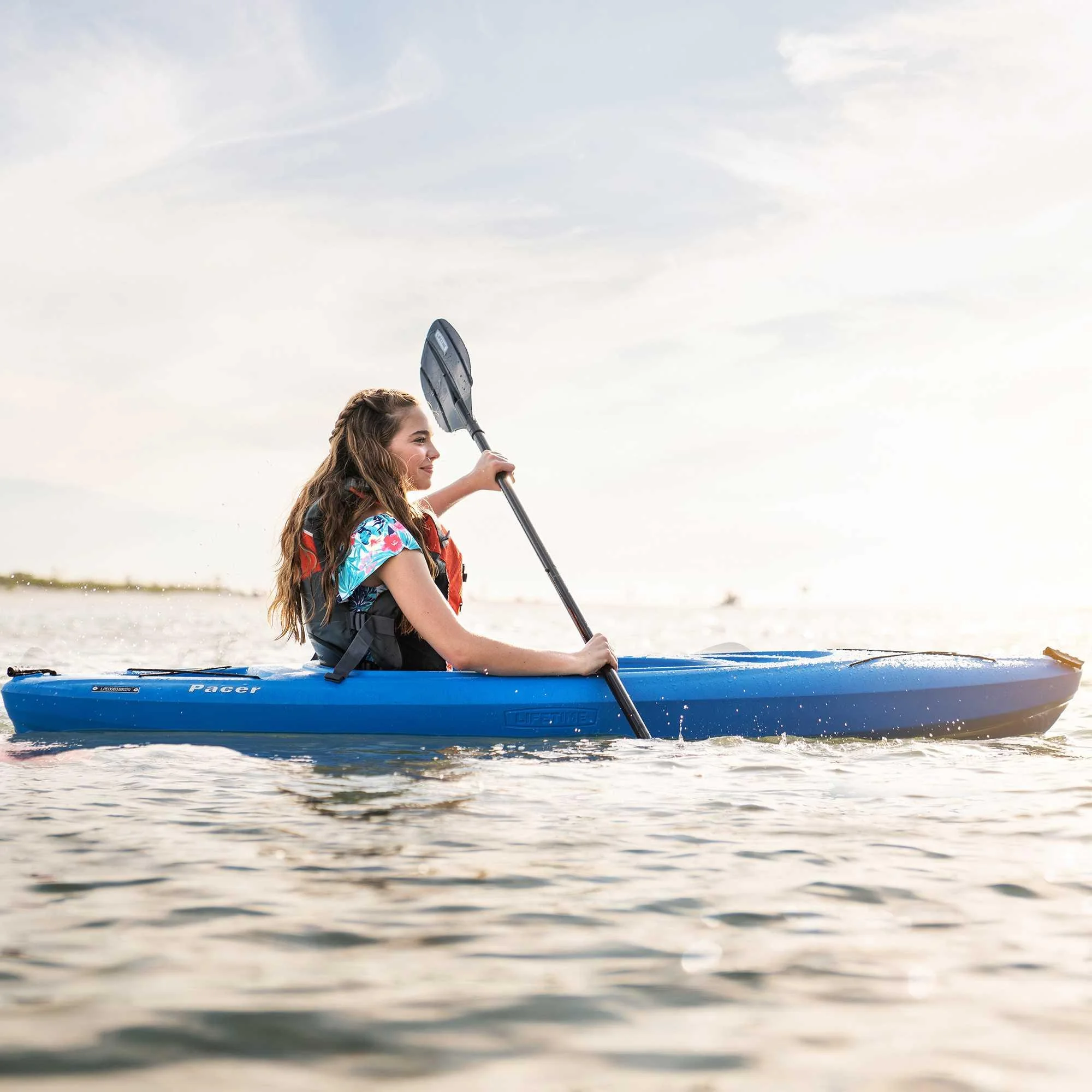 Find your new adventure and spend time exploring calm ocean bays, scenic lakes, and tranquil rivers. The Lifetime Pacer is the perfect entry-level kayak to get teens out on the water. With the pacer, you get the ideal blend of stability, comfort, and performance when beginning your kayaking journey. It is suitable for beginners but performance-driven enough for more intermediate paddlers. This kayak is designed for tracking, making it easy to maintain your course on the water. The adjustable seating allows you to find the most comfortable seating position. Tank well storage gives you a place to store belongings. Front and rear t-handles let you easily transport your kayak to and from the water. With the Lifetime pacer, you'll be gliding through the water in no time.