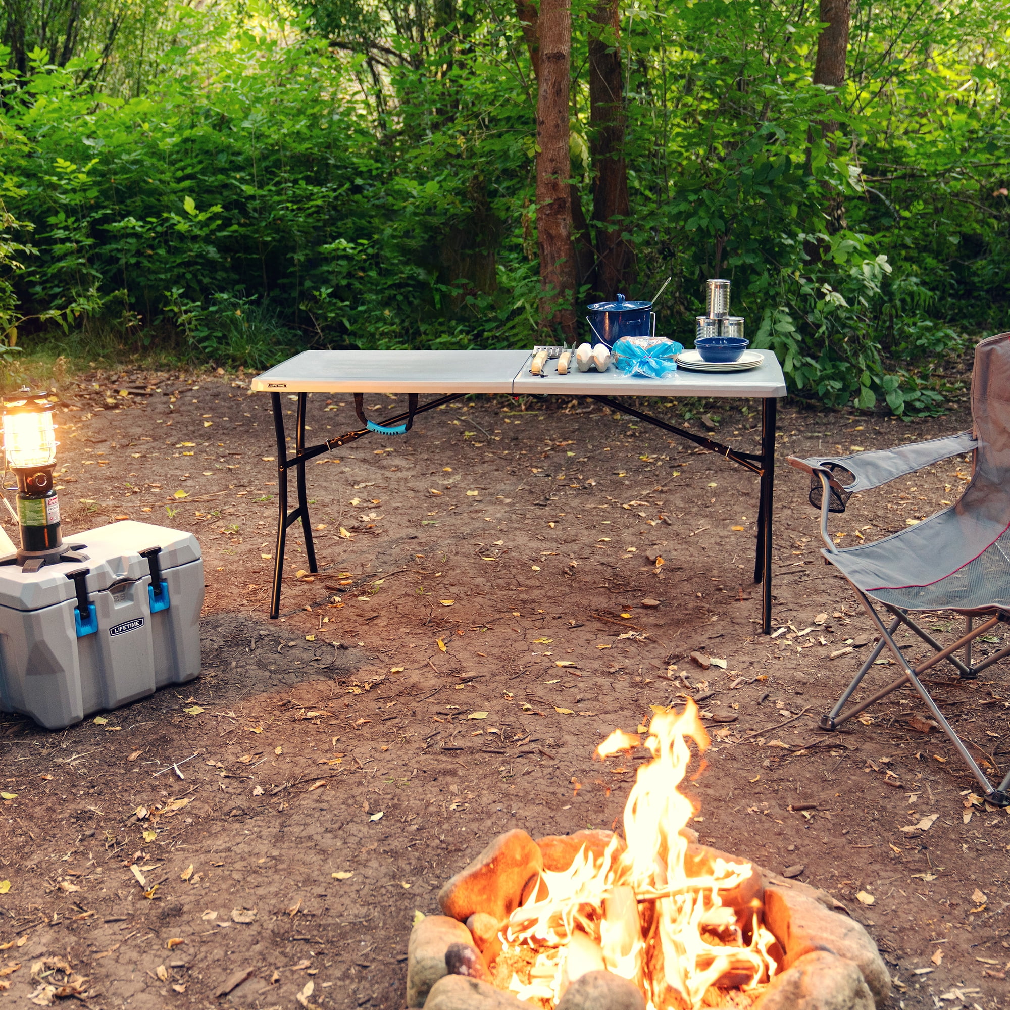 - Lifetime 5 Foot Rectangle Fold-in-Half Table, Indoor/Outdoor Residential, Boulder Gray (80939):