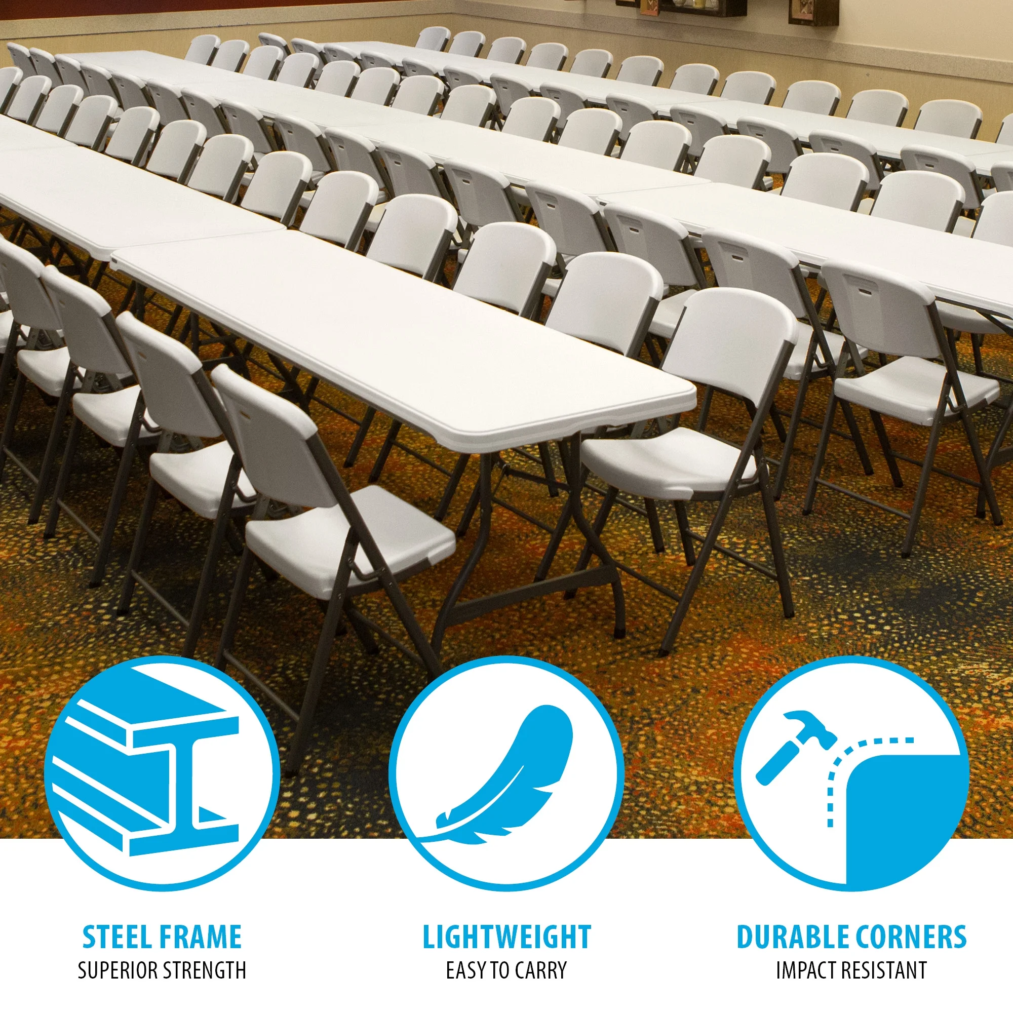 - Lifetime (12) 8-Foot Stacking Tables and (96) Chairs Combo (Commercial)