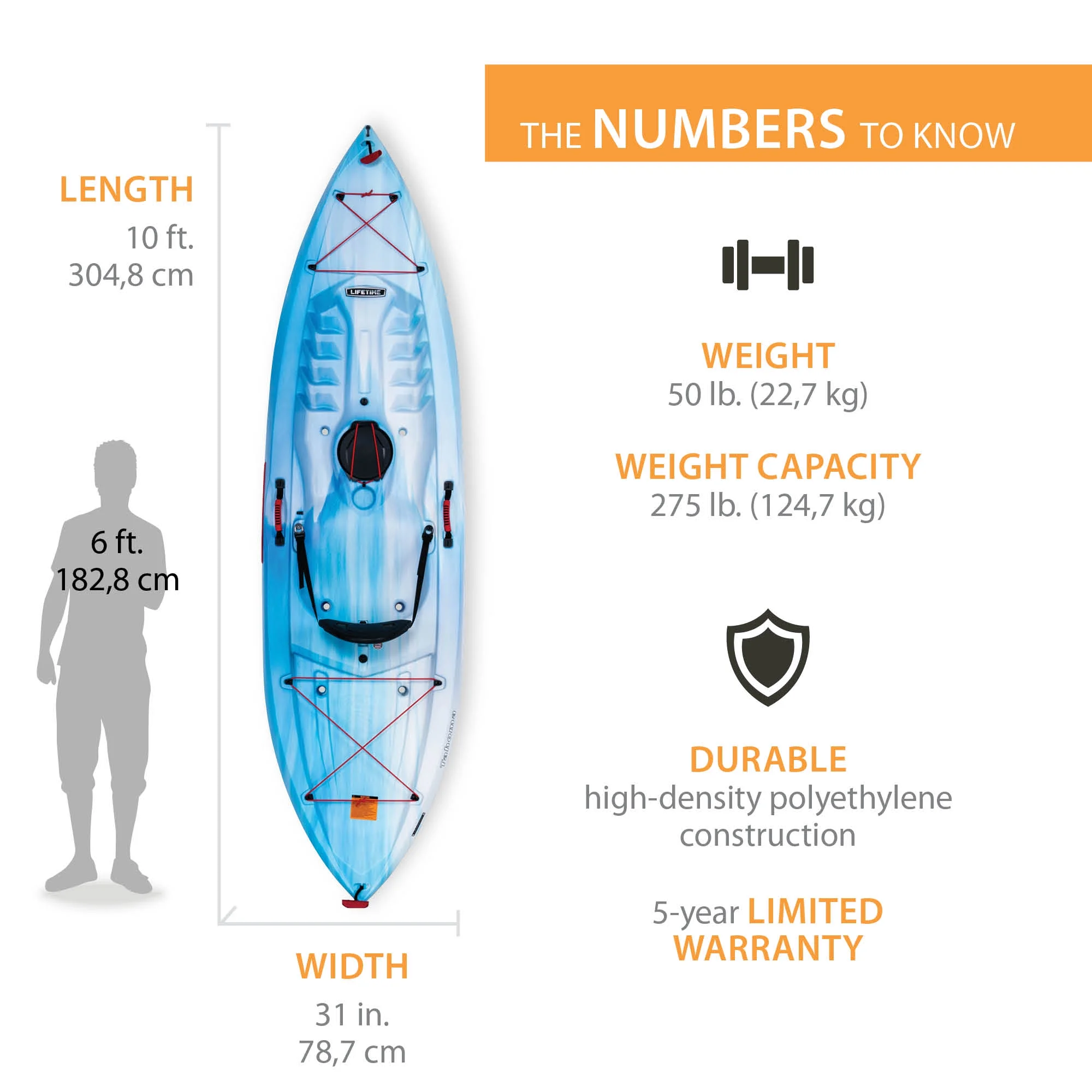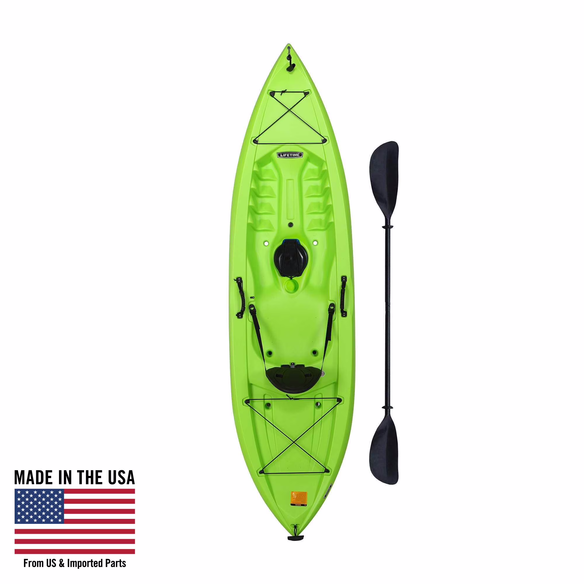 The Lifetime Tahoma Kayak is a sit-on-top kayak designed to take you on new adventures with your family and friends. It offers a build that is perfect for entry level kayakers but performance driven enough for those with intermediate experience. The adjustable seat back and multiple footrest positions allow you to optimize your comfort. The chine rails give you excellent stability while the deep hull channels give you great tracking performance to easily maintain your course on the water. You have plenty of storage space for your gear in the center hatch and front and rear bungees. The UV-protected and impact resistant construction gives you strength and durability that allows you to get the most out of your kayak. The front and rear t-handles let you easily get your kayak to the water for an exciting day at the lake, river or ocean. With the Lifetime Tahoma Kayak, you can enjoy nature in a new way.
