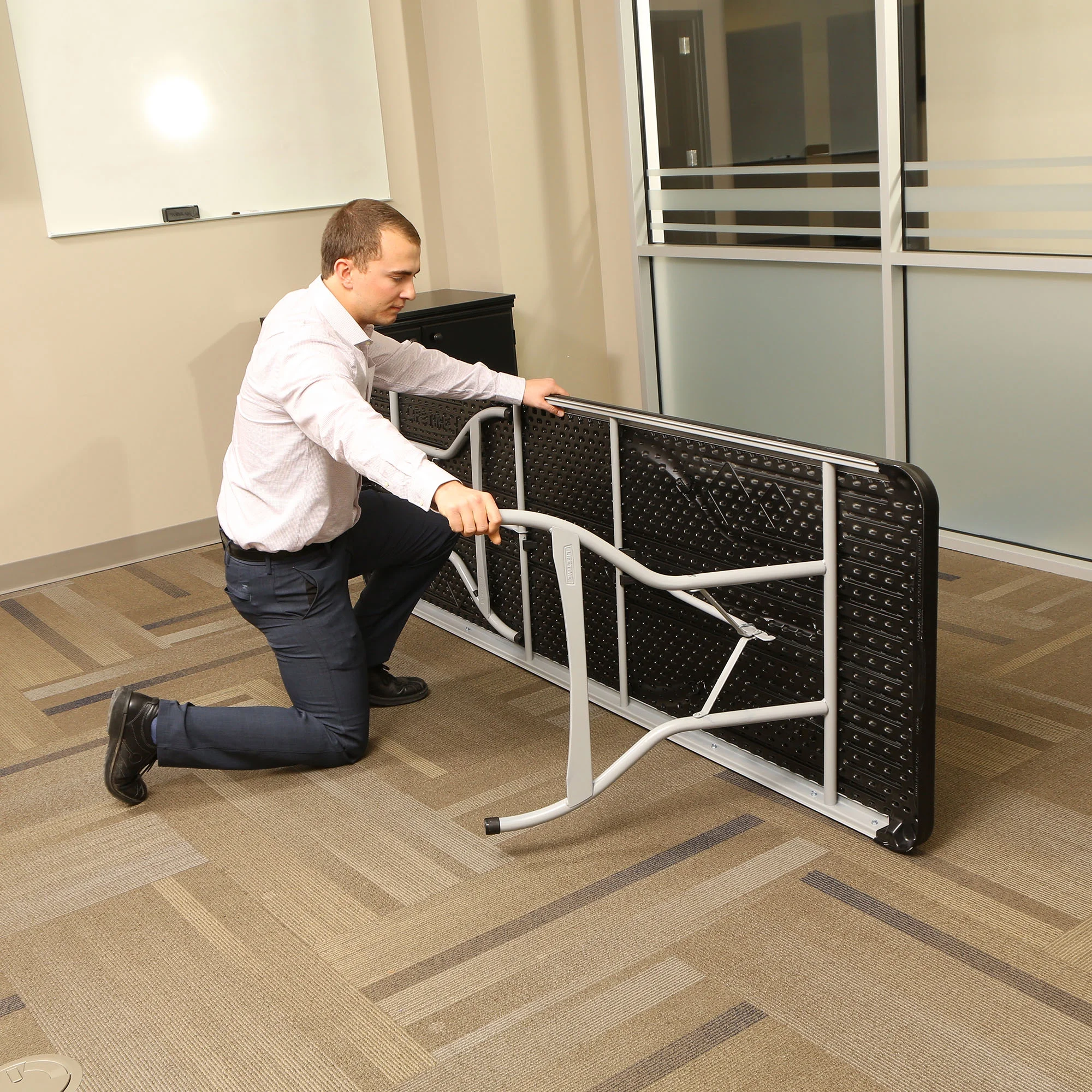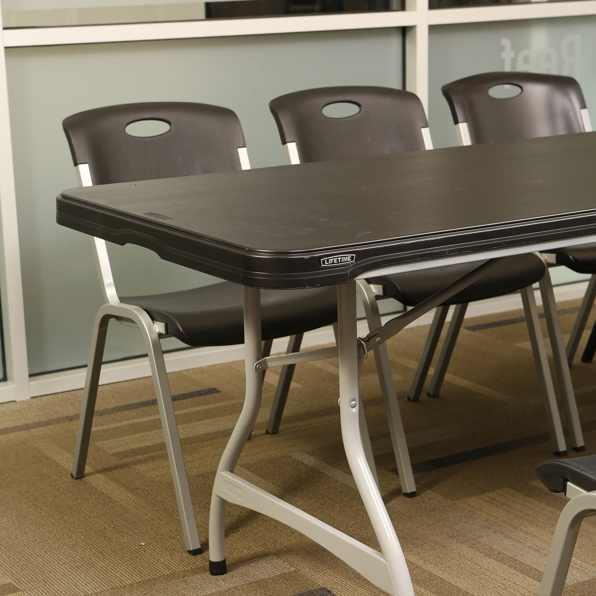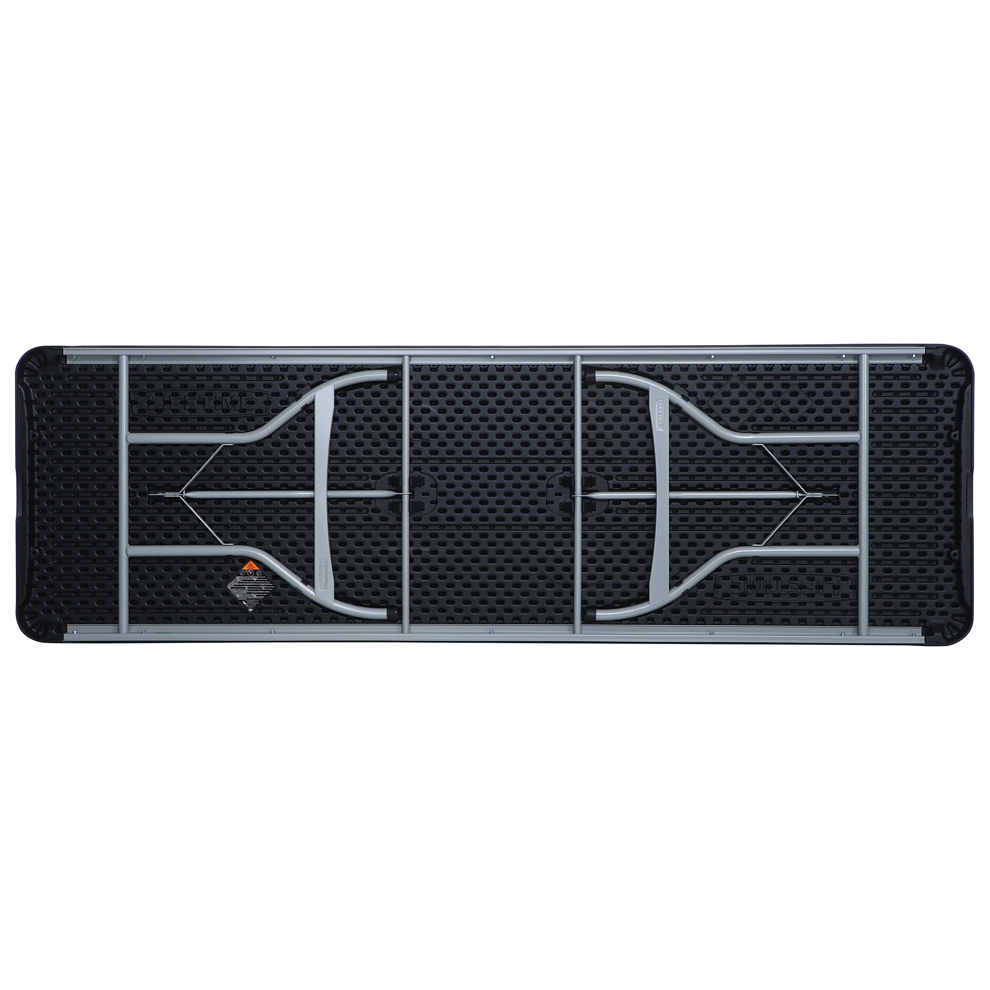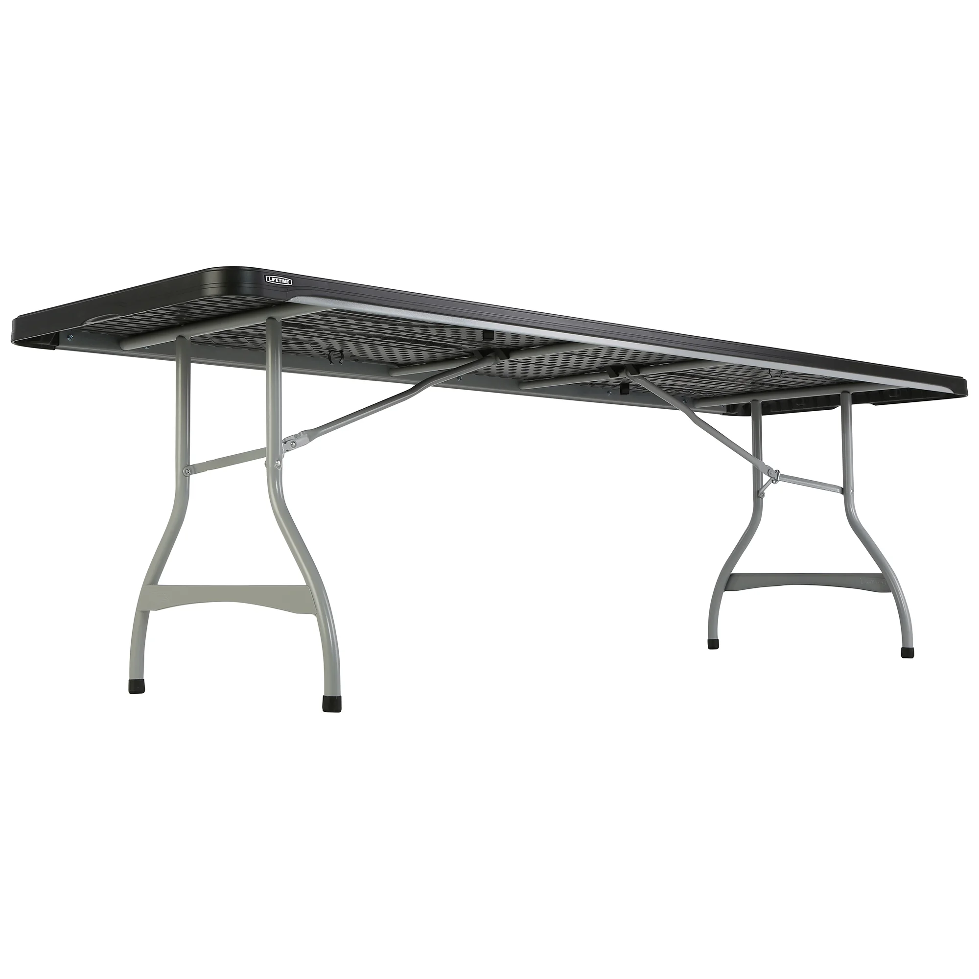 Lifetime 8-Foot Commercial Nesting Folding Table - Features a 96 in. x 30 in. molded tabletop (black) with a round folding frame (silver). This table is made with High Strength Low Alloy (HSLA) Steel, and has a nesting design that allows tables to stack together. 10-year limited warranty.