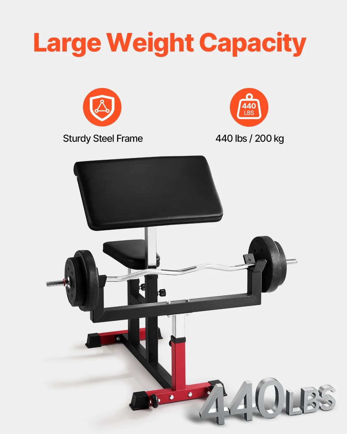 VEVOR Preacher Curl Bench, Strength Training Biceps Machine, Max Load 440 lb Home Gym Equipment, Seated Arm Isolated Barbell Dumbbell Bicep Station, Adjustable Weight Benches for Home Gym