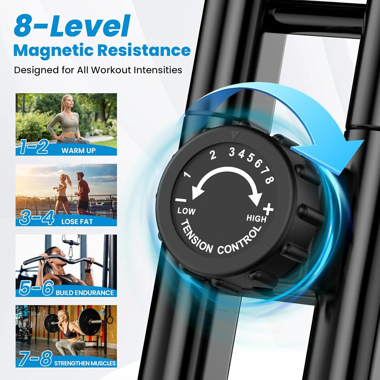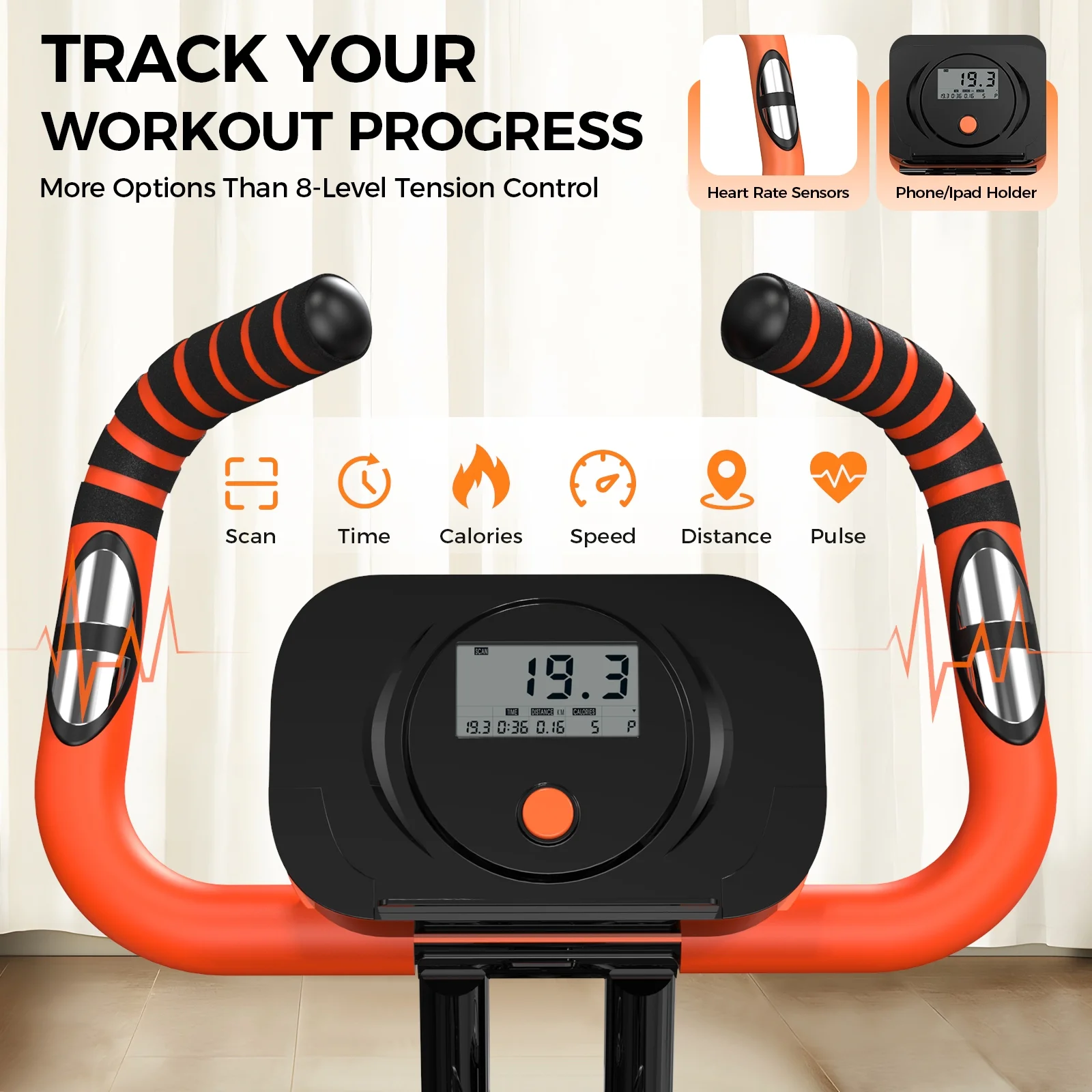- [Whisper-Quiet Riding] Our aluminum flywheel ensures uniform resistance and noise-free pedaling. With 8-level adjustable magnetic resistance, you can ride freely and achieve your fitness goals with our this indoor cycling bike.