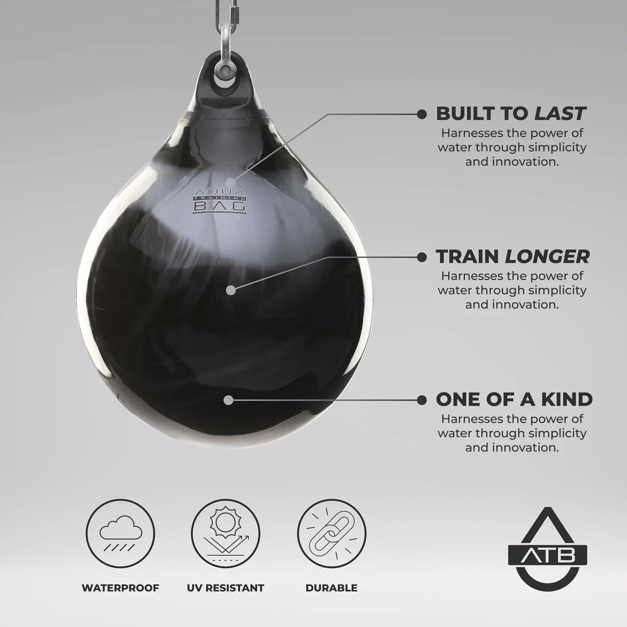 The Aqua Training Bag 21" Aqua Heavy Bag is the largest Aqua Heavy Bag available. The unique teardrop shape allows you to deliver powerful combinations, including deep uppercuts. Your energy is absorbed, giving you the ability to train harder and longer. The commercial-grade vinyl composition will ensure durability and less wear and tear on your knuckles joints. Say goodbye to the underwhelming settling and hard spots you once had to deal with on your traditional heavy bag. This is the heavy bag of the future! Aqua Heavy Bags swing insanely less than a traditional bag, so you don't have to worry about it disrupting your training sessions.