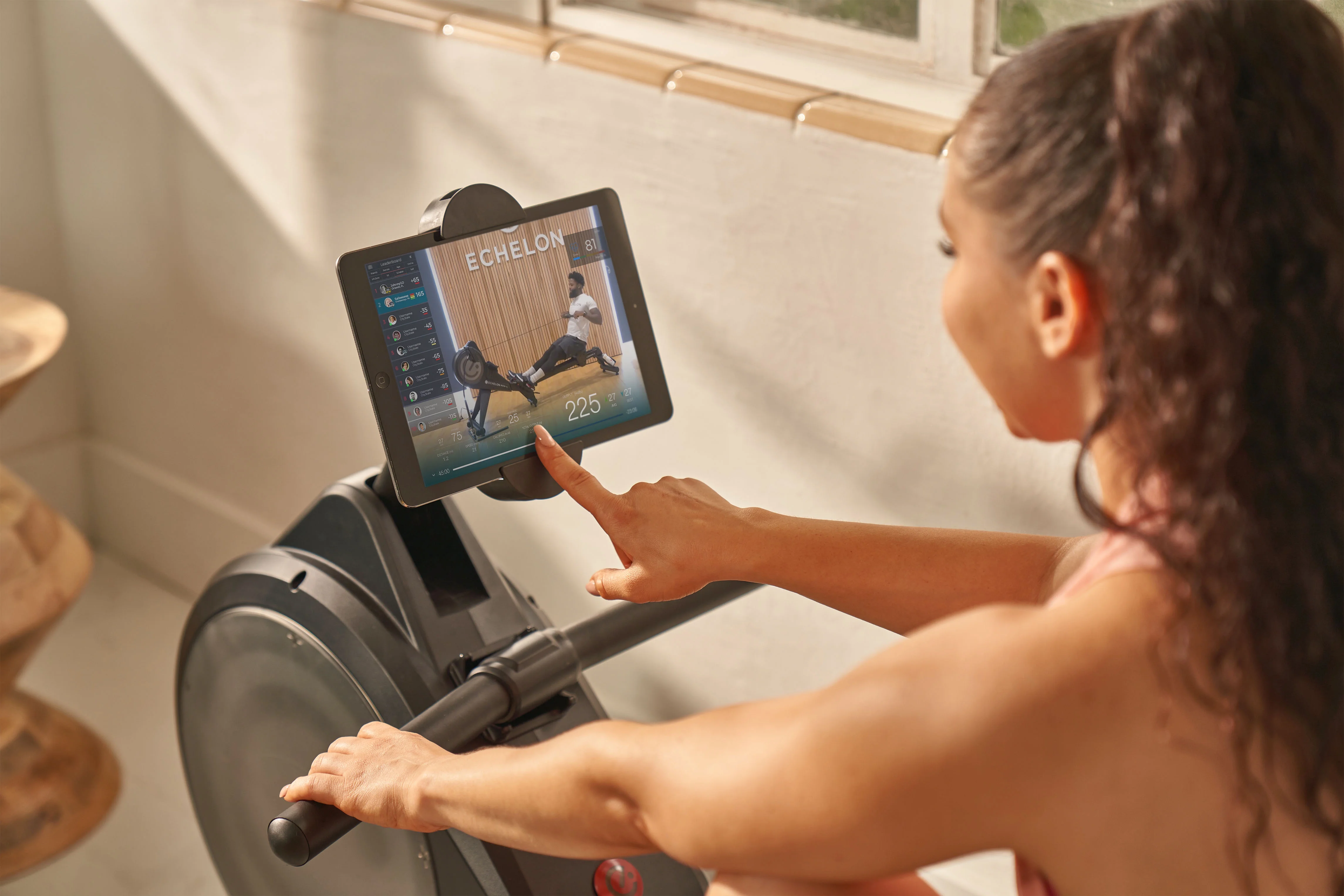 - Built-In Device Holder Secure your smartphone or tablet to the built-in device holder to explore classes, follow along with instructors, and track your progress on the Echelon Leaderboard during every workout.