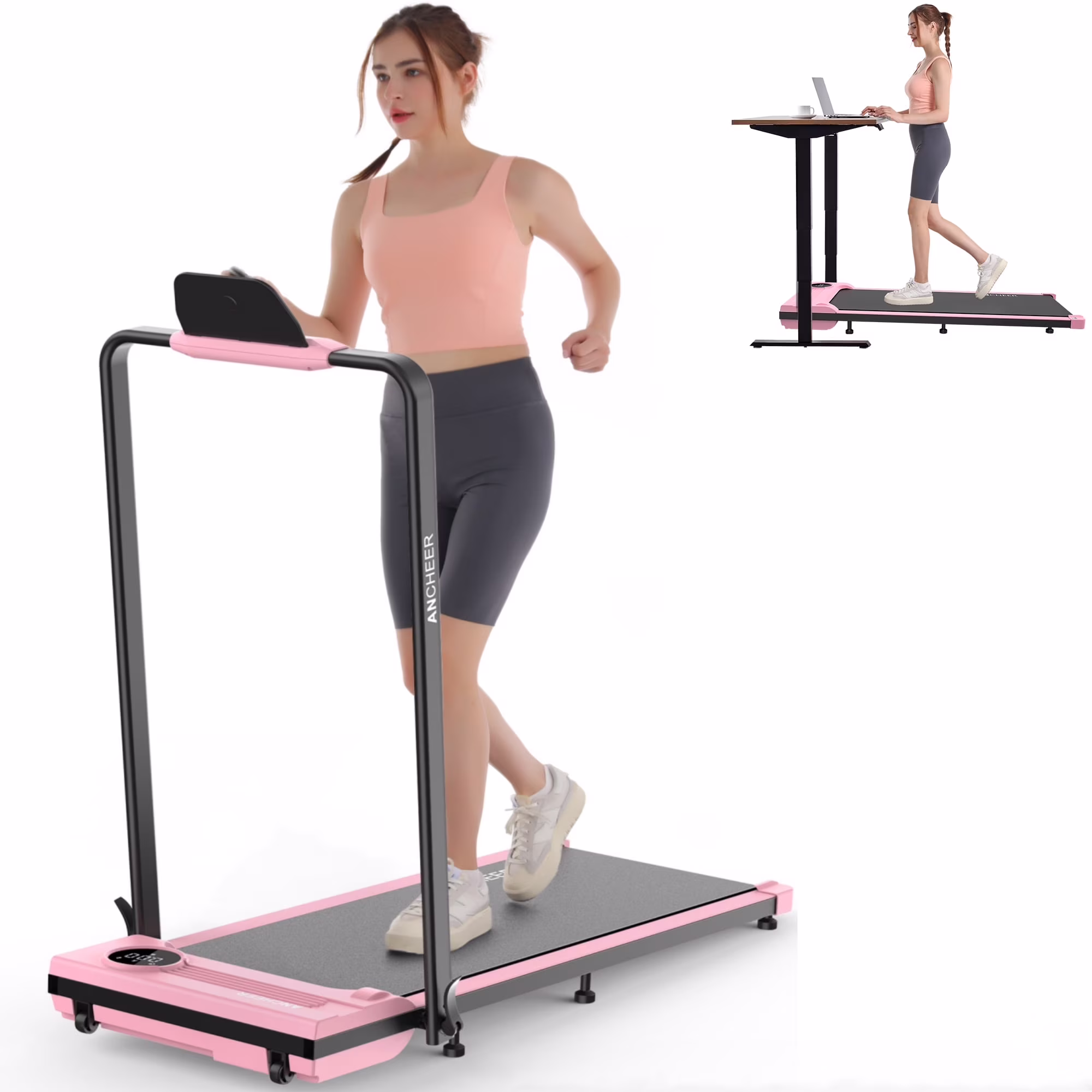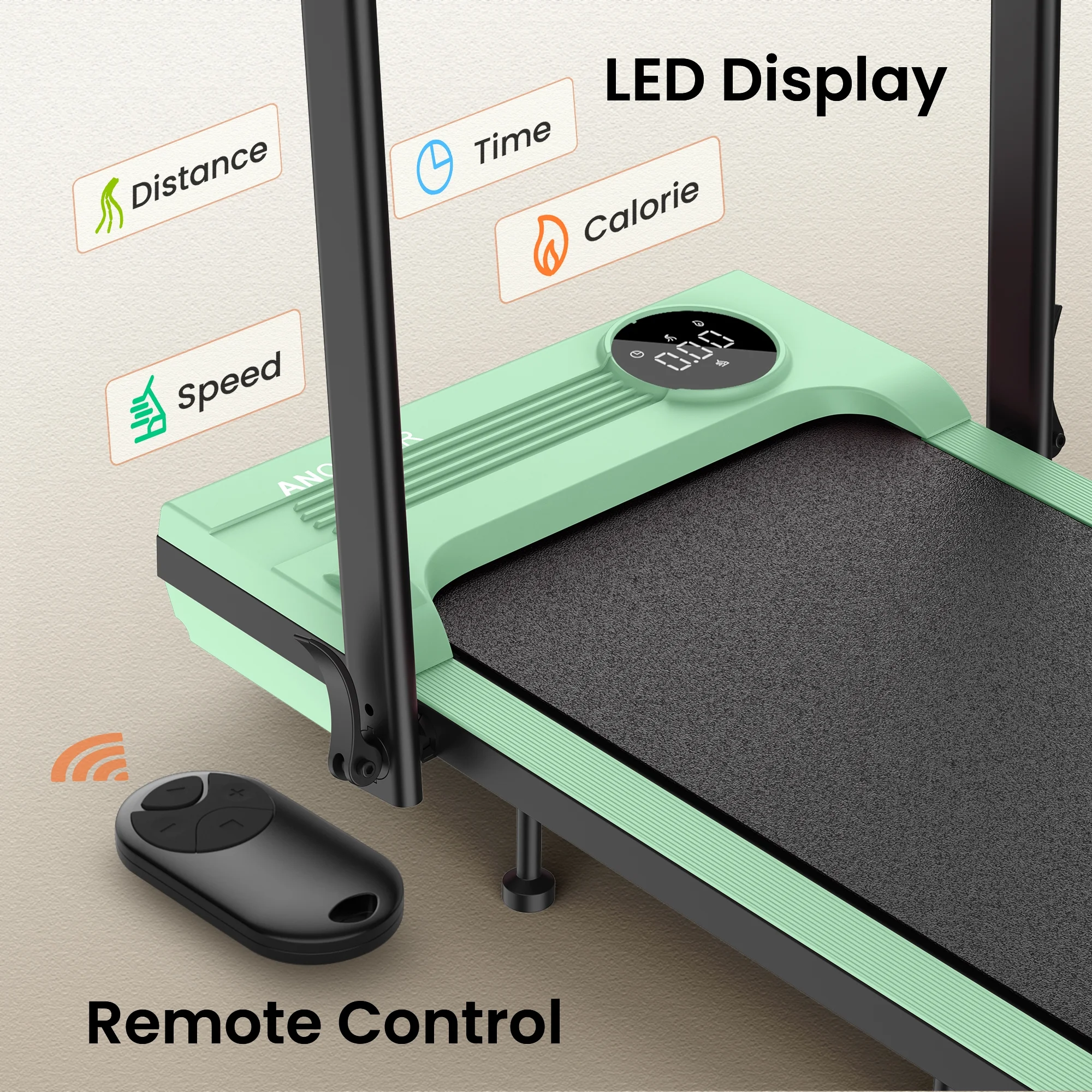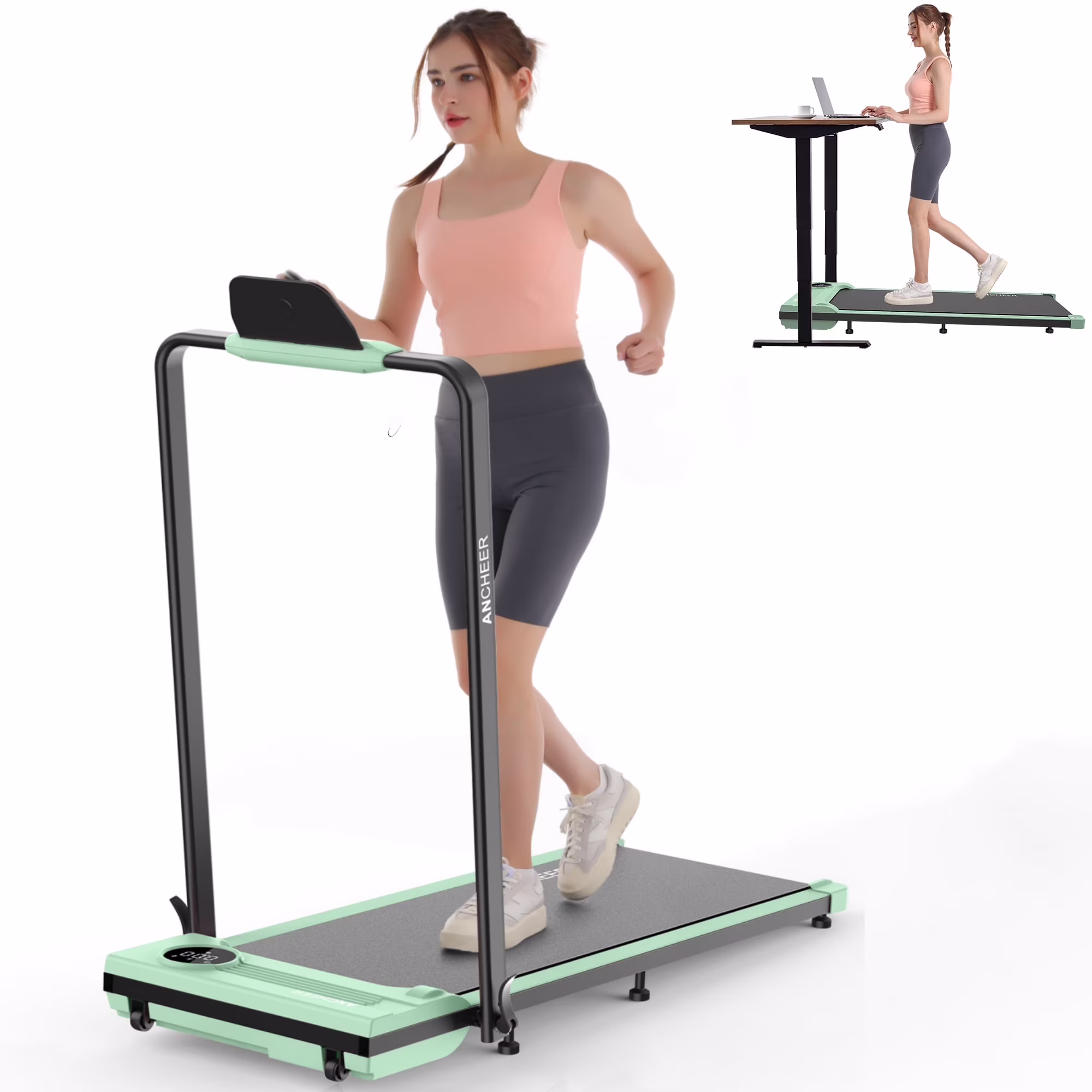 - [Your Ideal Home Treadmill] Compact and foldable,treadmill is ideal for small spaces and convenient storage.Our 2-in-1 treadmill features quick folding with 2 wheels for easy mobility. The foldable handrails save space