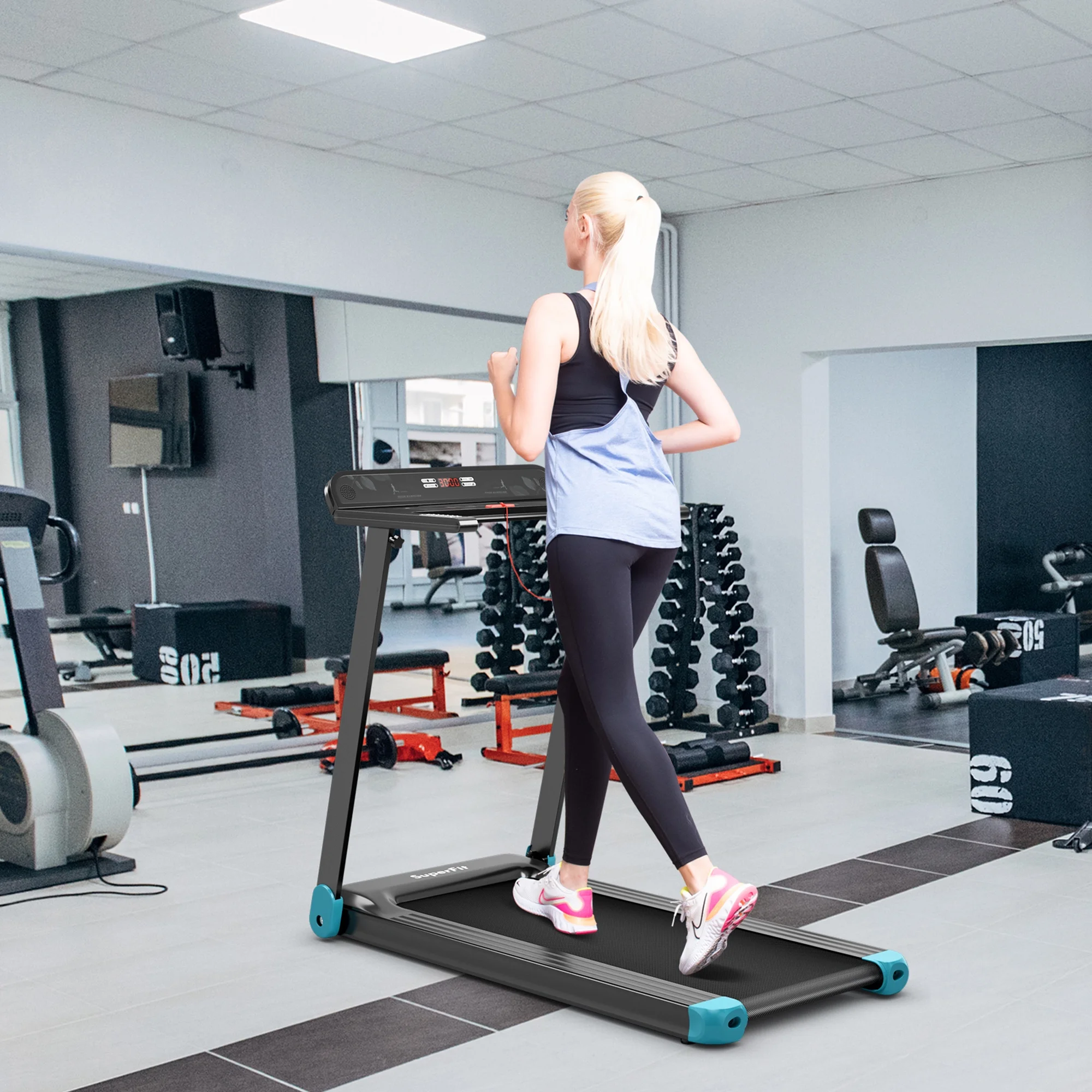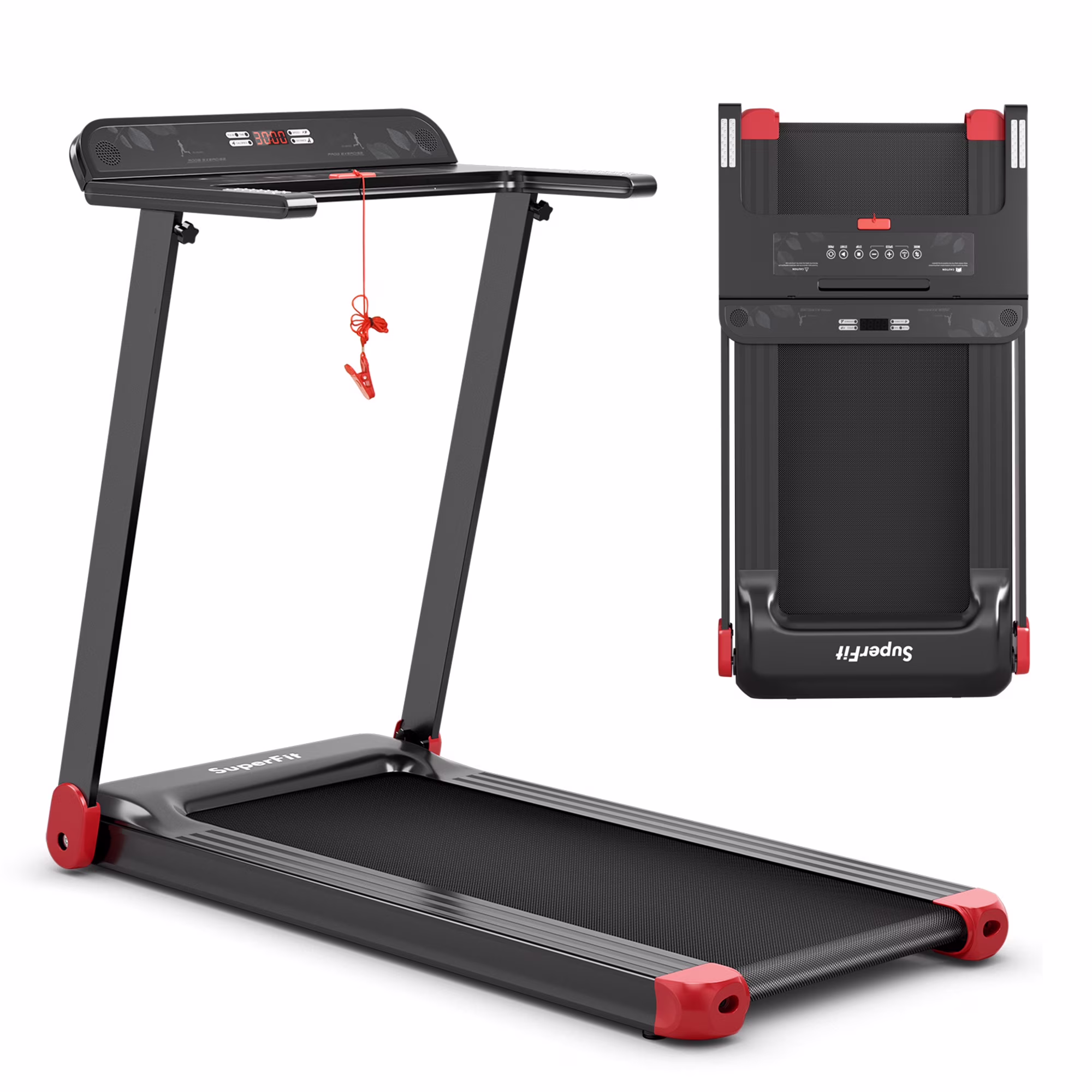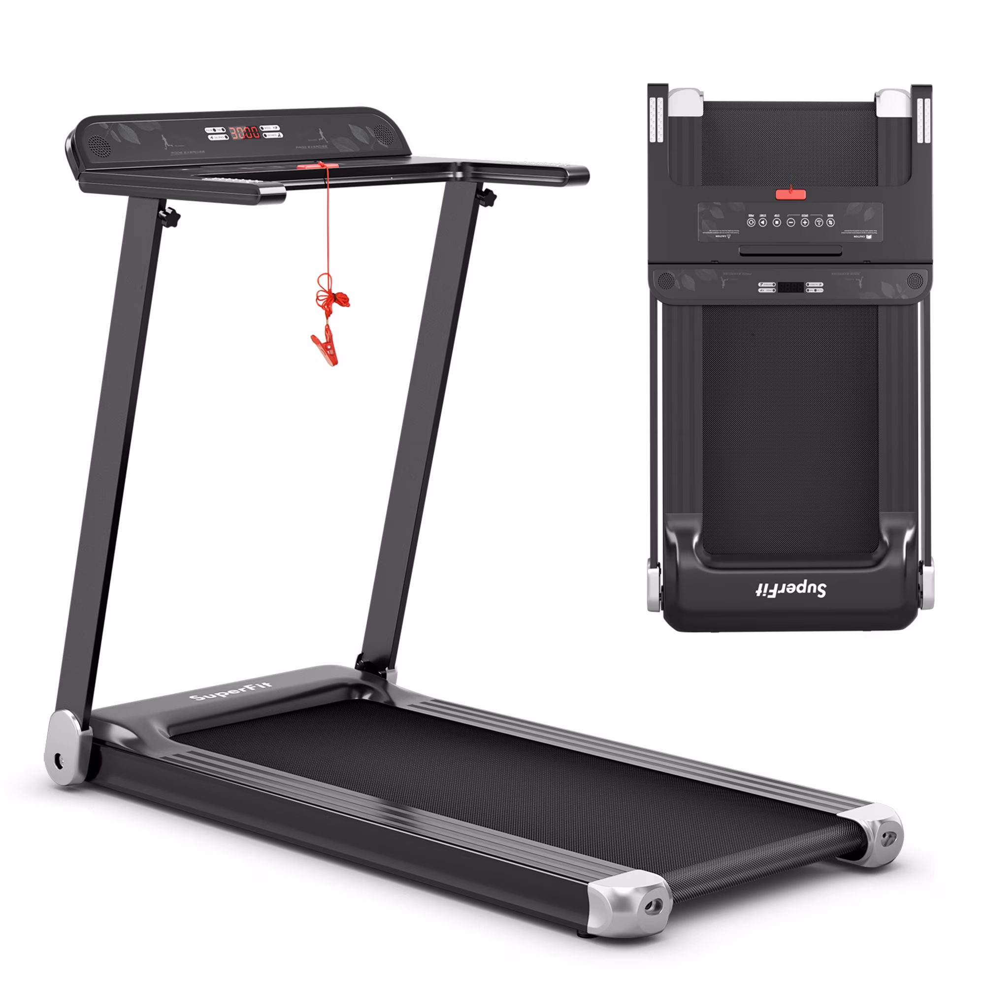 - Perfect for Small Space: This compact treadmill with 2 built-in wheels is foldable and portable for convenient movement and storage. Therefore, you can store it under the bed/sofa or against the wall for space-saving.