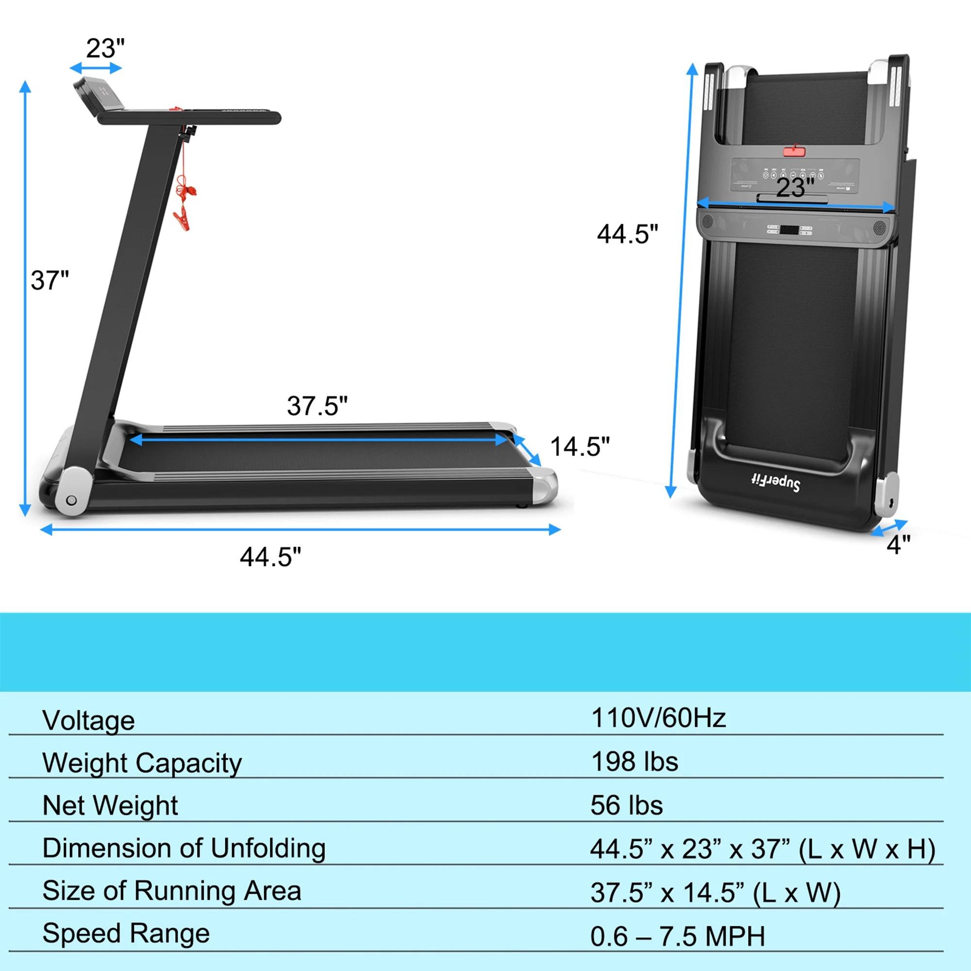 - Adjustable speed from 0.6 to 7.5 MPH for different exercise needs