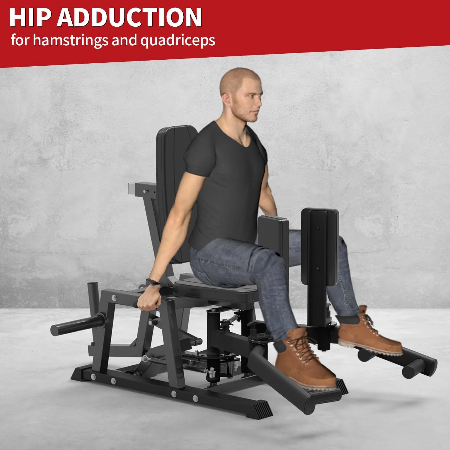 - --COMPREHENSIVE MUSCLE BUILDING: This hip abduction machine focuses on strengthening hip abductor and adductor muscles. With the gear system's different angle settings, you can specifically target muscles such as the gluteus minimus, gluteus medius, tensor fasciae latae, and tractus iliotibialis. Equipped with a weight loading bar and two weight storage bars, it is compatible with all 2-inch Olympic weight plates.