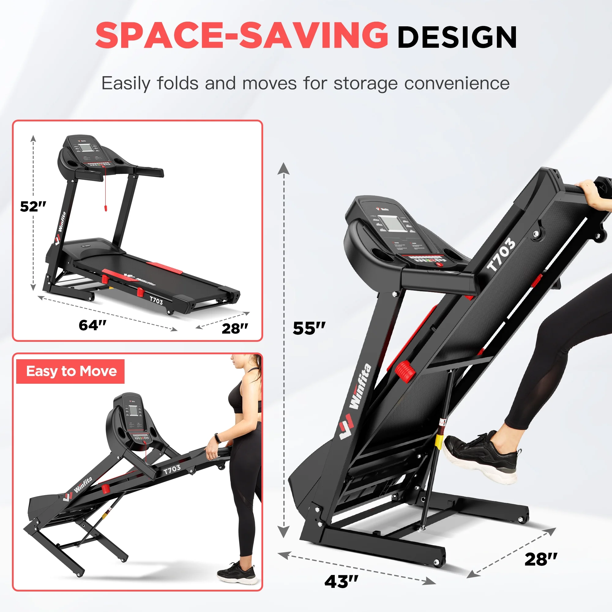 Winfita 4.0HP Foldable Treadmill with 15-Level Auto Incline - 300 LB Capacity | Portable Electric Treadmill for Home Use