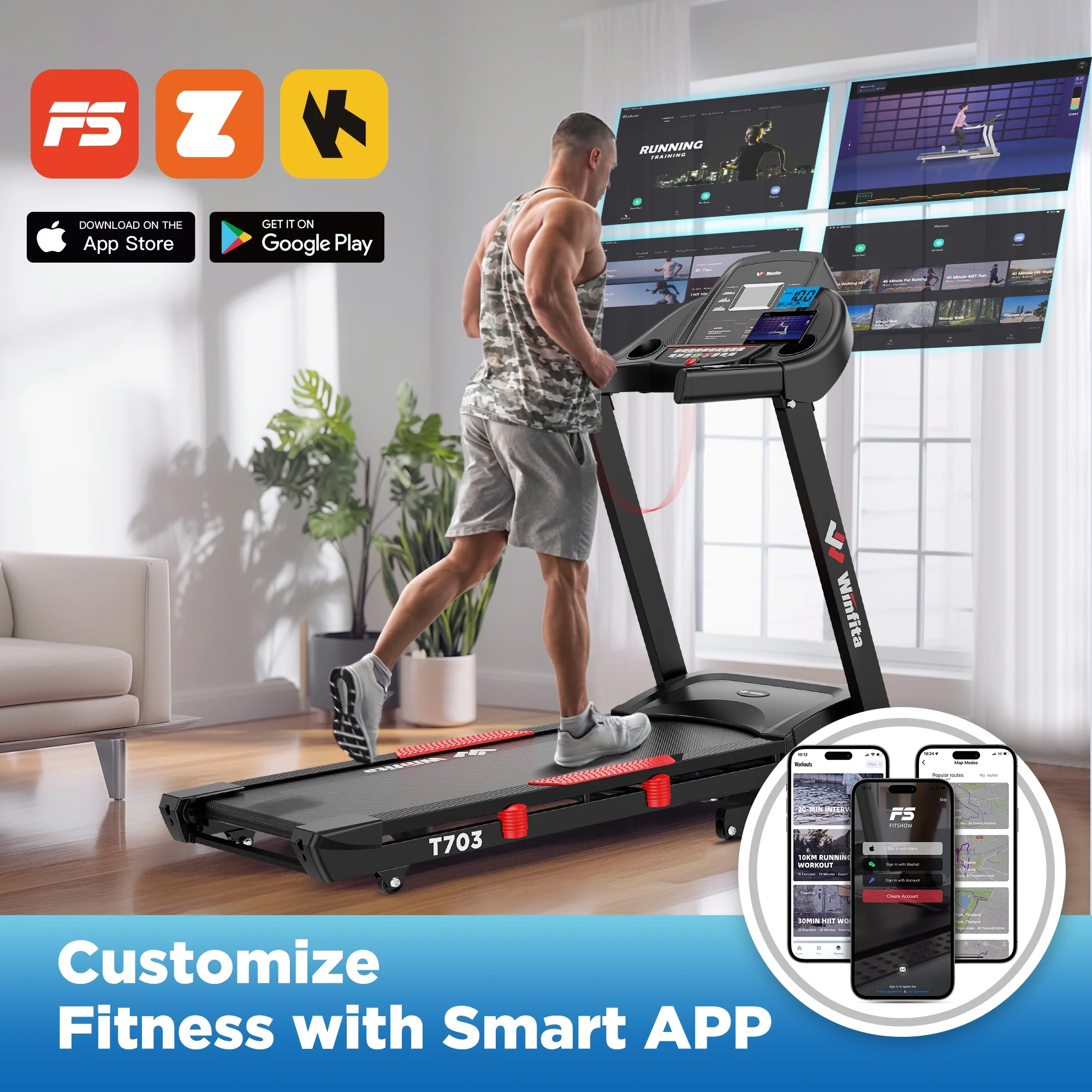 - 4HP APP control treadmill & 64 running programs
