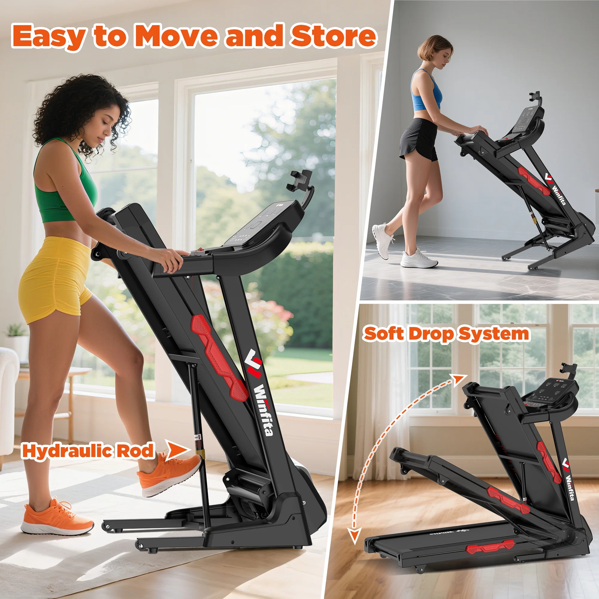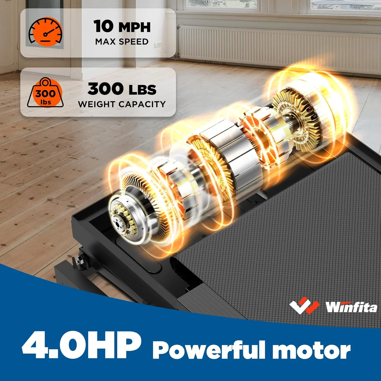 The Winfita Foldable Electric Treadmill stands out with one of the best treadmill speaker systems on the market, a real induction motor for quieter and longer-lasting performance, and true 10 MPH super-fast speed for serious runners. Designed for performance, comfort, and durability, it supports up to 300 lbs and features 15-level auto incline, making it ideal for walking, jogging, or running at home. Perfect for those seeking a foldable treadmill, compact treadmill, or advanced treadmill for home use.